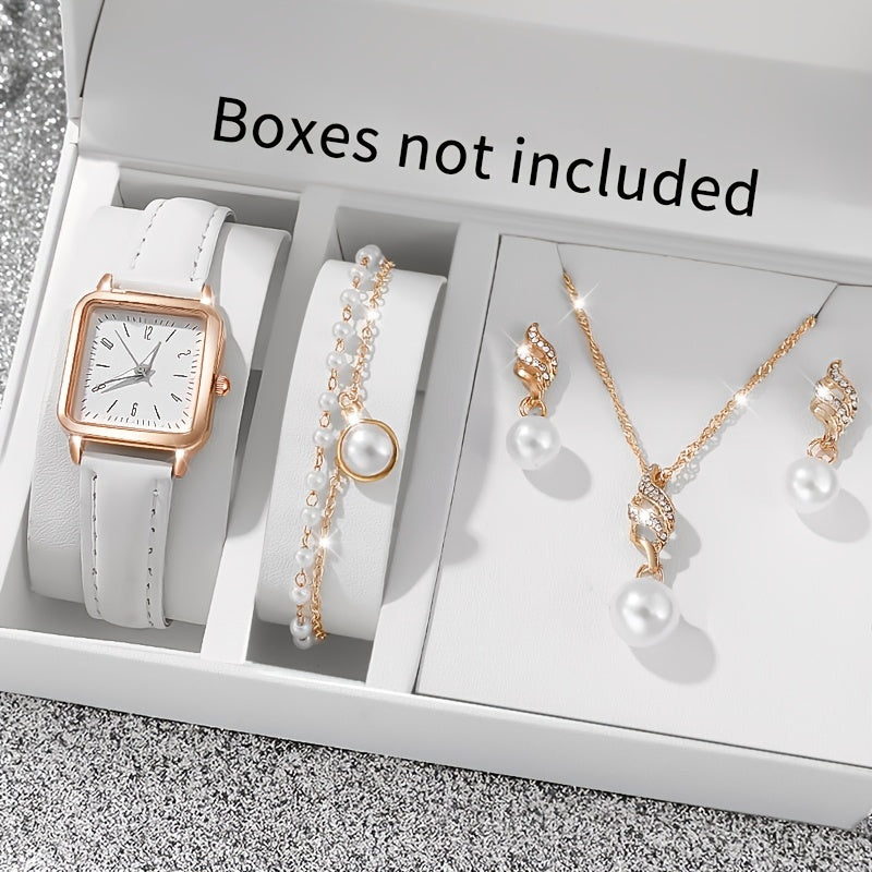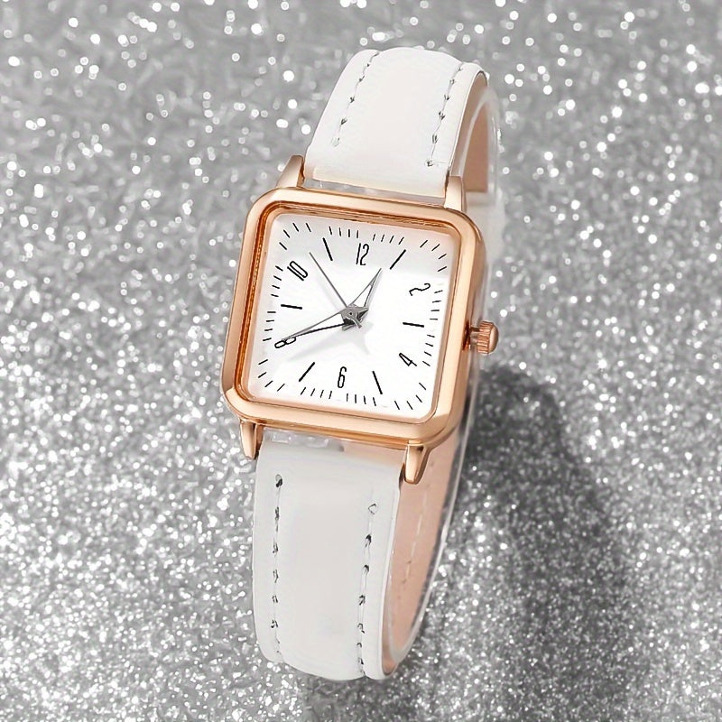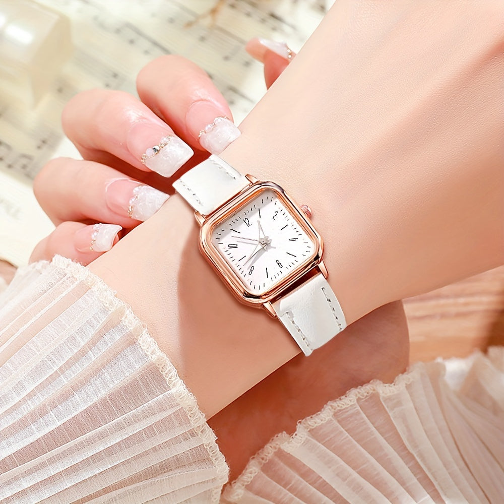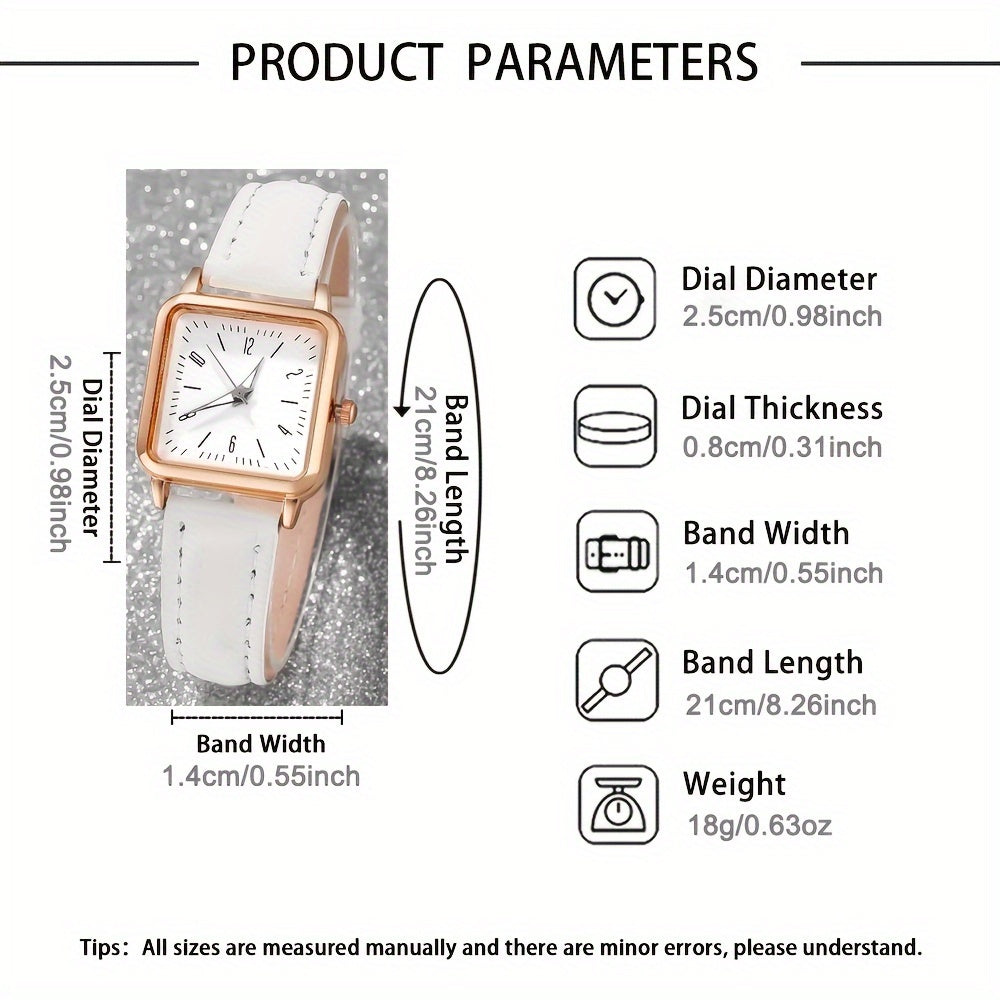5 ta ayollar uchun kvadrat kvarts soatlari to'plami, sun'iy charm bilan ta'minlangan va elektron mexanizm bilan