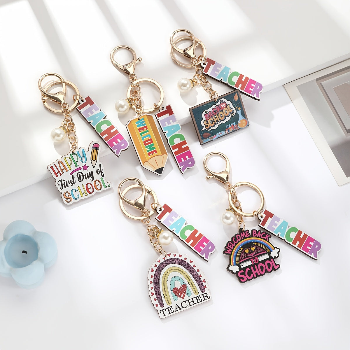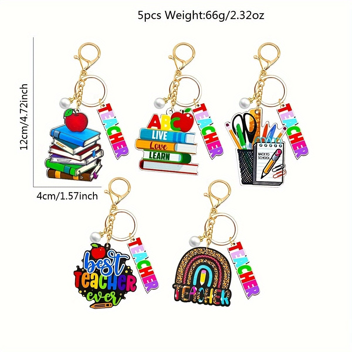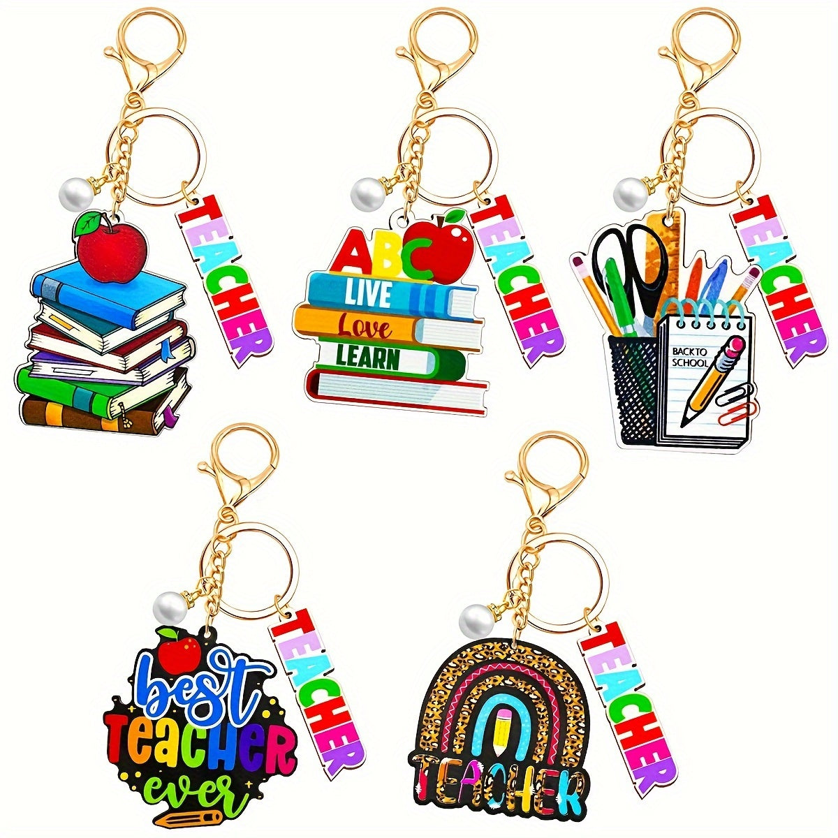 5 ta O'qituvchi Qadriga Yetishish Kalit Zanjirlari, Multfilm Mavzusidagi Qotishma va Yog'och Dizaynlar, Tasmalar bilan, Dumaloq Shaklda, Qisqichli Qopqoq, Uyga Qaytish Festivalini Bezaklash uchun Mukammal, Erkaklar va Ayollar Uchun Ideal