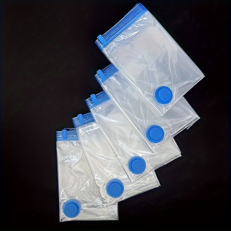 5 ta shaffof vakuum saqlash sumkasi, kiyimlar va yostiq uchun ko‘k zip bilan