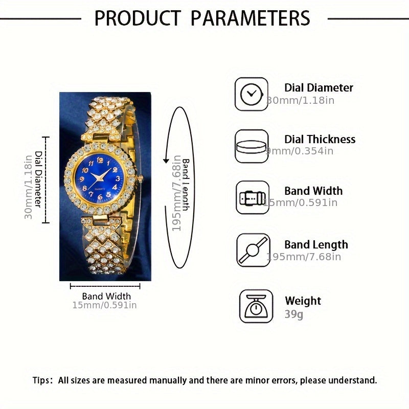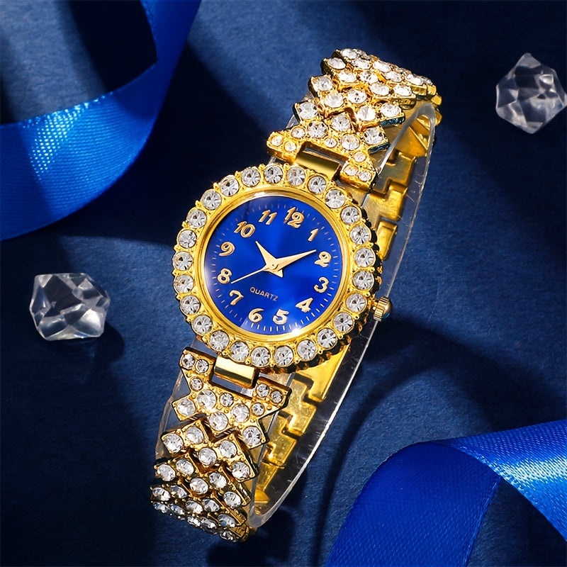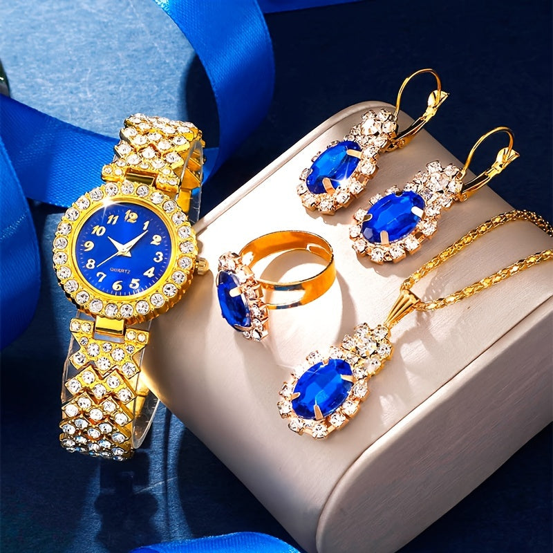 5 ta ayollar uchun rhinestone kvarts soatlari va mos keladigan zargarlik buyumlari sovgʻa to'plami