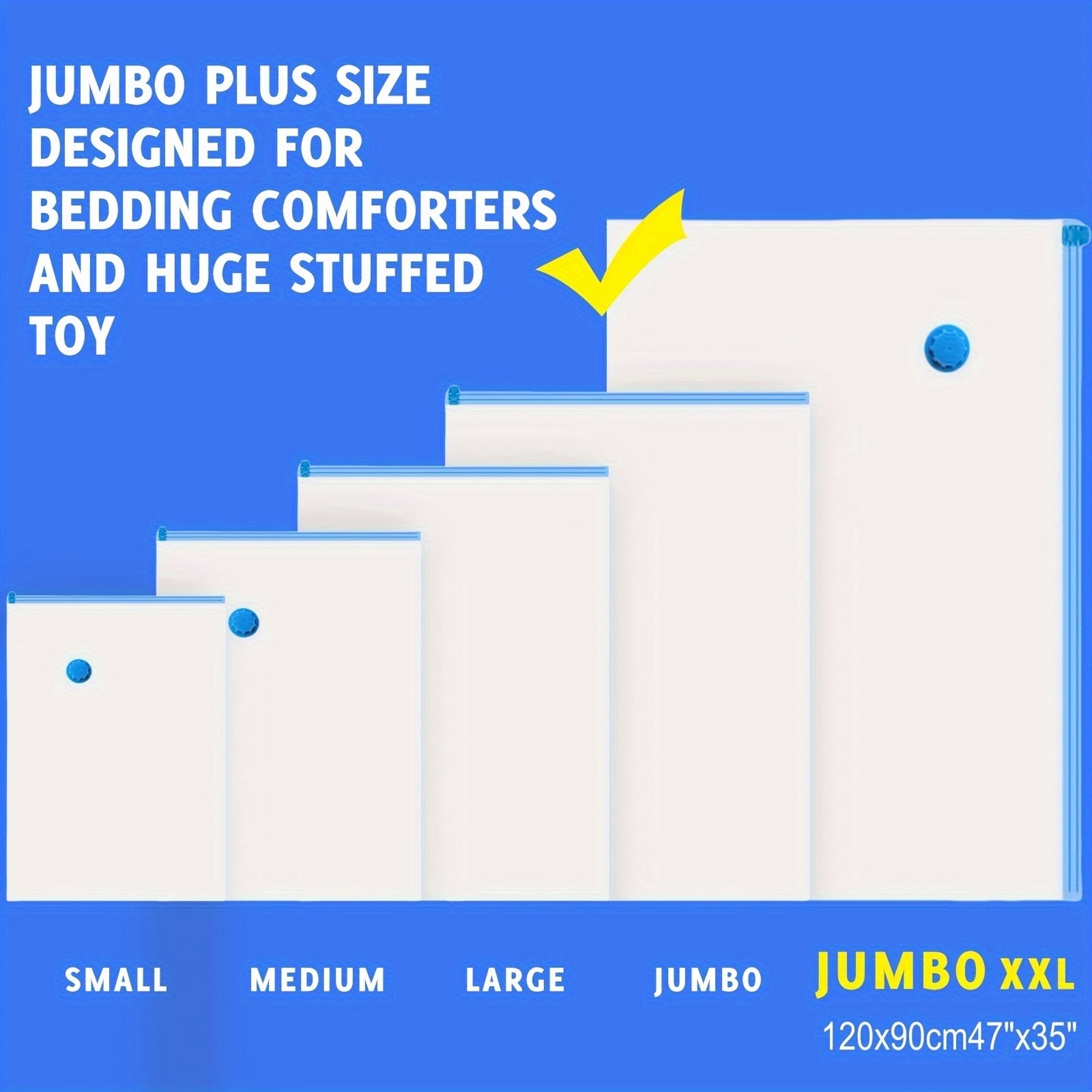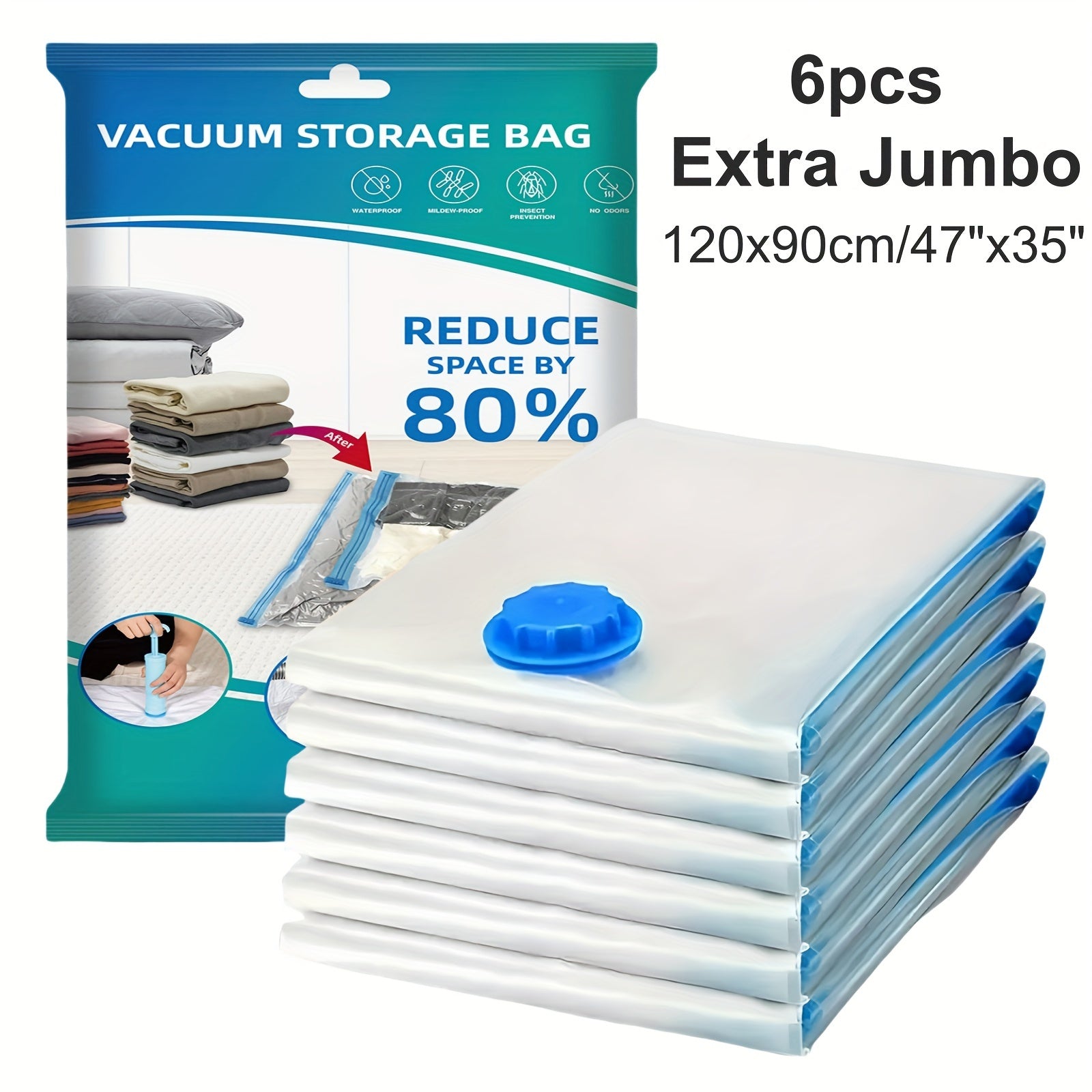6 ta qo'shimcha katta XXL vakuum saqlash sumkalari to'plami, o'lchamlari 119.38 sm x 88.9 sm - ko'rpa-to'shaklar, yostiqlar, qoplamalar va katta o'yinchoqlar uchun joyni tejang, zip yopilishi, nasos kiritilmagan, joyni tejovchi yechim