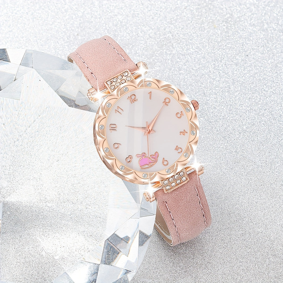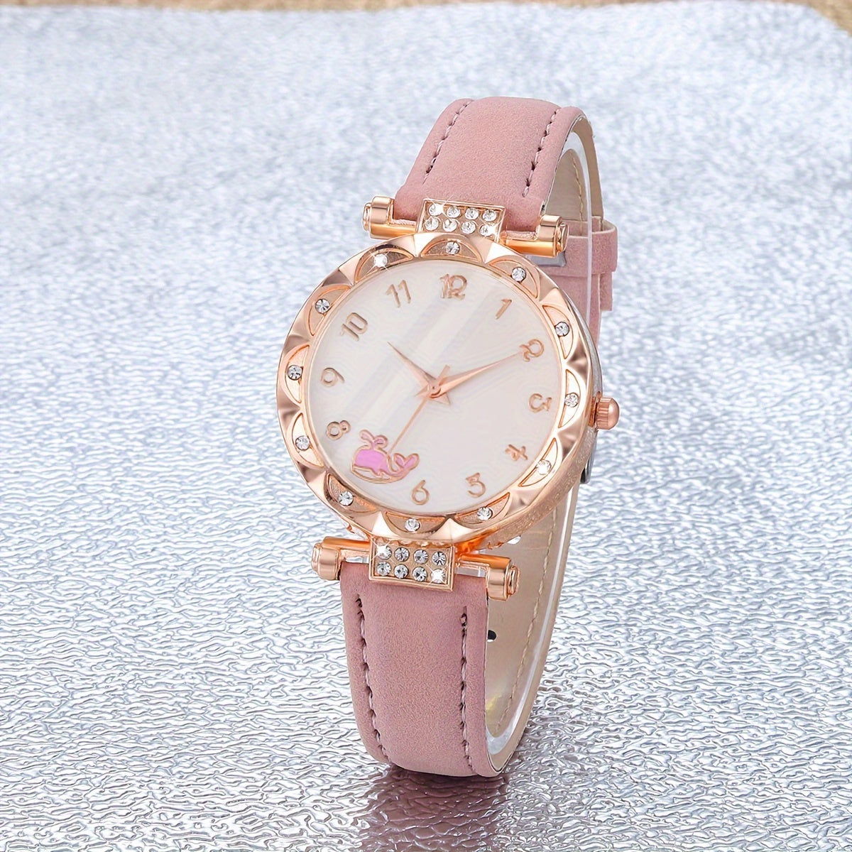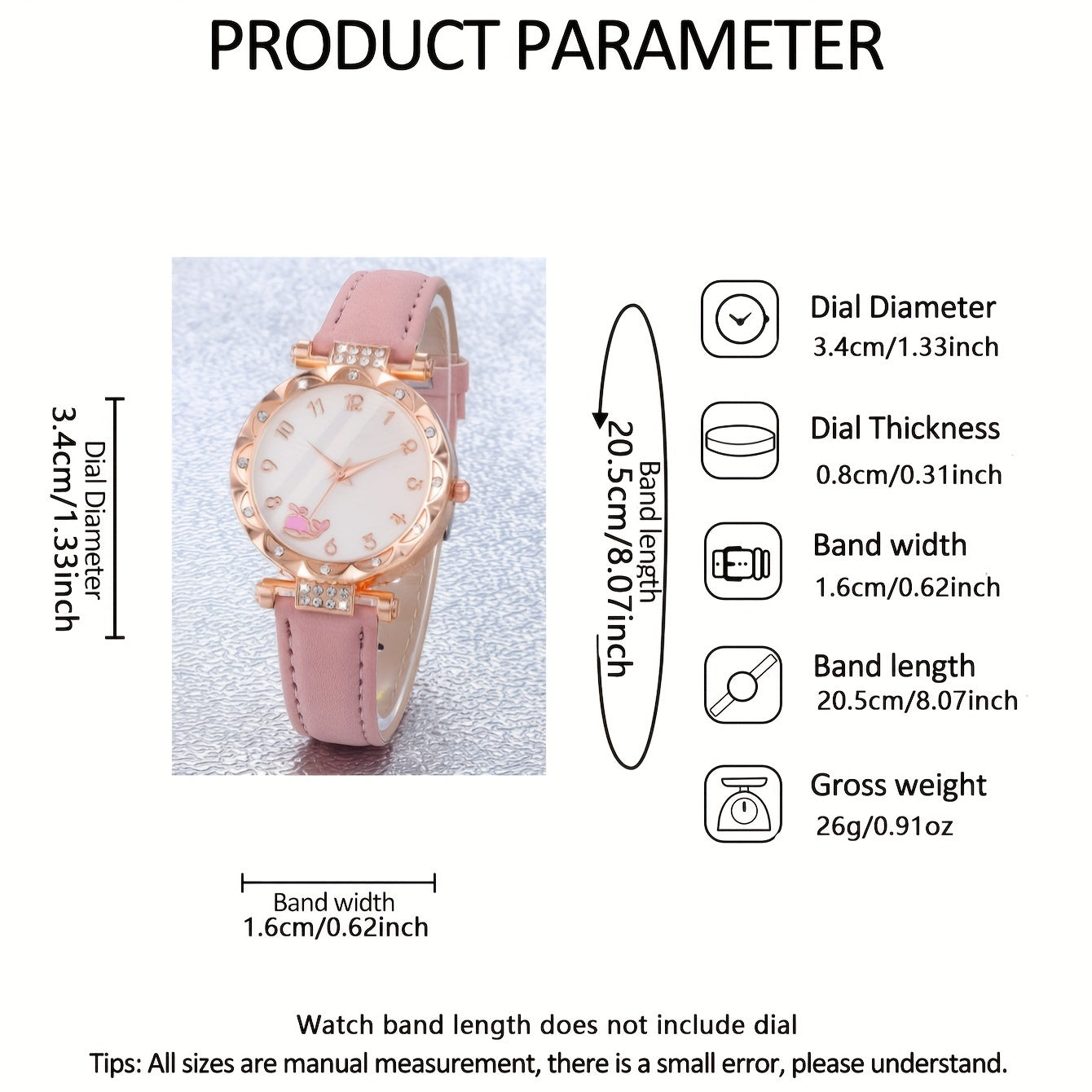 6 ta ayollar moda soatlari va zargarlik buyumlari to'plami, pushti faux charm, rhinestone aksessuarlar