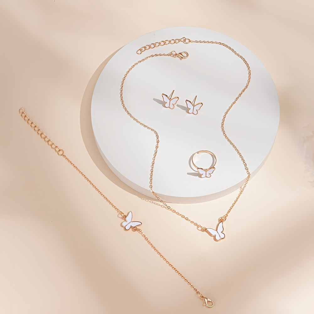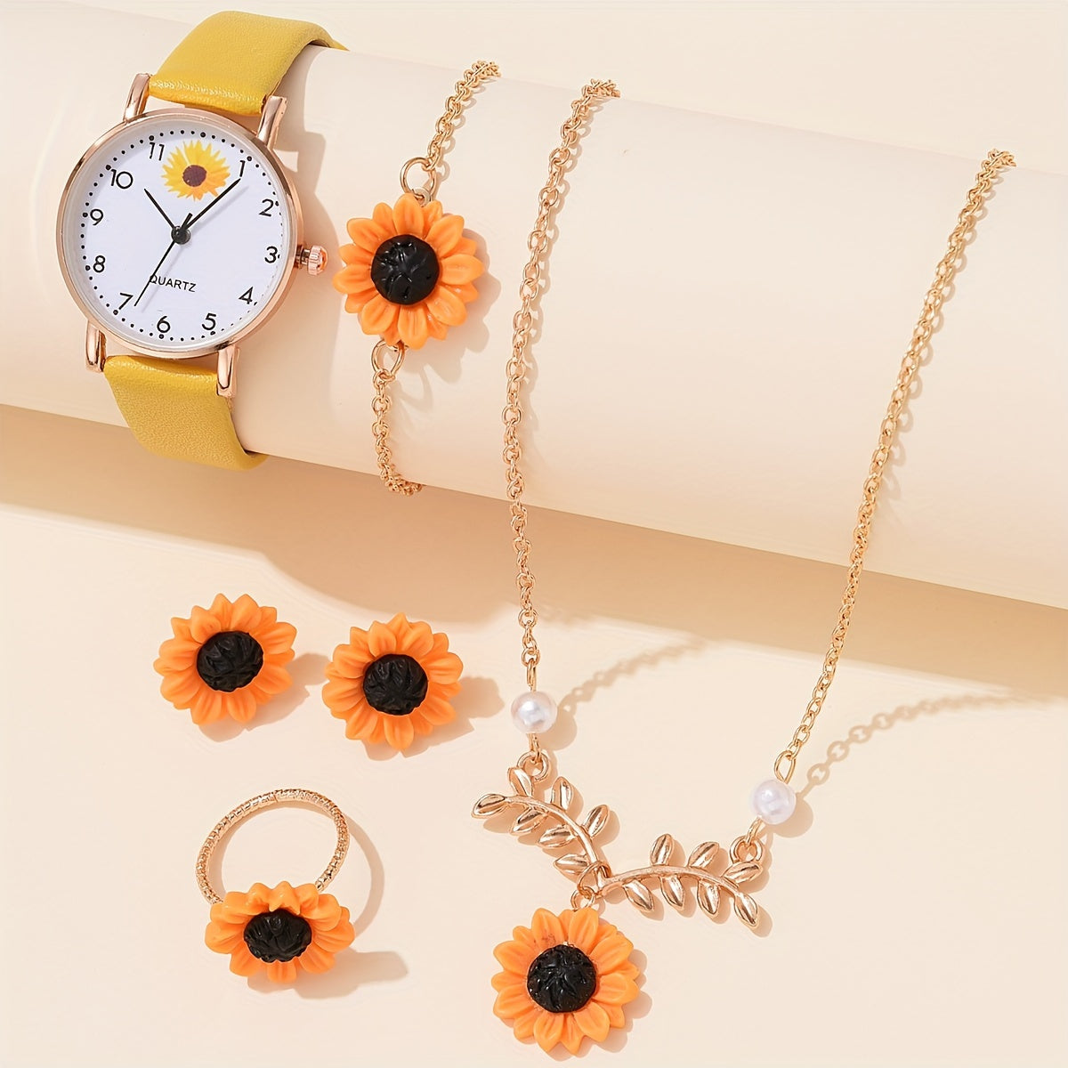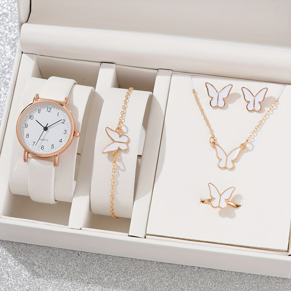 6 ta ayollar uchun kundalik quarts soatlari to'plami, charm taqinchalar va kapalakli zargarlik buyumlari bilan