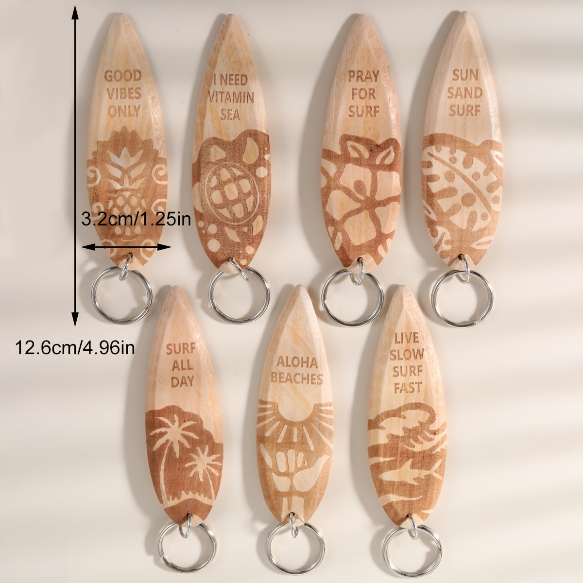 7 ta yog'och kalit zanjirlar to'plami, serf taxtasi shaklida, plyaj partiyalari uchun yoki sumkalar yoki ruksaklar uchun qiziqarli sovg'a sifatida mukammal. Har qanday kalit zanjiri to'plamiga ajoyib qo'shimcha bo'ladigan mini serf taxtasi pandantlari.