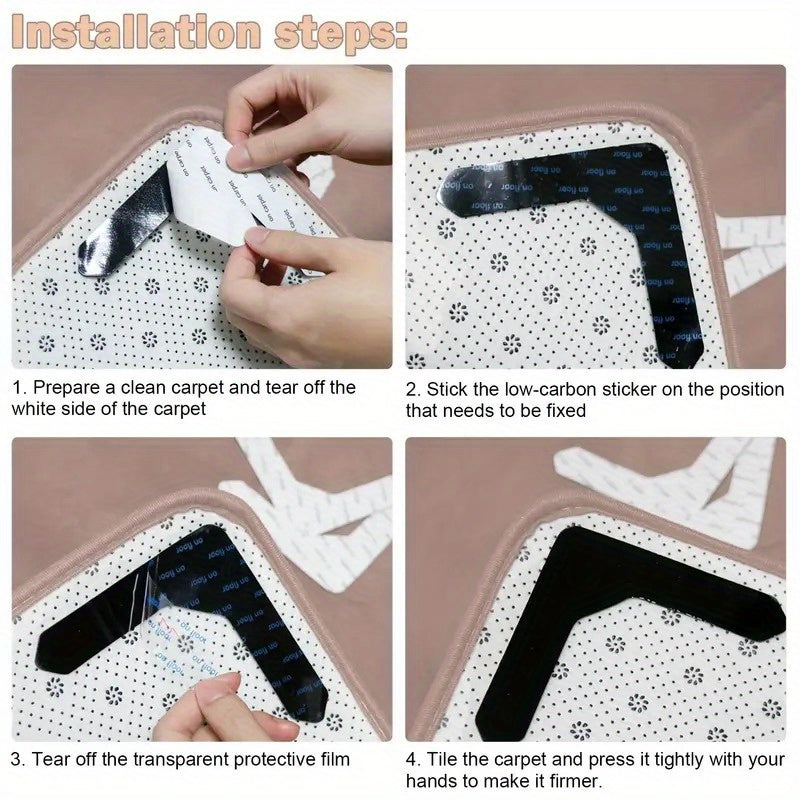 8 ta yuqori sifatli sirpanmaydigan gilam yopishtiruvchi - yashash xonasi, ovqat xonasi va hammomdagi gilamlar uchun sirpanish, burilish va harakatlanishni oldini oladi - qora, tozalash oson va qayta ishlatiladigan