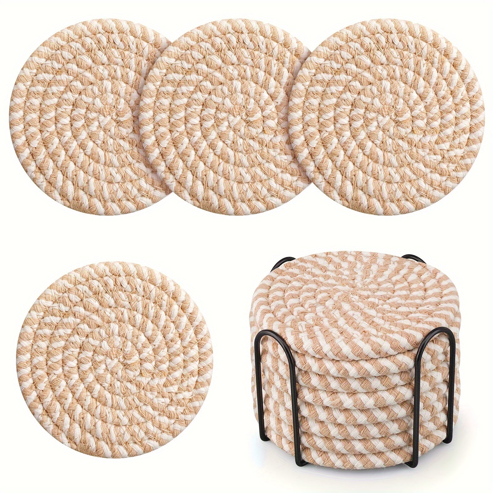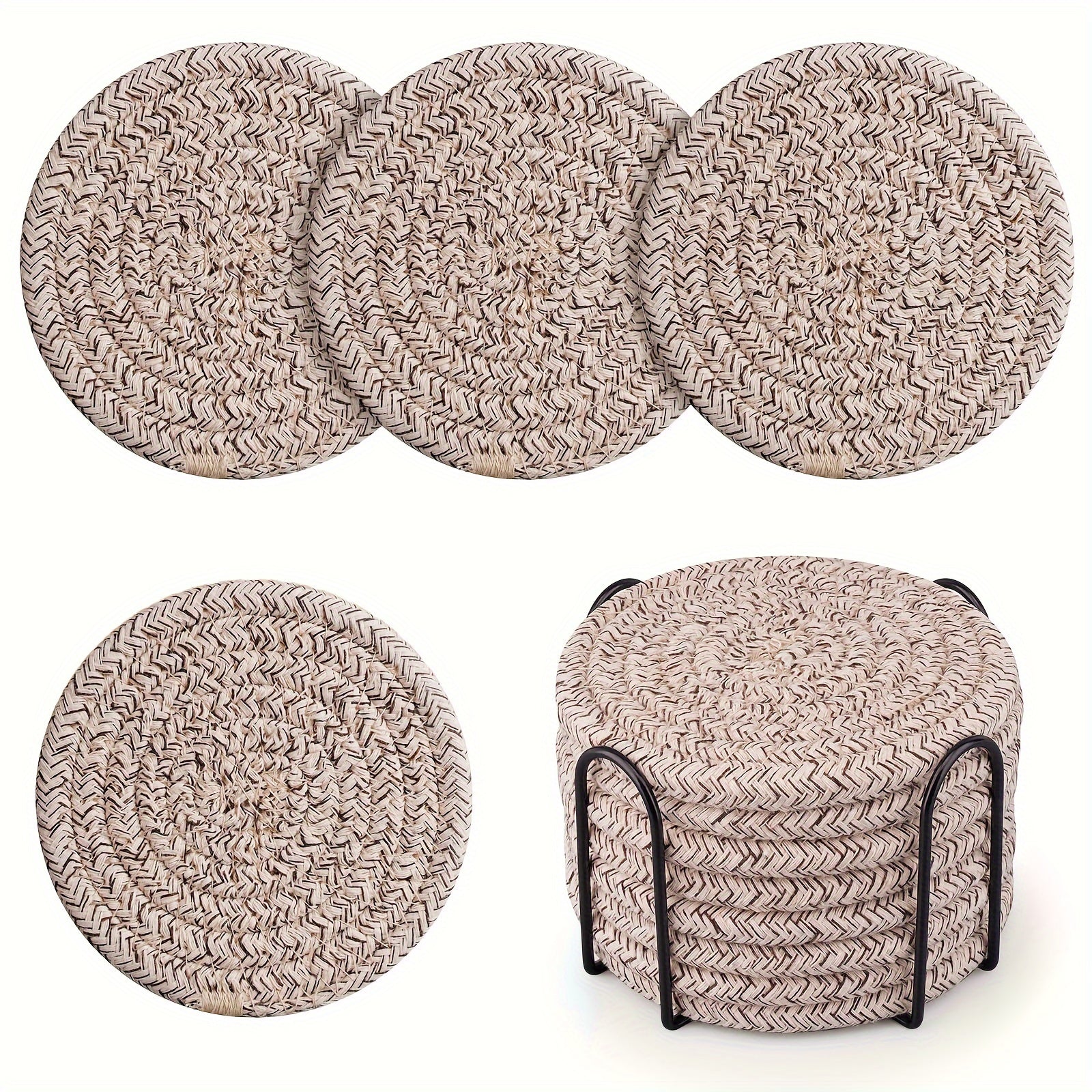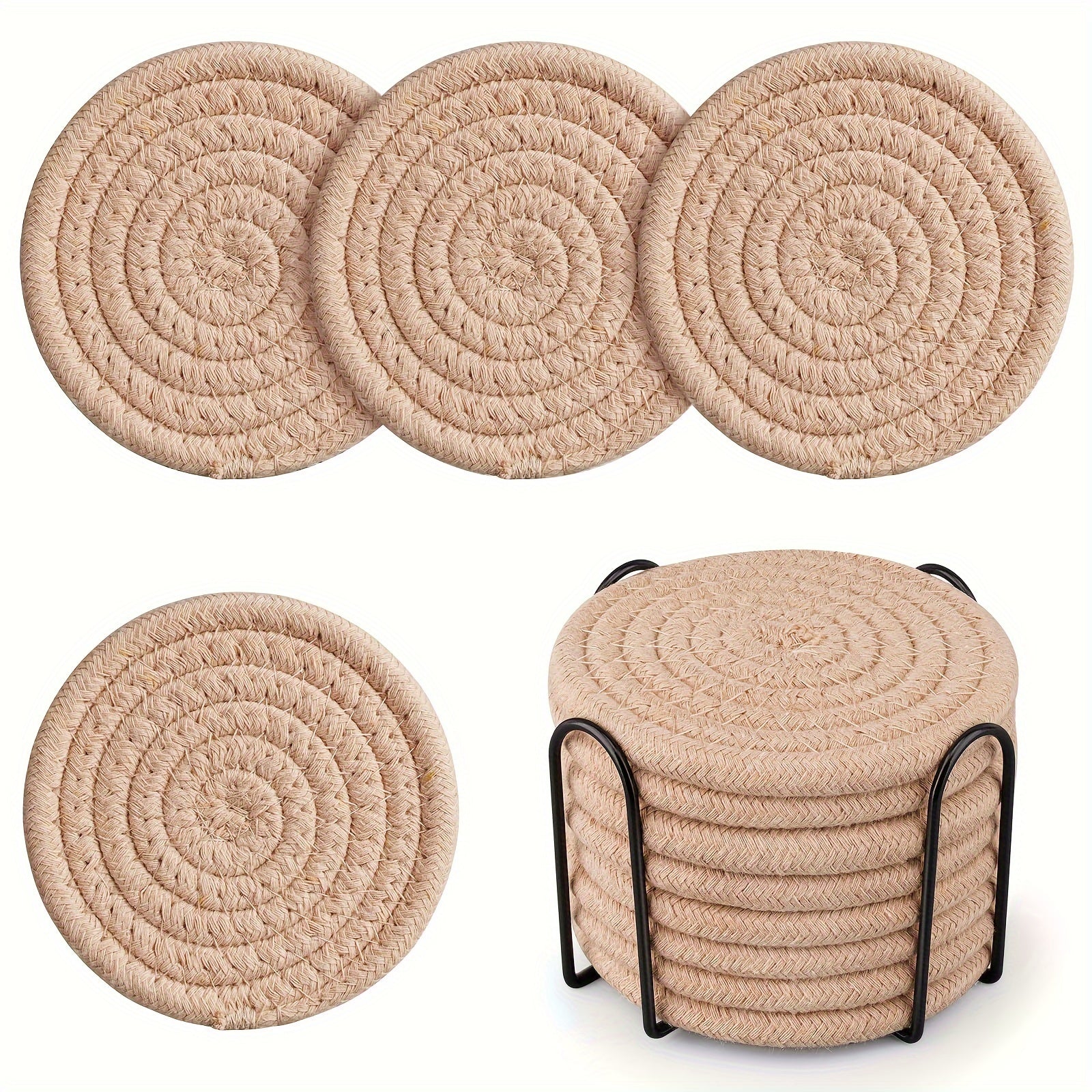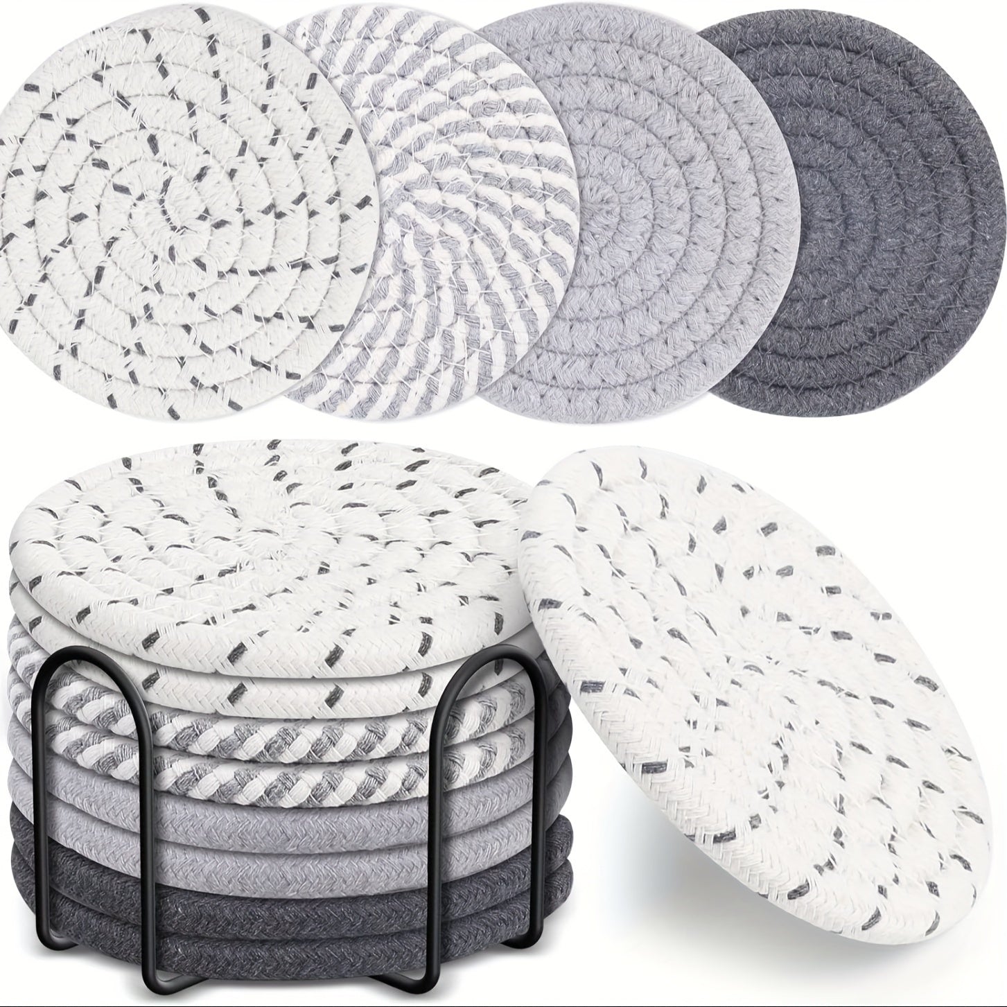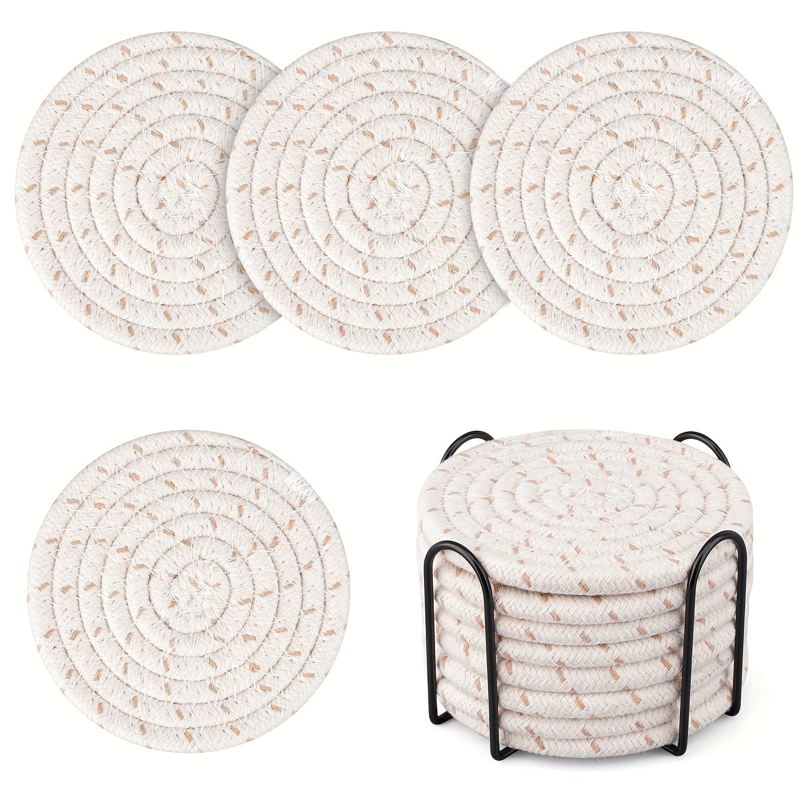 8 ta dumaloq paxta to'qilgan ichimlik ko'zqichlari to'plami, ushlagichi bilan, namni o'zlashtiradi va ovqatlanish stollarini himoya qilish va uy dekoriga qo'shish uchun ideal. Ajoyib uyga ko'chish sovg'asi.