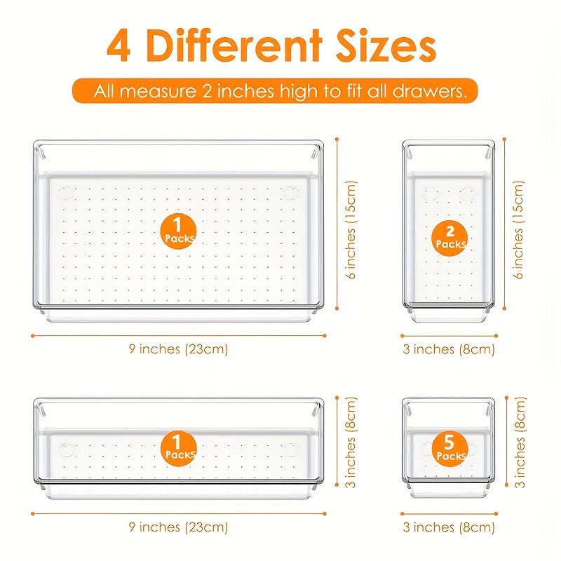 Vannaxonalar, oshxona, makiyaj va ofis saqlash uchun 9 ta shaffof plastmassa shkaf tashkilotchilarining to'plami