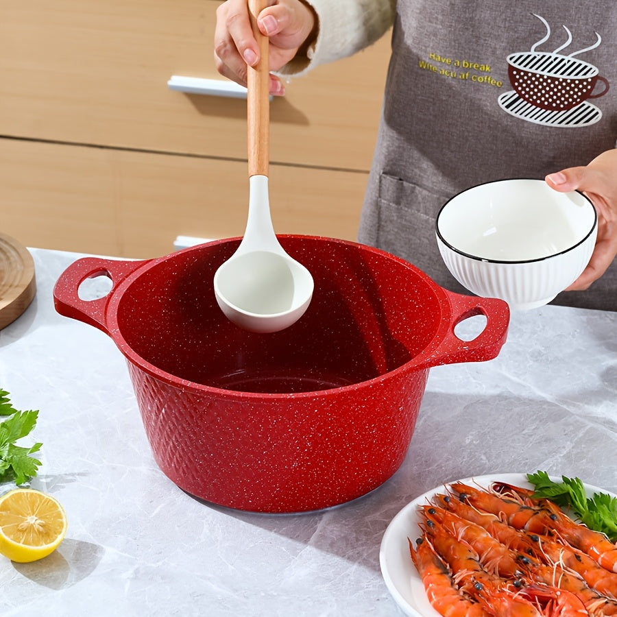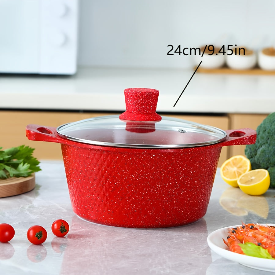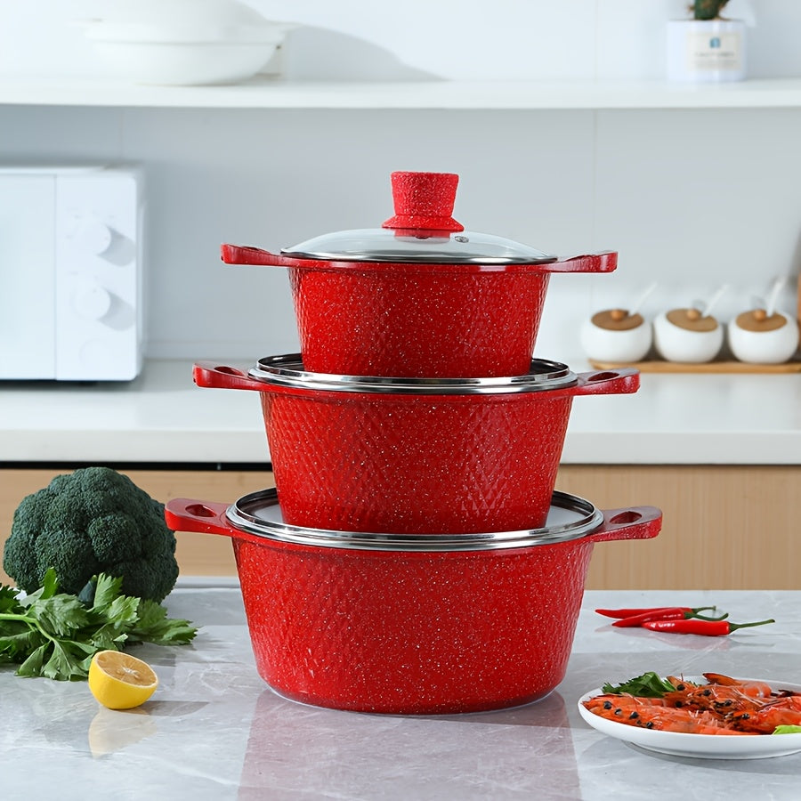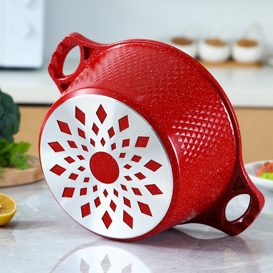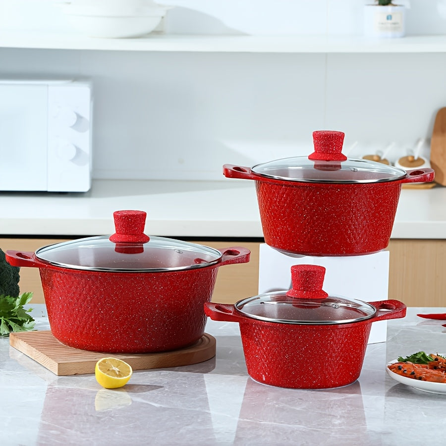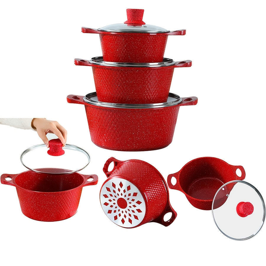 Qopqoq bilan qizil rangli mustahkam oshxona qozonlari va skovorodkalari to'plami, alyuminiy yopishqoq idishlar, gaz pechida pishirish uchun ideal - Ko'p maqsadli pishirish qozoni, qozon va qovurish skovorodkasi kiradi.