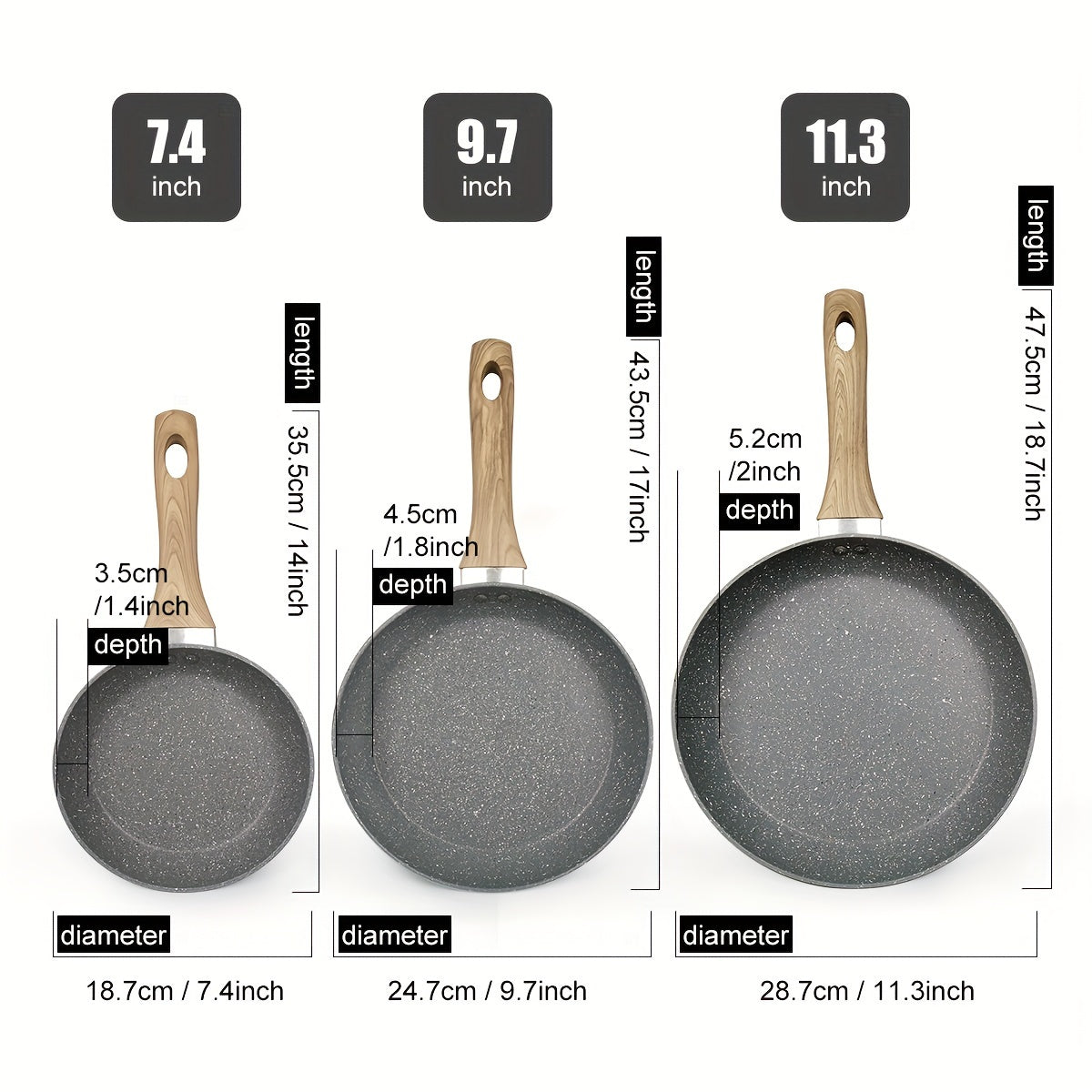 3 ta qismli yopishmaydigan alyuminiy qozonlar to'plami, induksiya mos, tuxum qovurish to'plamlari
