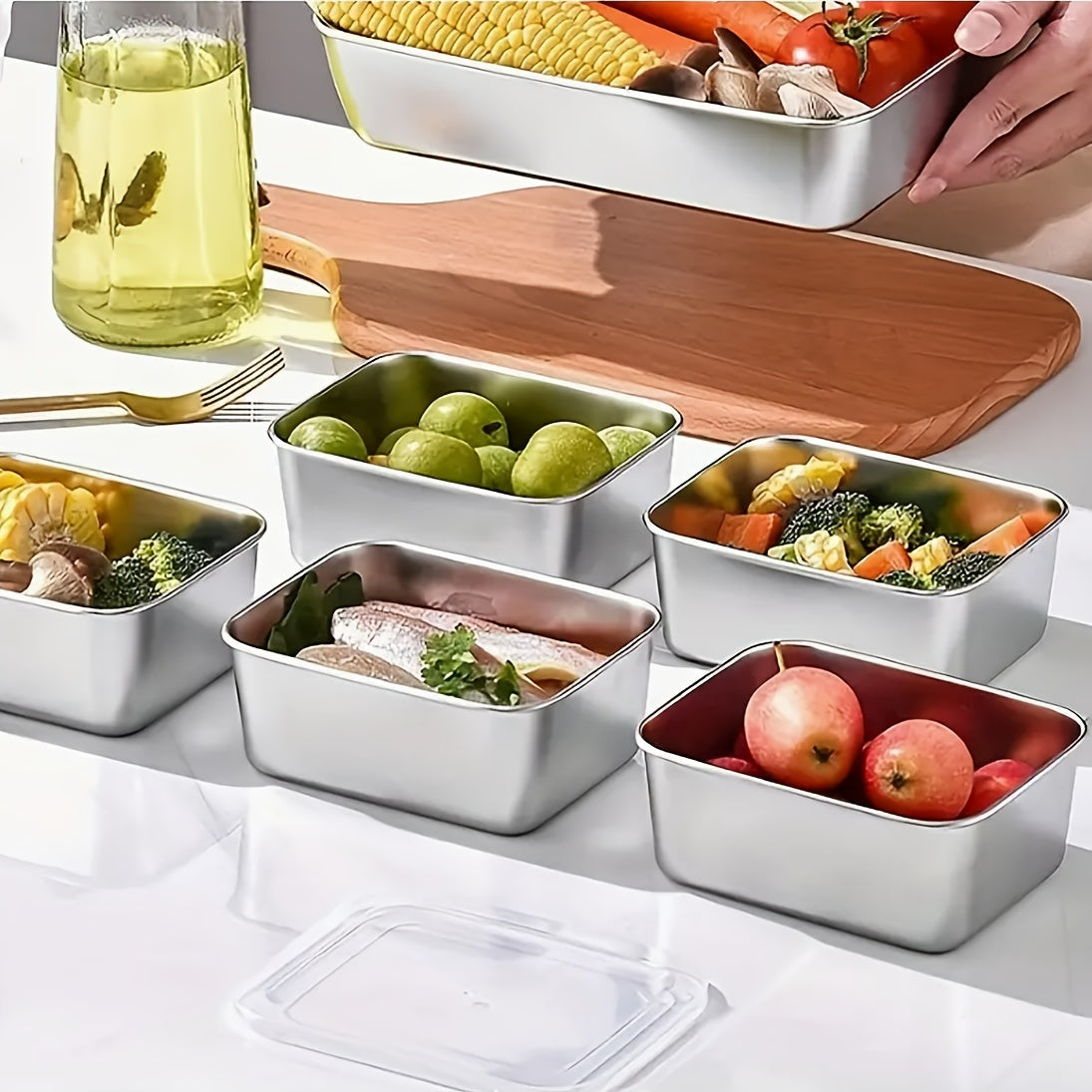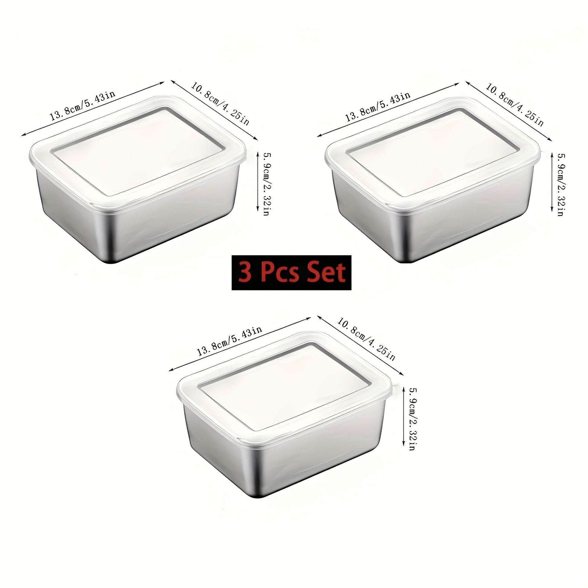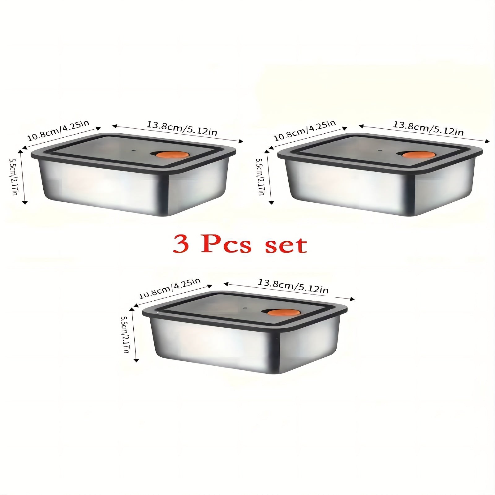 Uchta zanglamas po'latdan yasalgan oziq-ovqat saqlash idishlari to'plami, qopqoq bilan - kvadrat shaklda, qo'lda ishlash, elektr energiyasi talab qilinmaydi - oshxonada va ovqatlanish joyida foydalanish uchun ideal.