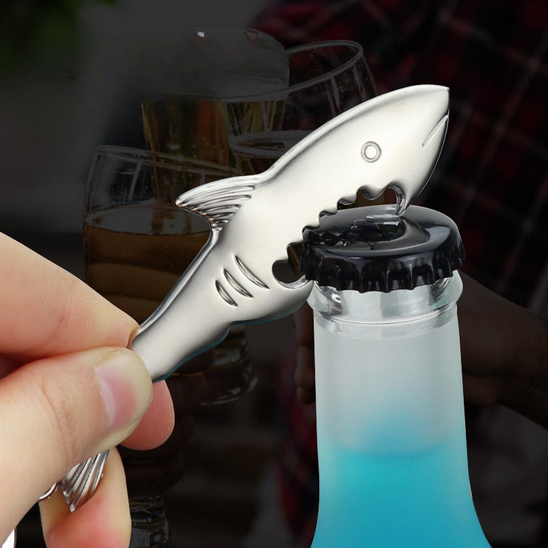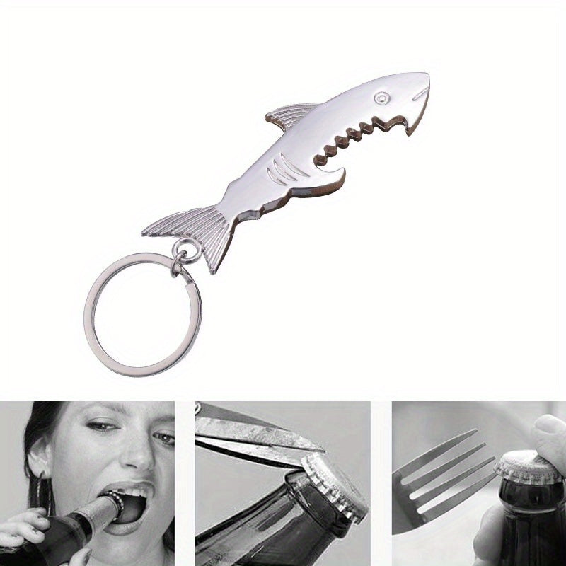 Akula shaklidagi zanglamas po'latdan yasalgan ochkich kalit: noyob va ijodiy pivo aksessuar, mukammal sovg'a g'oyasi. Kumush rang, qotishma materialdan yasalgan.