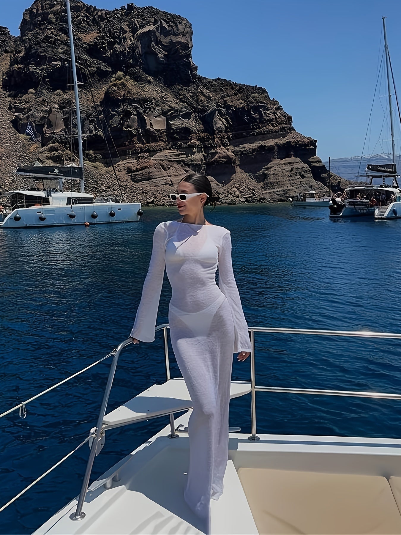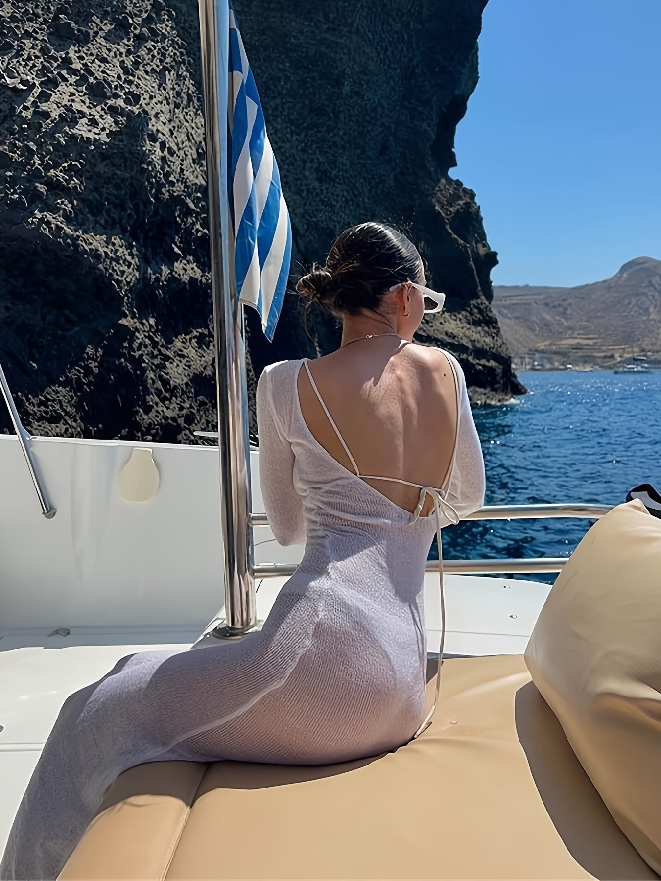 "Tugma orqa va krujka bo'yinli, ayollar uchun ta'til plyaj kiyimi, tor shakldagi ko'ylak"