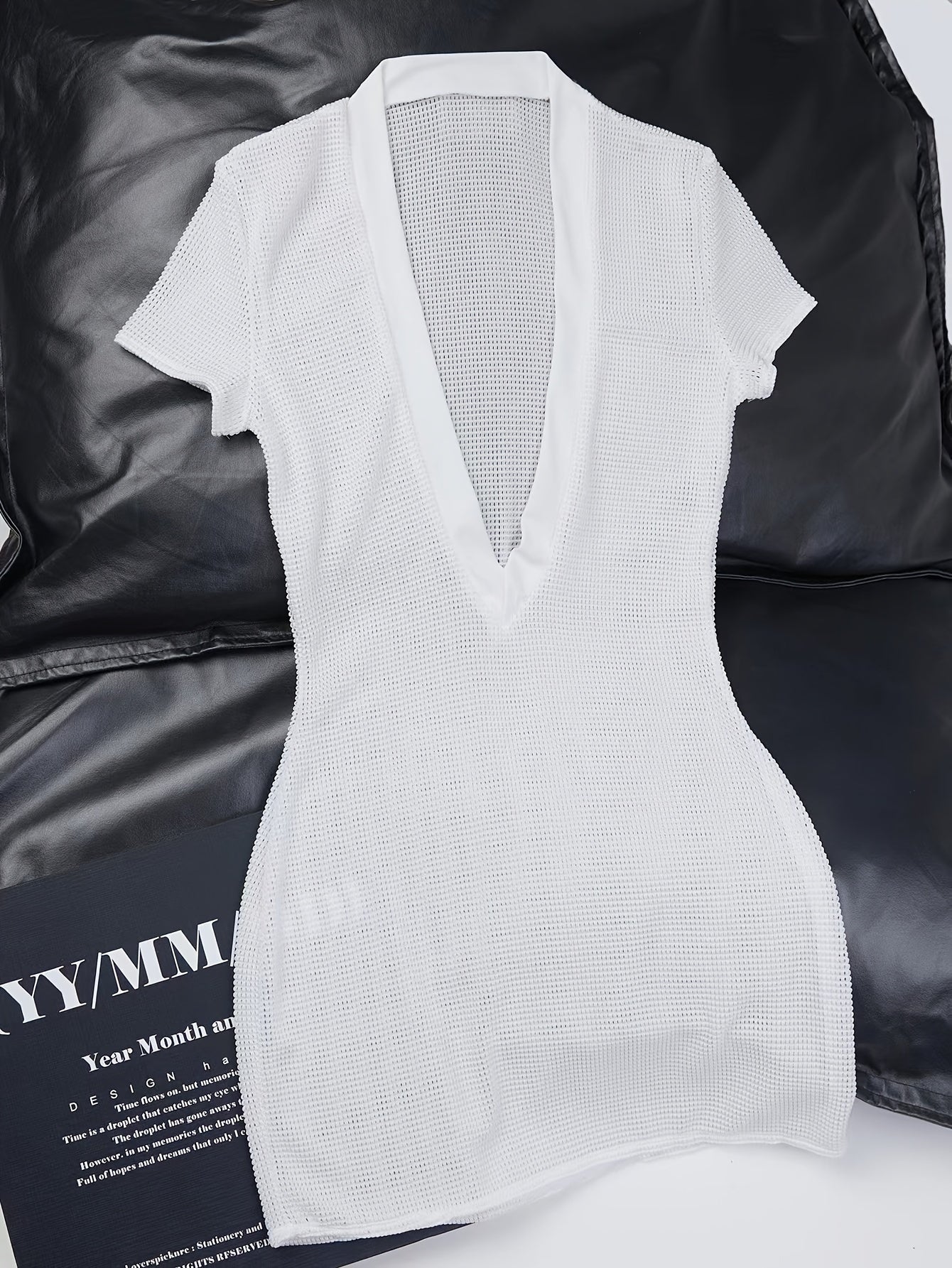 Ayollar uchun shaffof V-shaklidagi plyaj koftasi - 90% poliamid, 10% elastan, ozgina cho'ziladigan barcha mavsumlar uchun to'qilgan mato, bir rangda, nafas oladigan quyoshdan himoya.