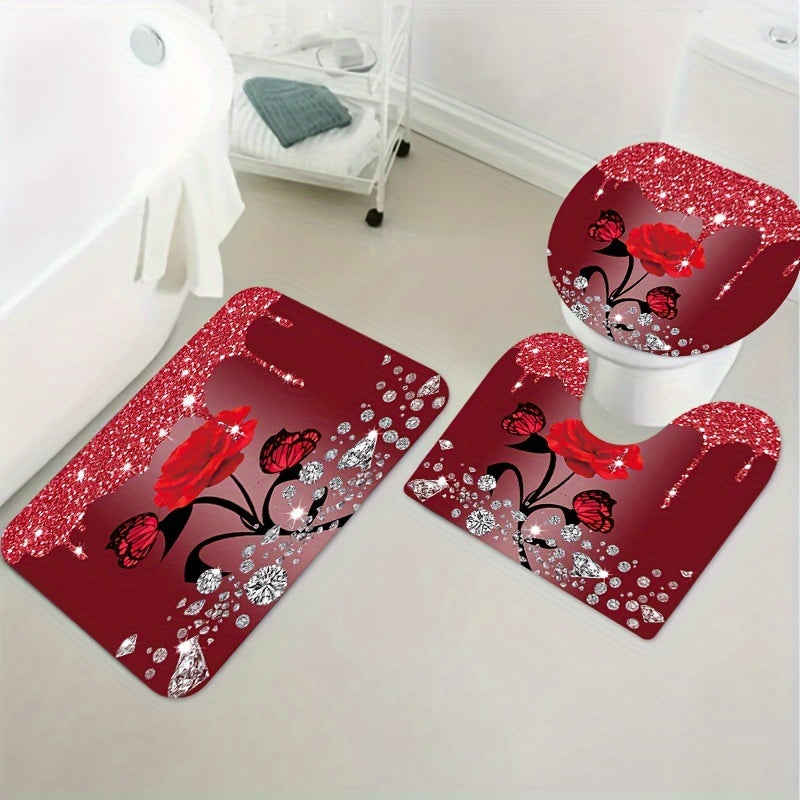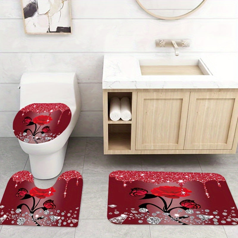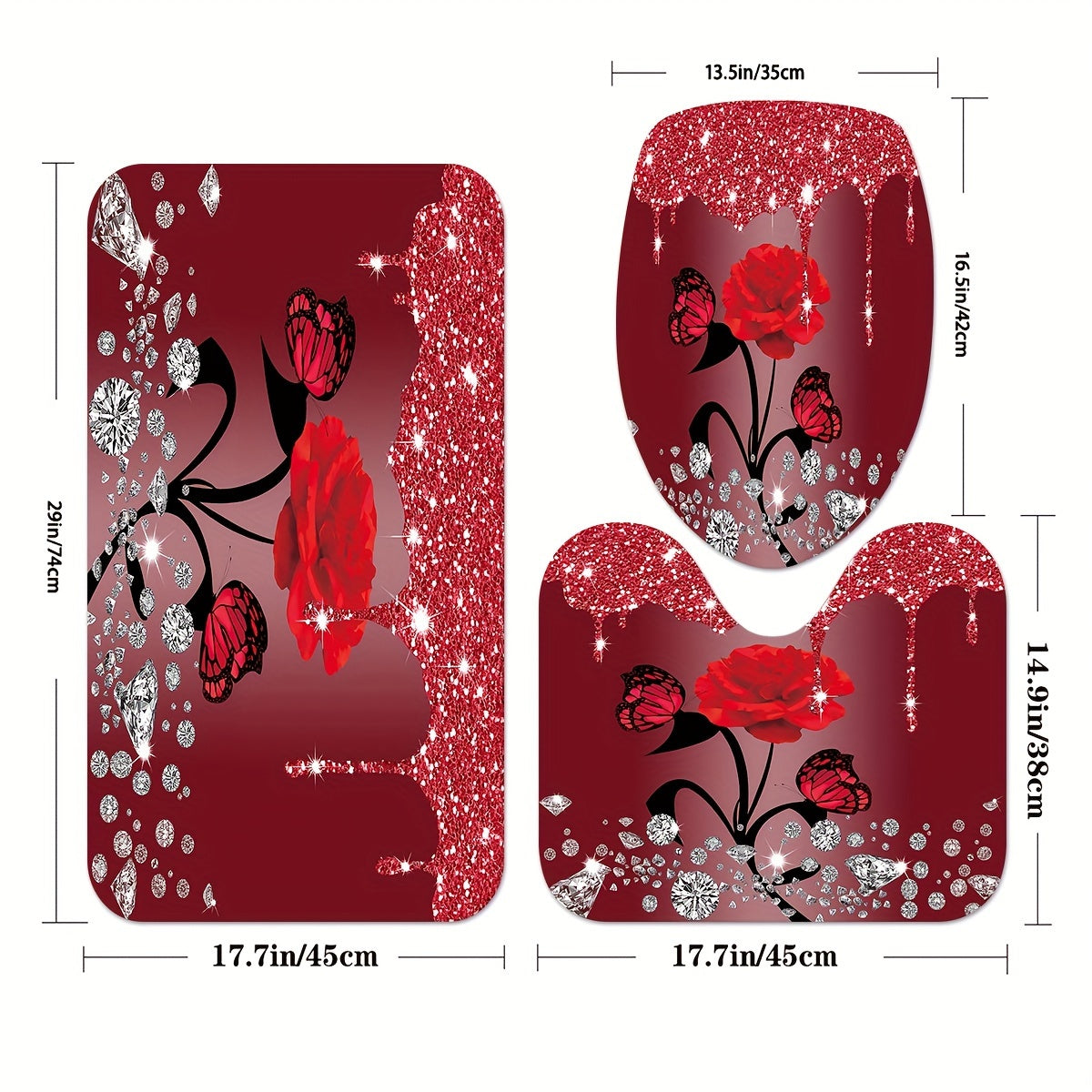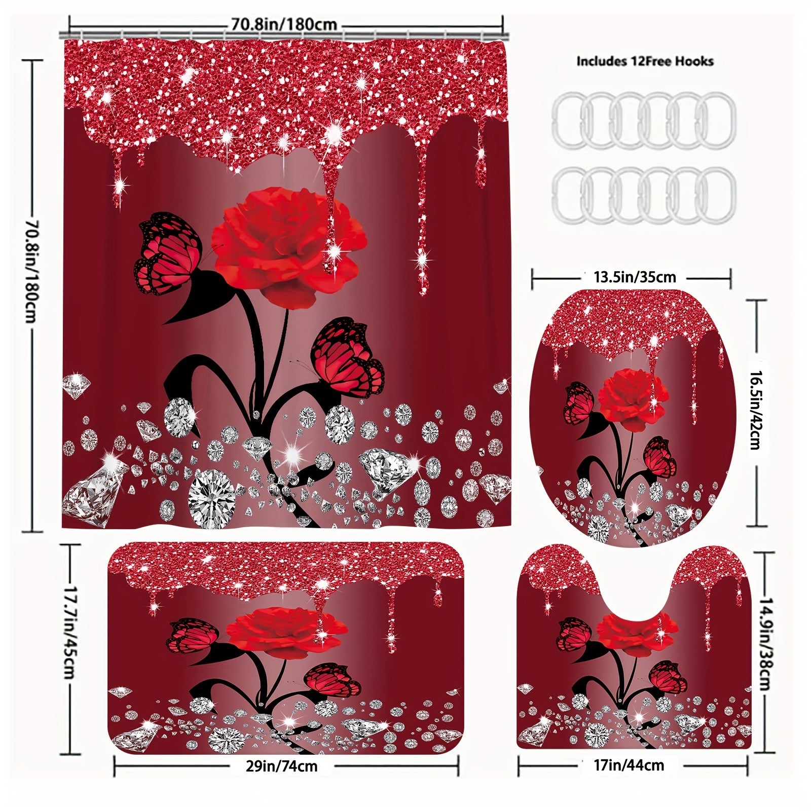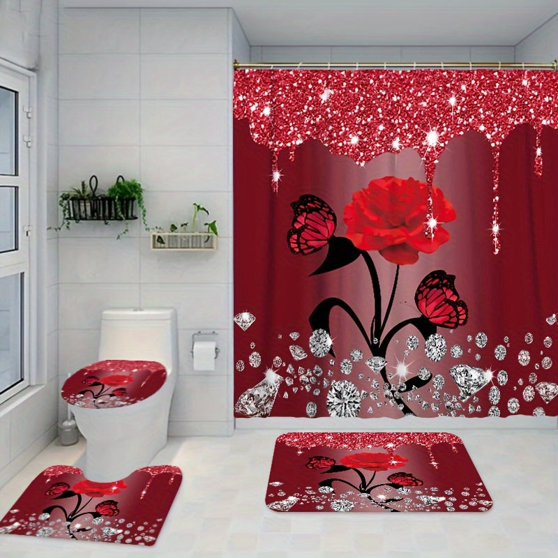 Qizil g'isht toshli kapalak va atirgul dizayni bilan dush pardasi, 1, 3 yoki 4 dona mavjud.