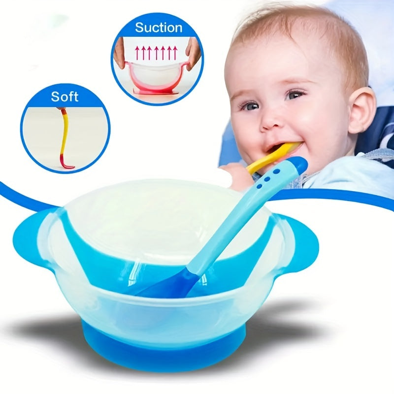 Bola uchun ovqatlanish bochka va qoshiq, silikon, sirg‘almas, haroratni o‘lchash, oziq-ovqat uchun xavfsiz