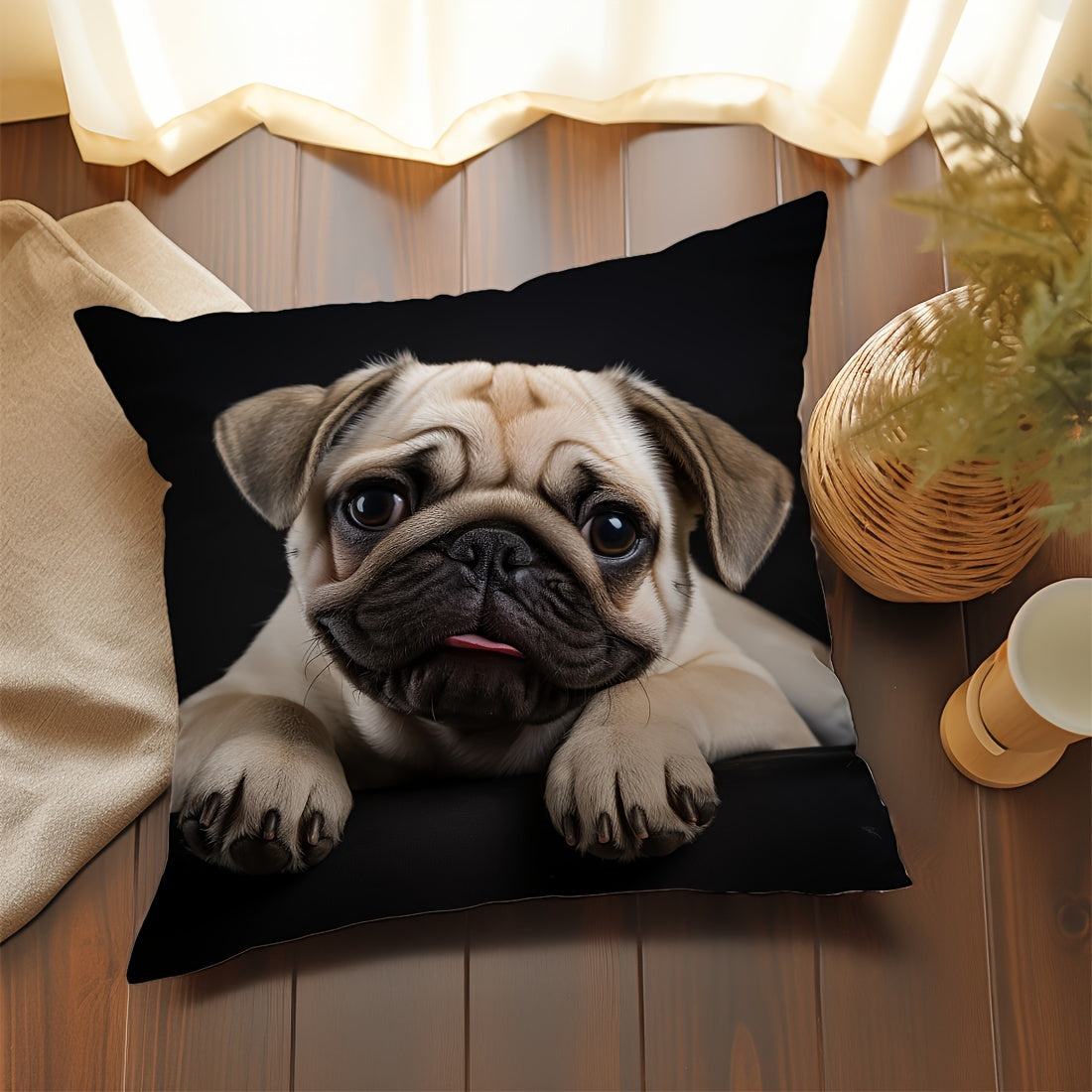 It yurakchasli it izlari bilan bezatilgan 45x45 sm o'lchamdagi to'qima charm bilan qoplangan yostiq qoplami, dekorativ divan yostiq.