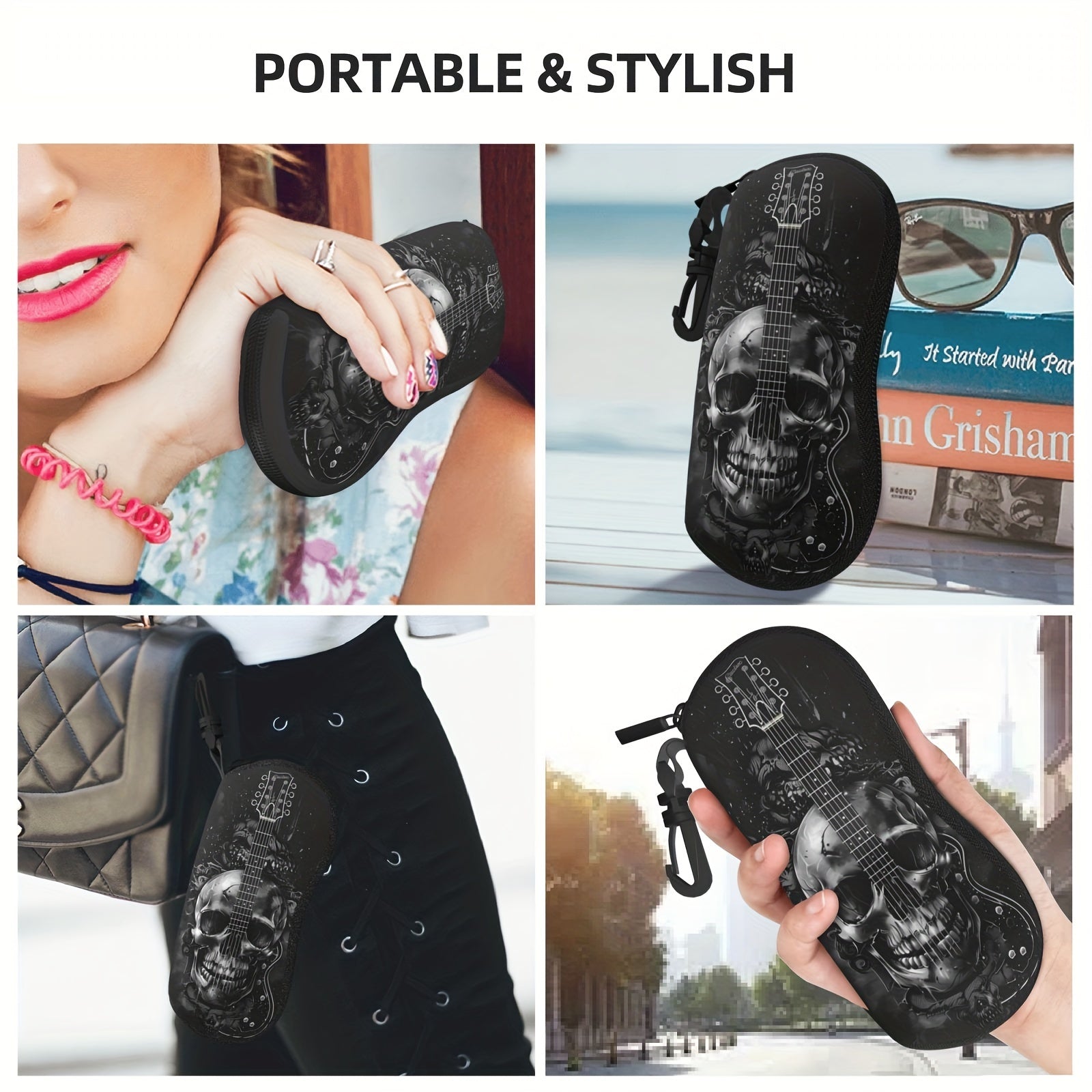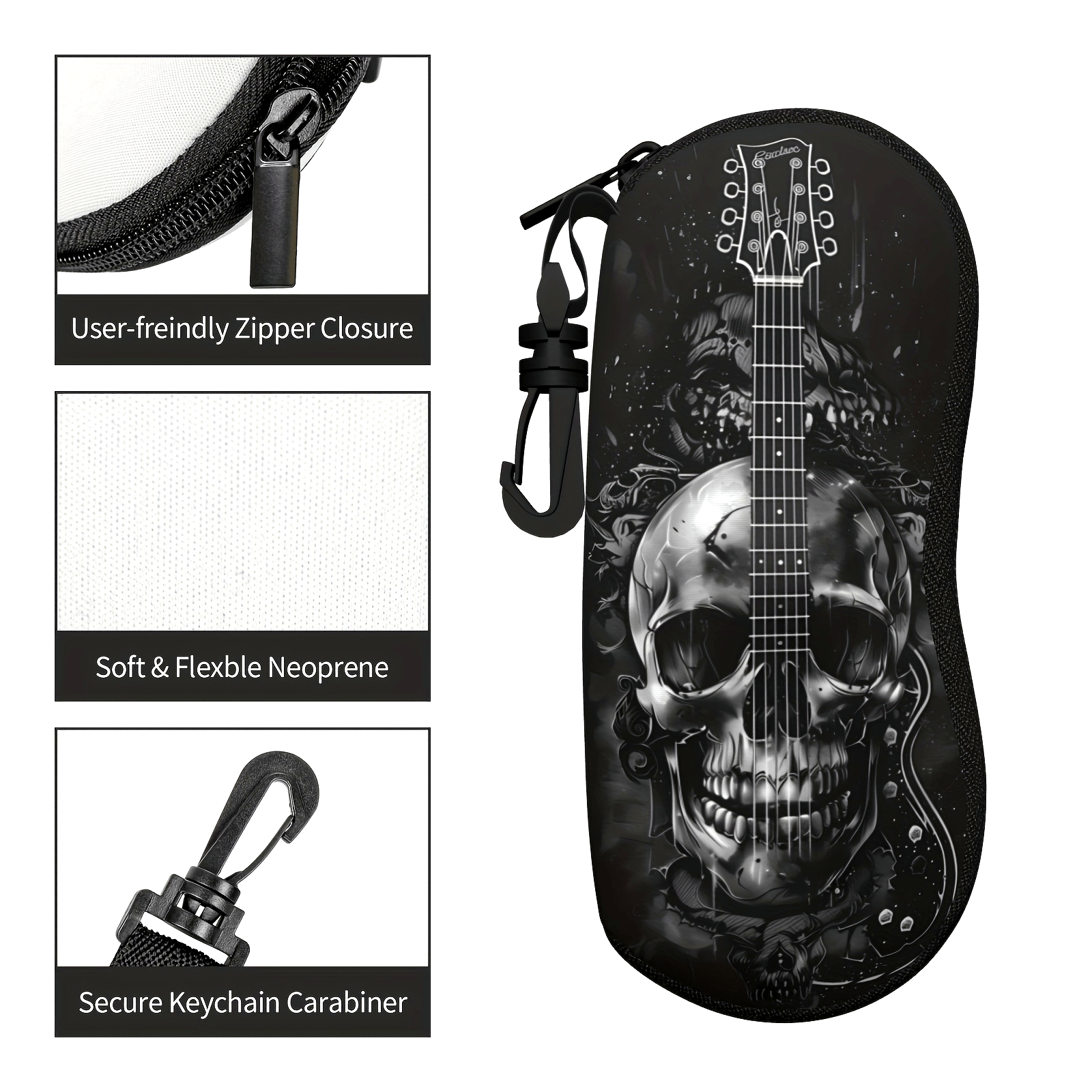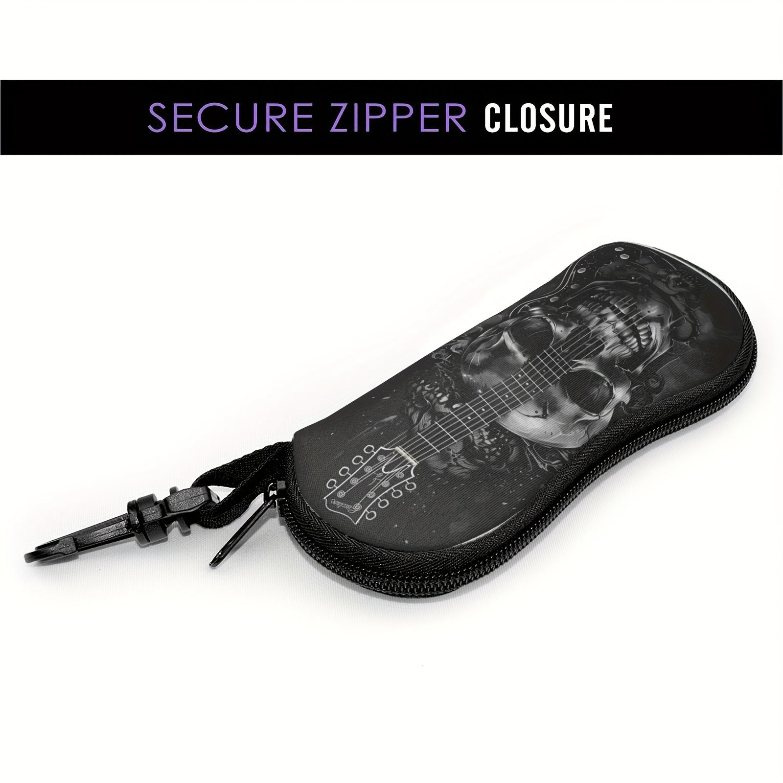 Musiqa dizayni va toqqa chiqish qopqog'i bilan qoplangan bosh suyakli ko'zoynak qutisi - fermuarlı yopiq, o'qish ko'zoynaklari uchun ultra-yengil va portativ saqlash, erkaklar va ayollar uchun mos.