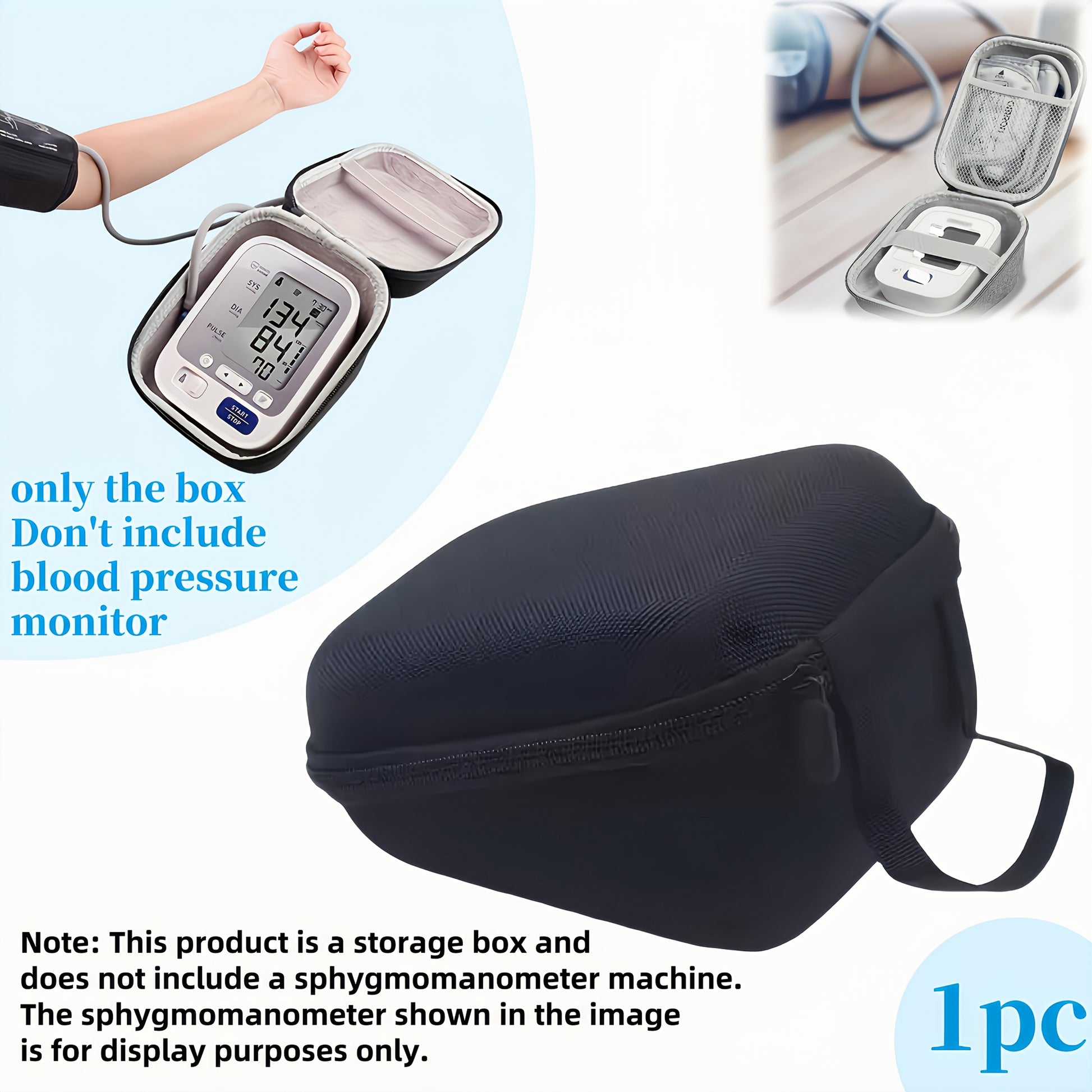 Qora polyester portativ qon bosimi monitorining qutisi, manjet saqlash bilan