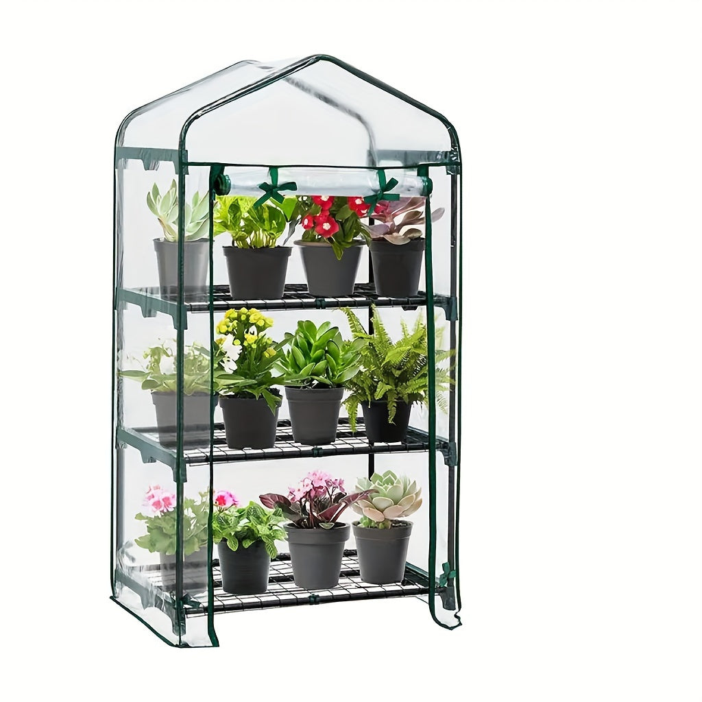 Ichki va tashqi o'simliklar uchun shaffof PVC qoplamali kichik yashil uy.