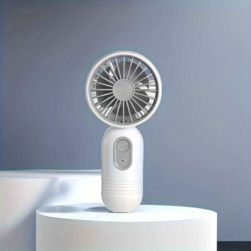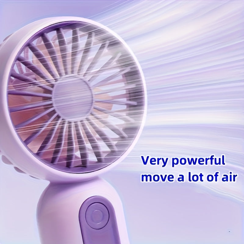 Kichik portativ fan, qo'lga olinadigan va USB orqali zaryadlanadigan, yengil va jim, ish stolida yoki sayohat paytida foydalanish uchun ideal yozgi sovg'a.