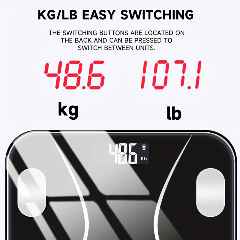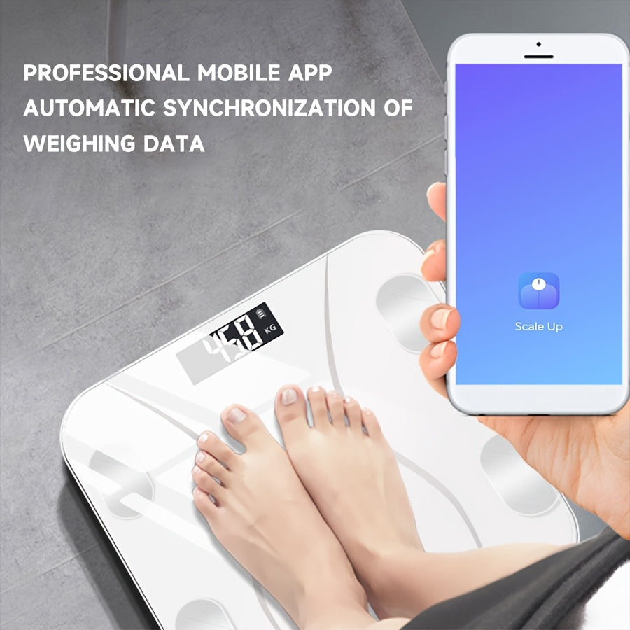 LCD displeyli aqlli elektron tarozi, mobil telefon bilan ulanish, aniq tana vaznini o'lchash, batareya bilan ishlaydi (batareya kiritilmagan), kattalar uchun, uyda foydalanish.