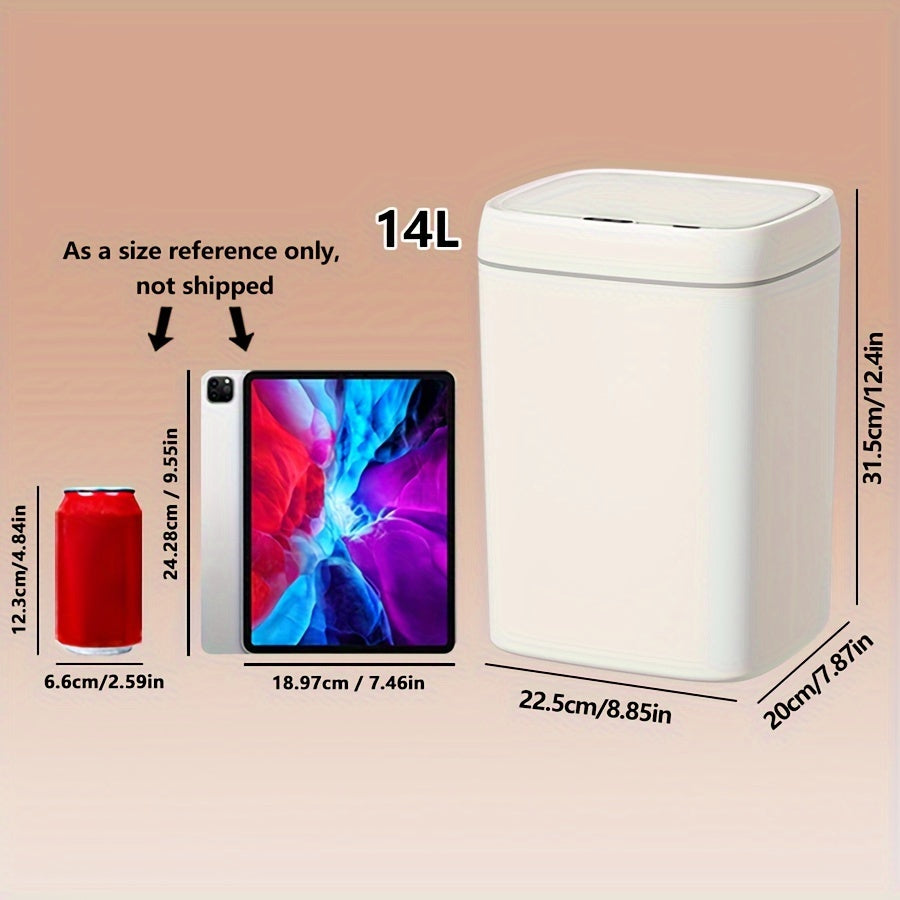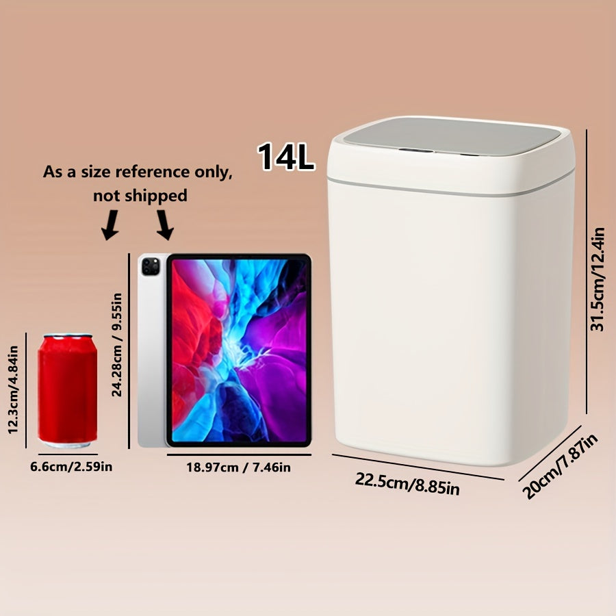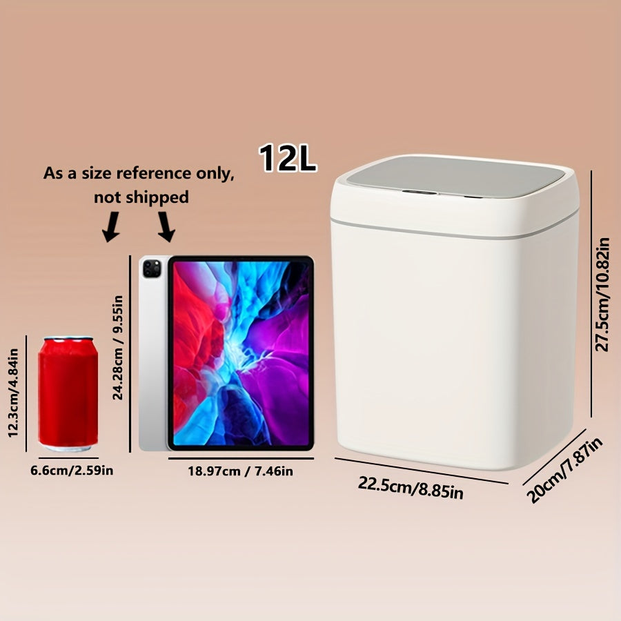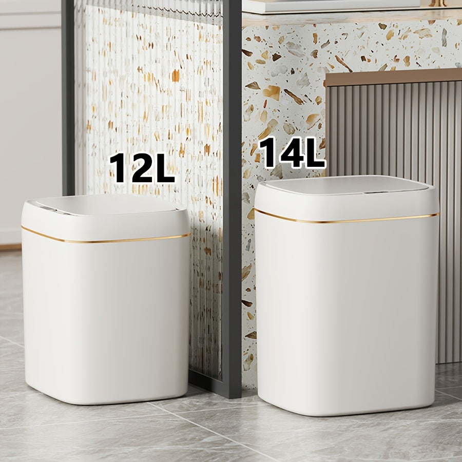Infraqizil sensorli aqlli axlat qutisi, 12L/14L sig‘imi, batareya bilan ishlaydi, uy, ofis va maktab uchun ideal, jim operation, zamonaviy qopqoq uslubi, sumka ko‘rsatkichi.