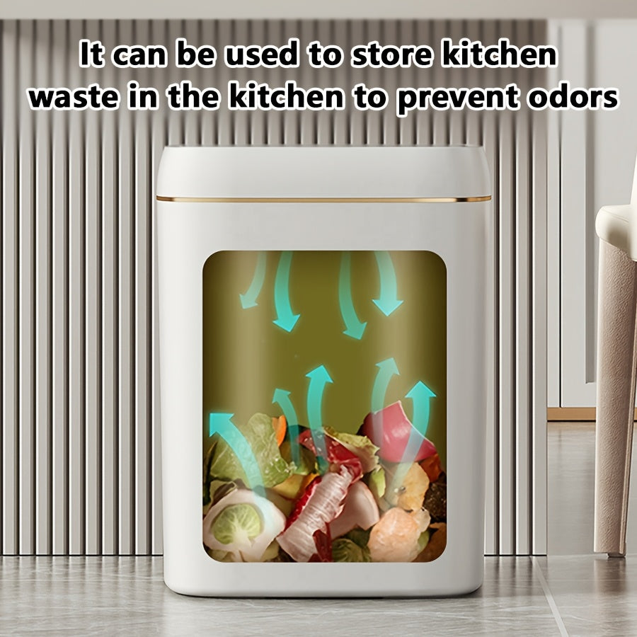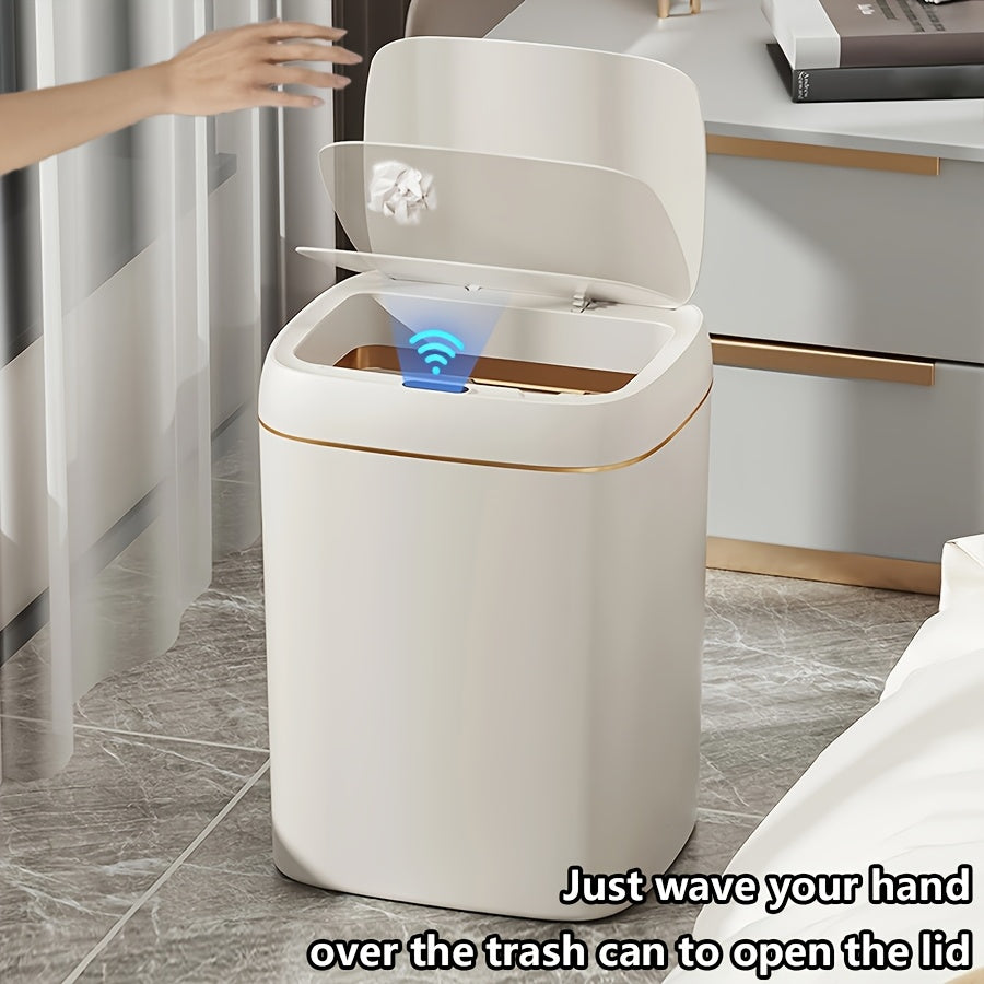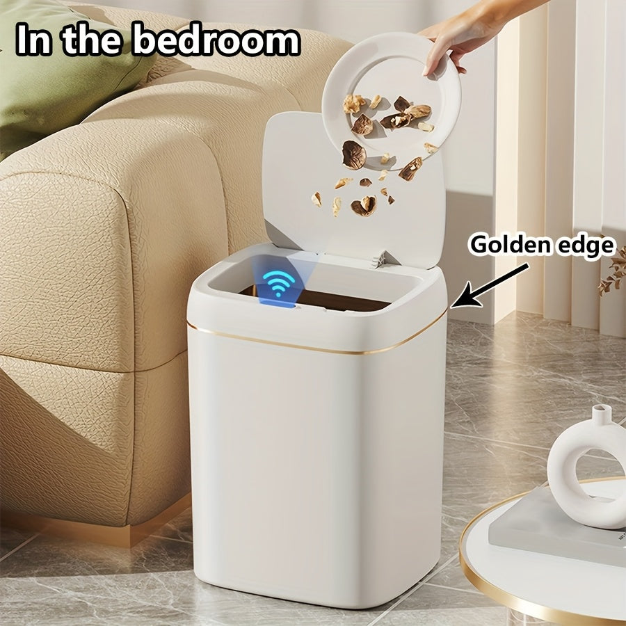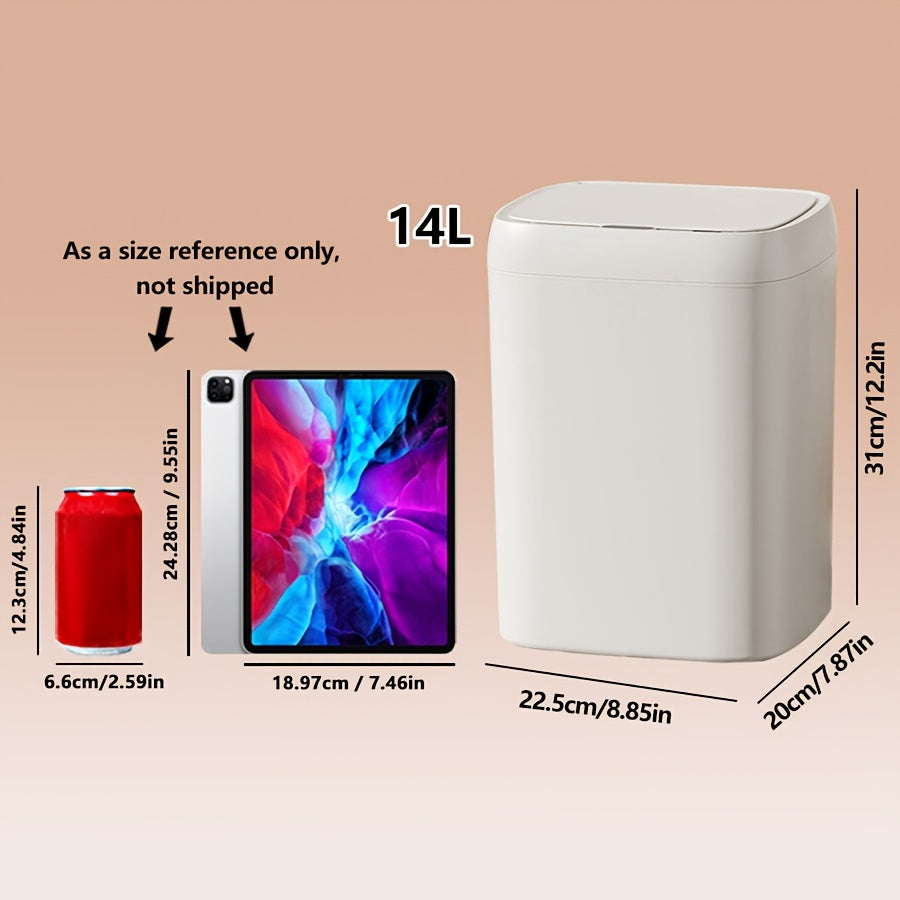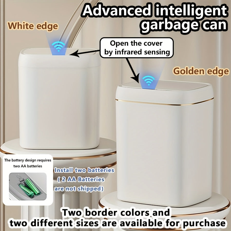 Infraqizil sensorli aqlli axlat qutisi, 12L/14L sig‘imi, batareya bilan ishlaydi, uy, ofis va maktab uchun ideal, jim operation, zamonaviy qopqoq uslubi, sumka ko‘rsatkichi.
