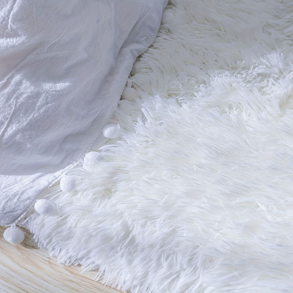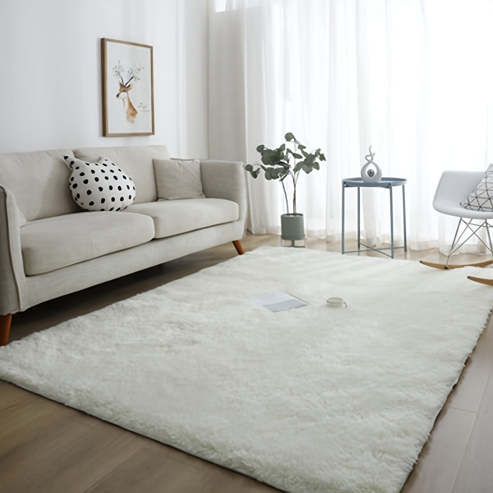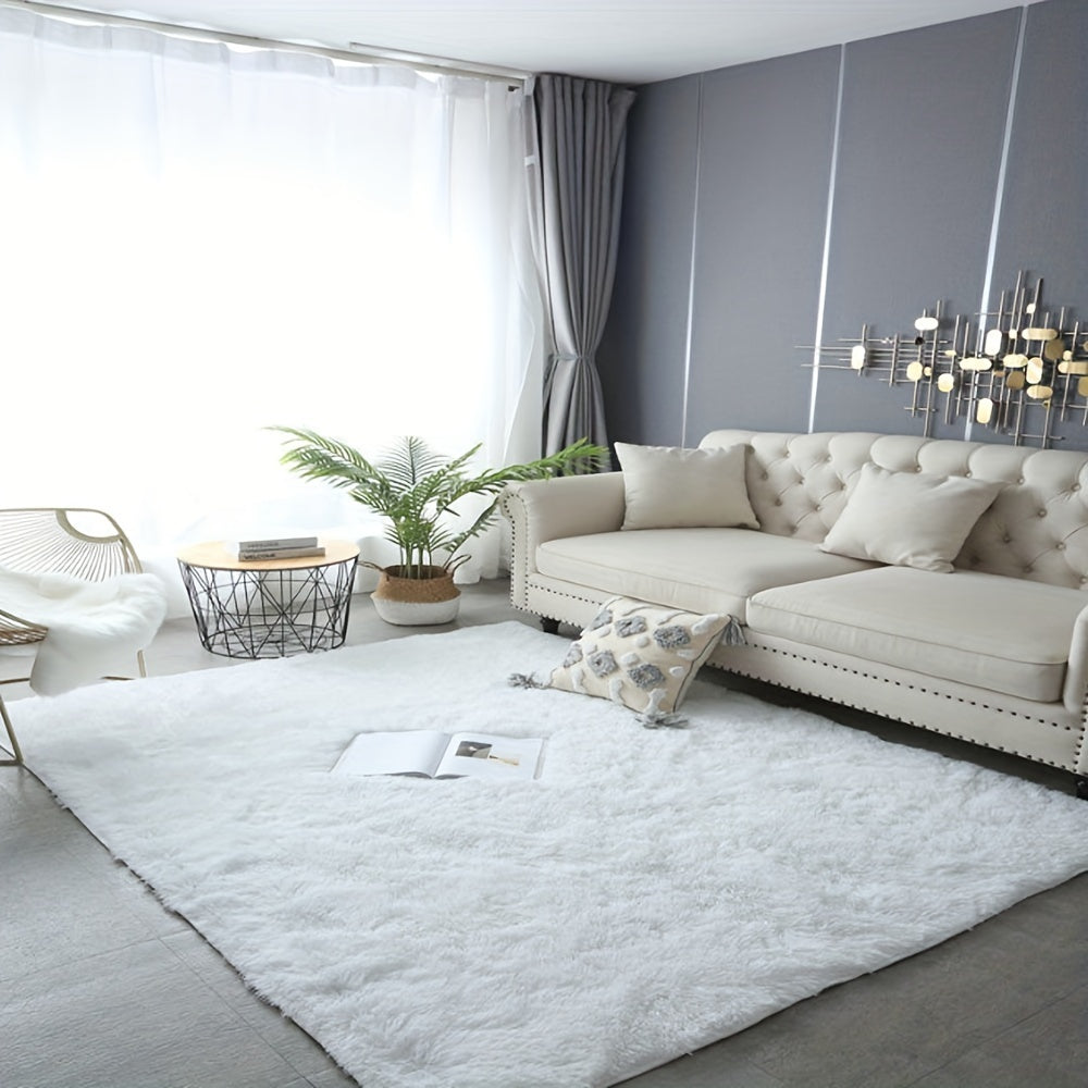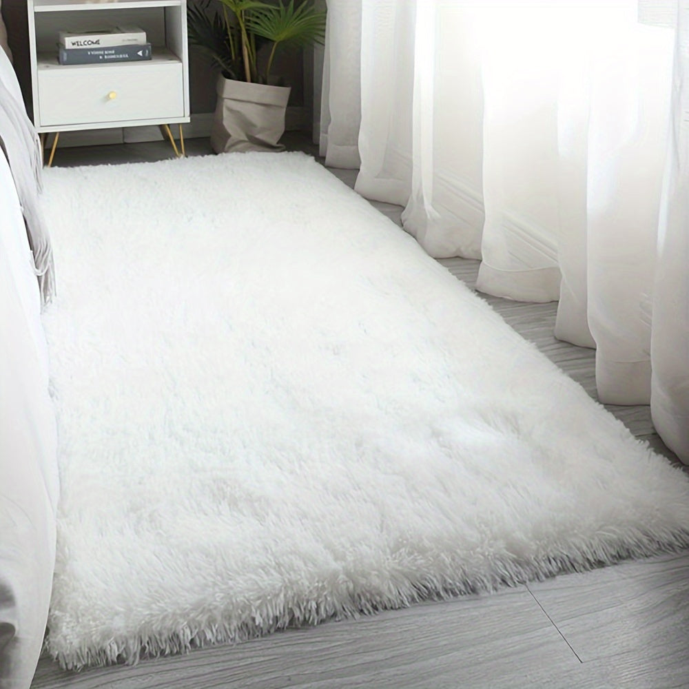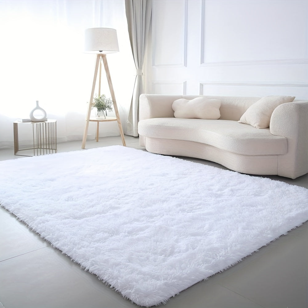 Yumshoq va hashamatli toza oq plush maydon gilami, yotoqxona, yashash xonasi va yotoqxona bezatish uchun ideal. Oson parvarish uchun mashinada yuviladigan polyesterdan tayyorlangan.
