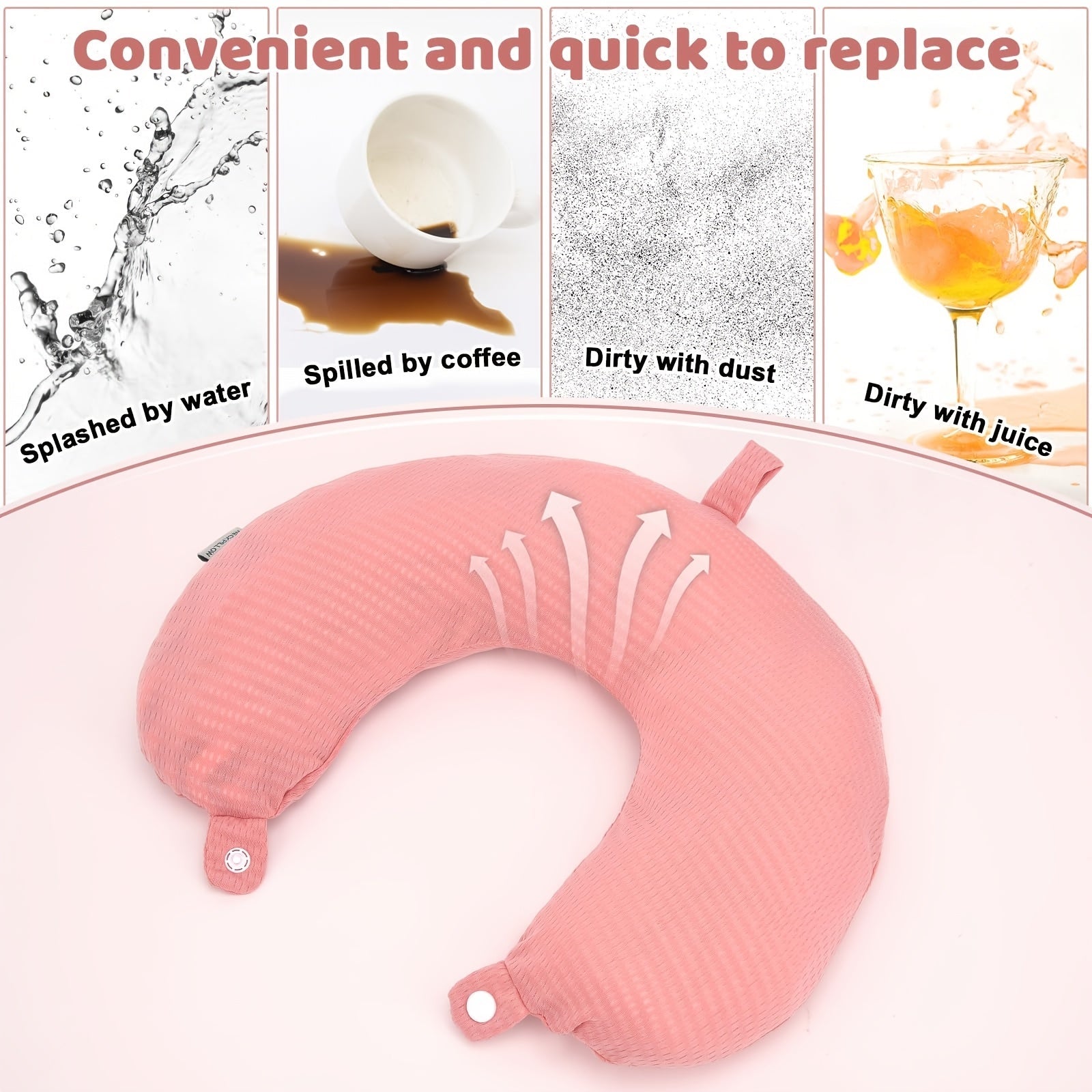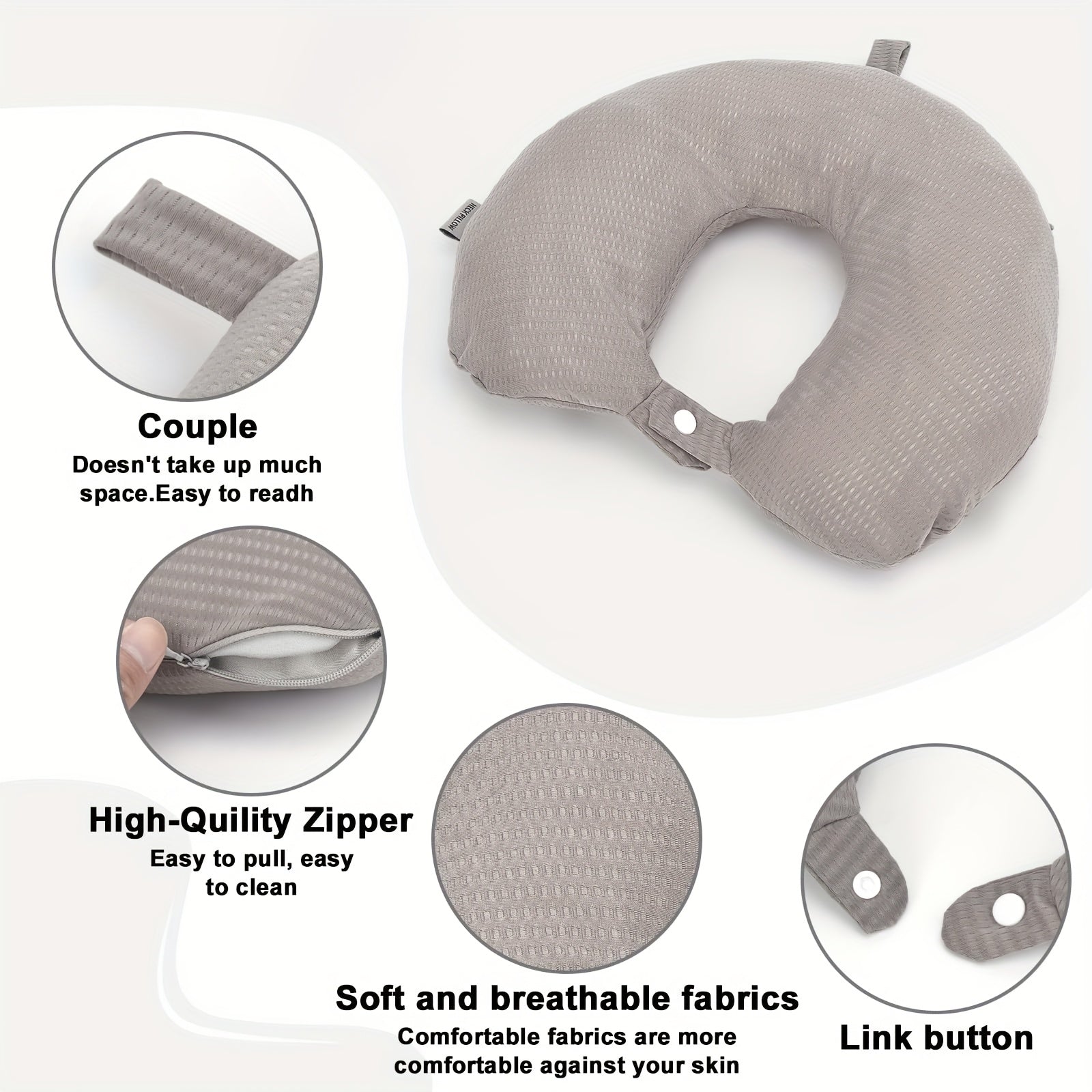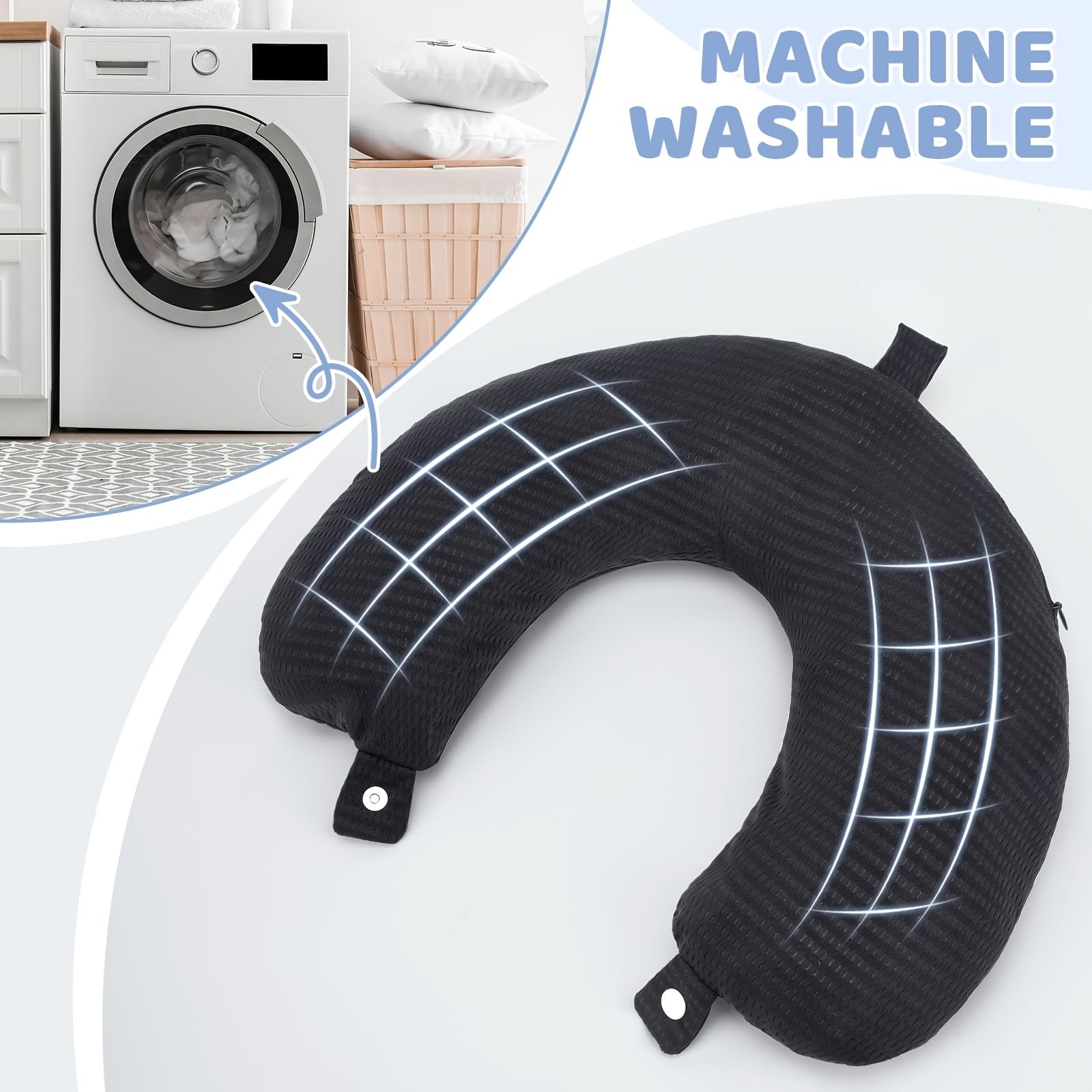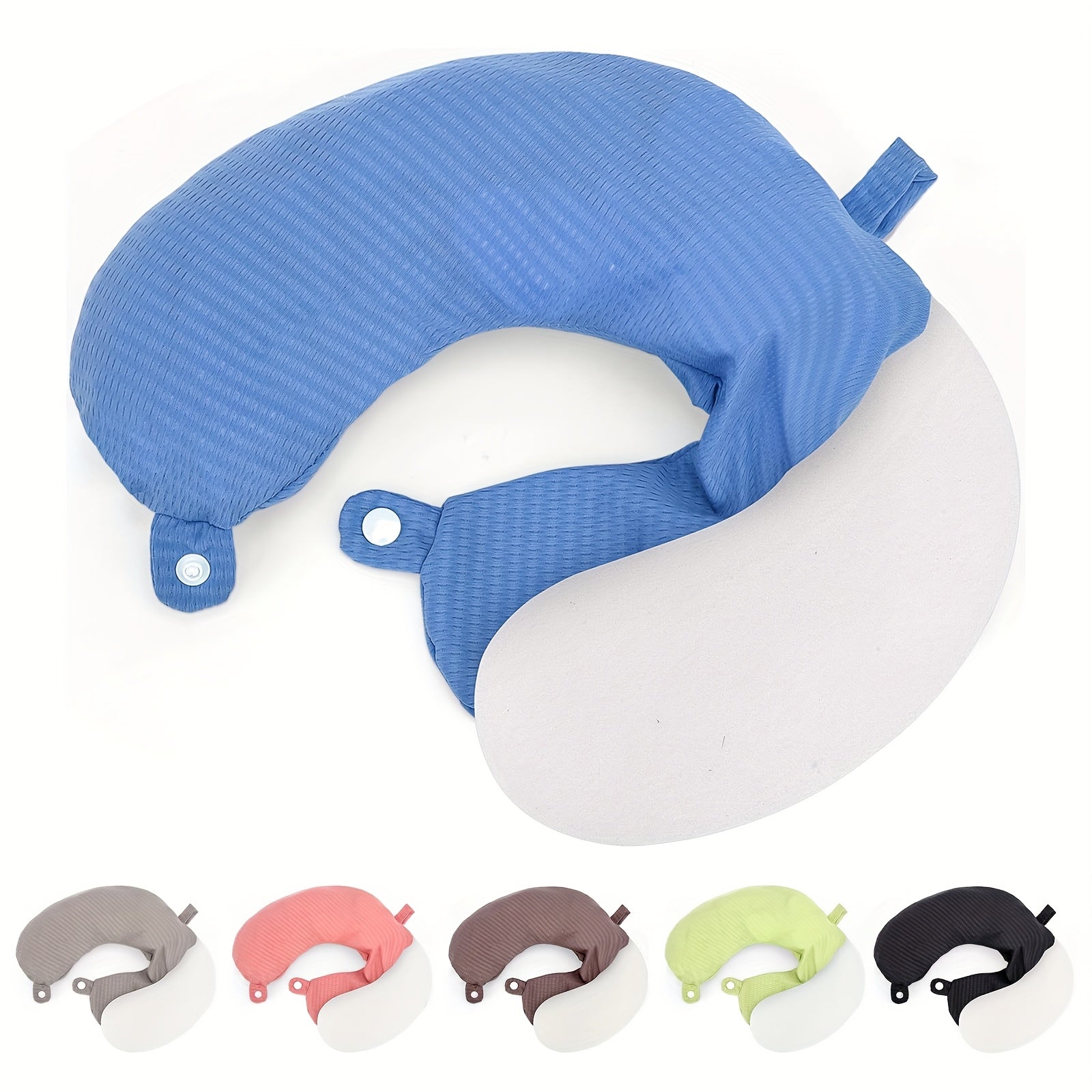 Koʻk rangli toʻqilgan polyester U-shaklidagi sayohat boʻyniga taqiladigan yostiq qoplami, engil, yuviladigan