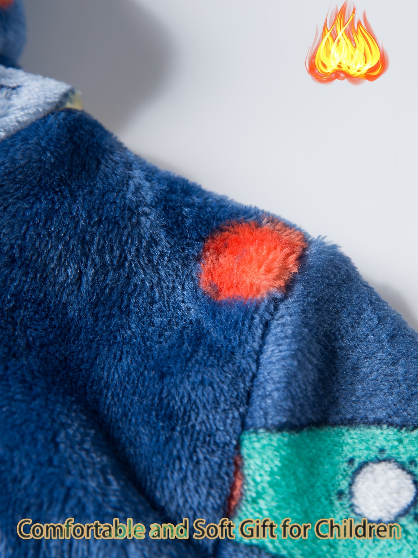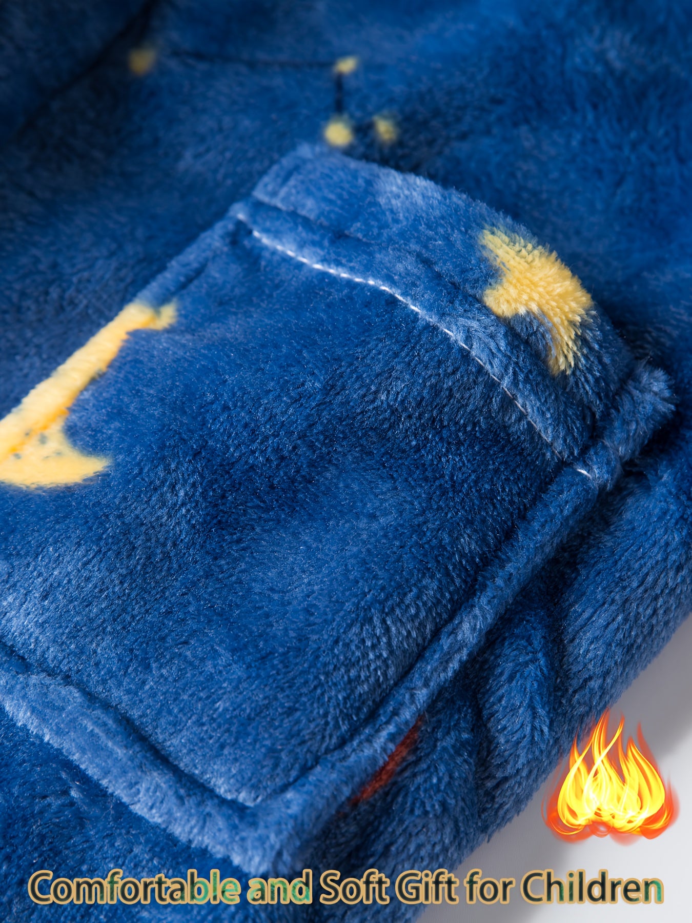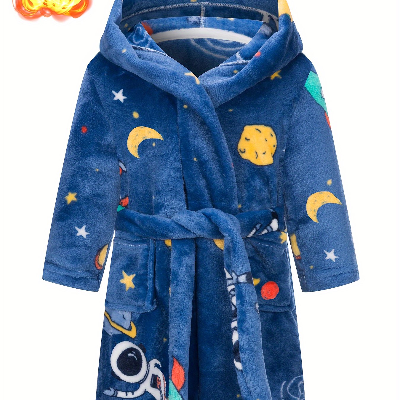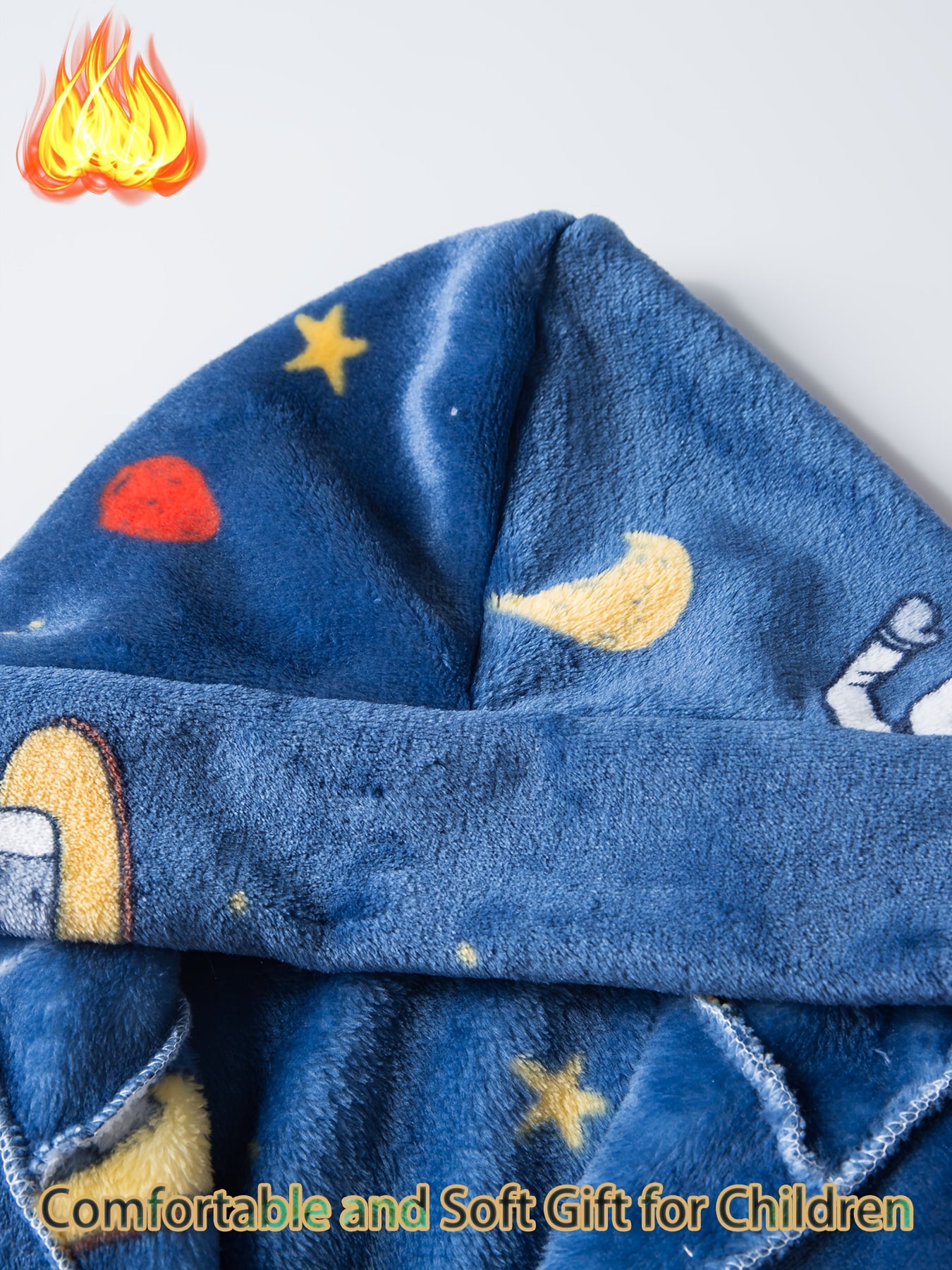 Bolalar uchun kosmik mavzuli flanel hammom kiyimi, kapushonli va choʻntakli, 2-11 yoshdagi bolalar uchun
