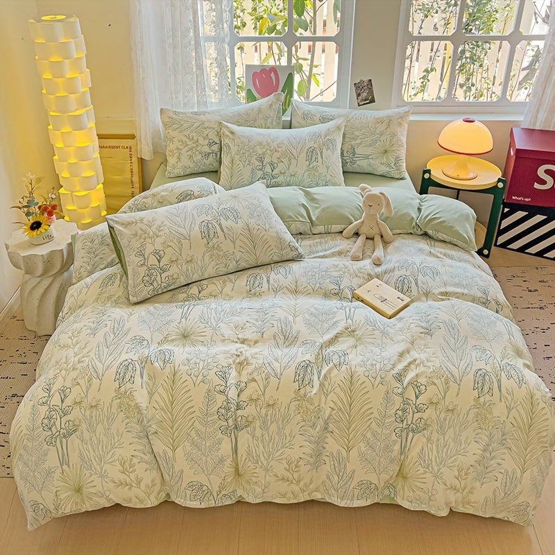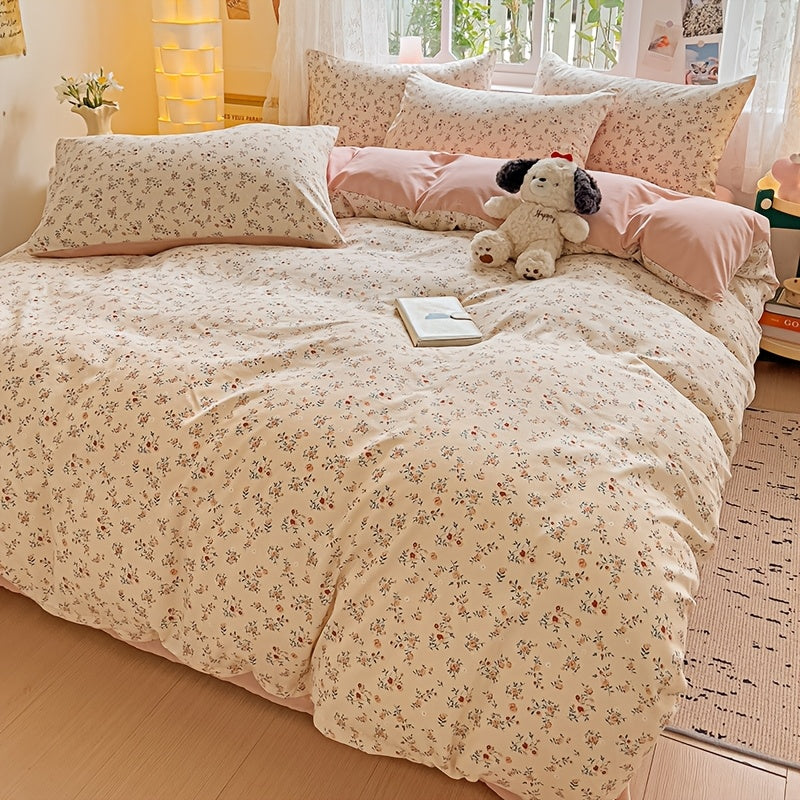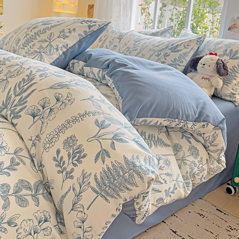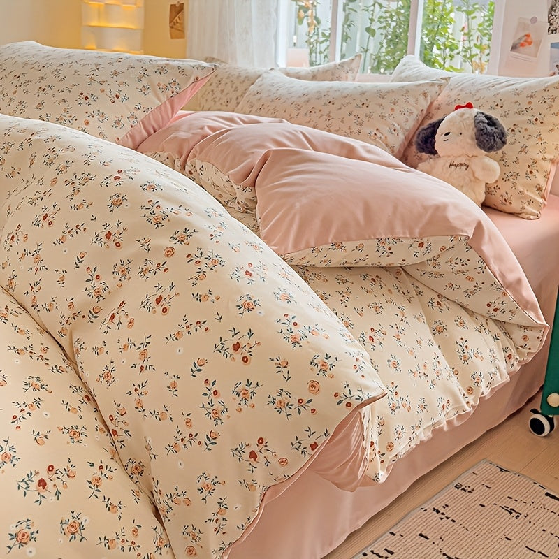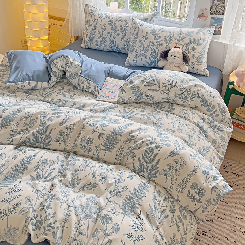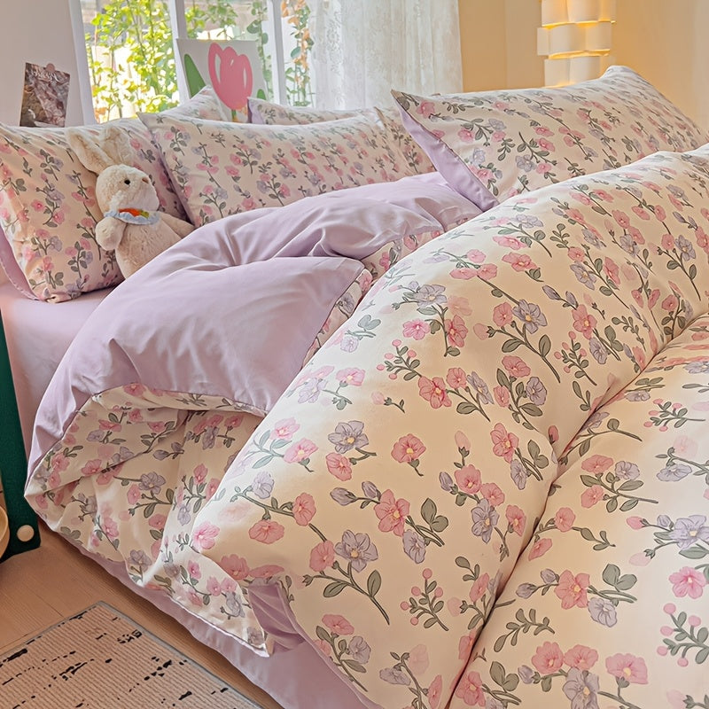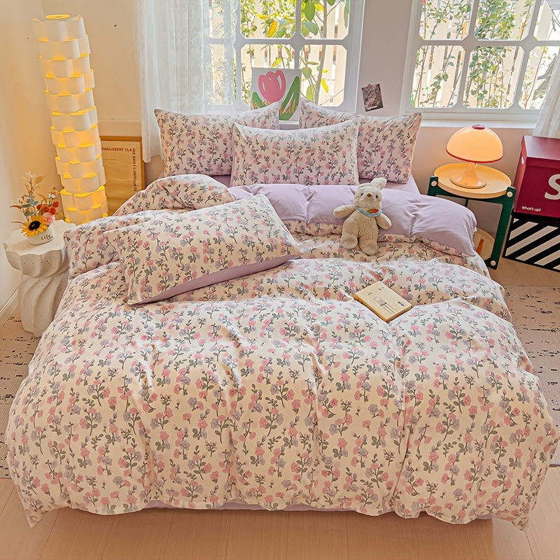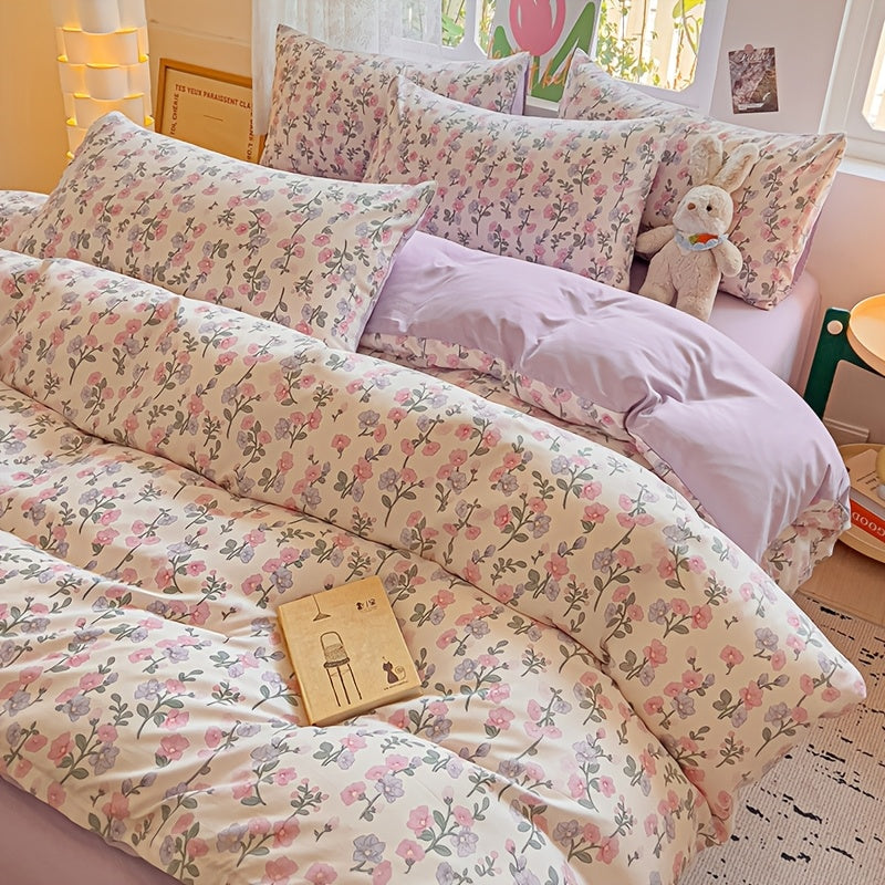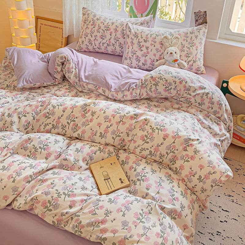 Yumshoq gullar naqshidagi yotoq to'plami, yostiq qoplari bilan birga, nafas oladigan polyesterdan tayyorlangan va zip yopilishi mavjud. Har mavsum uchun mos, yotoqxona va mehmonxonalar uchun mukammal.