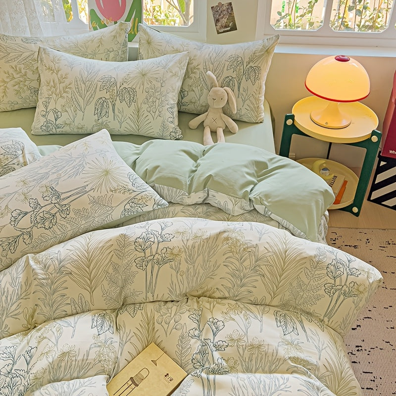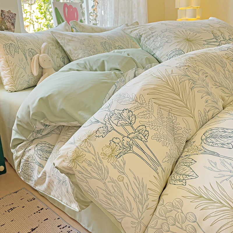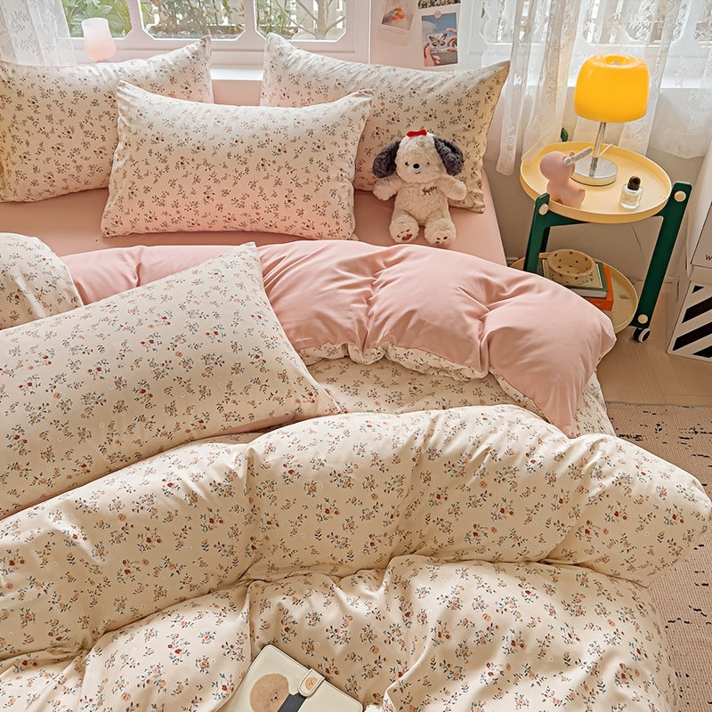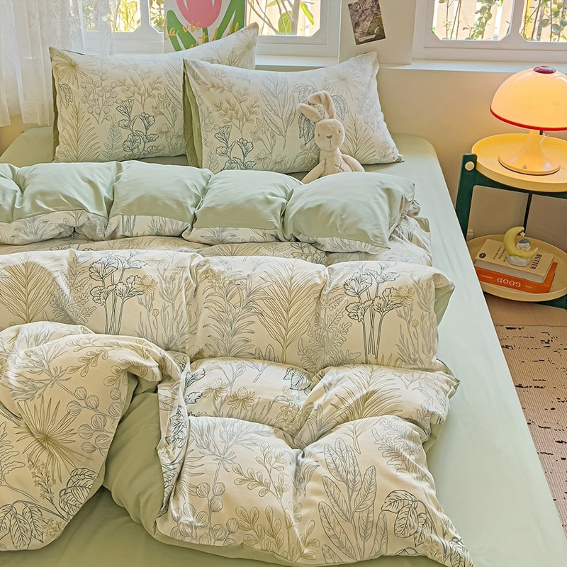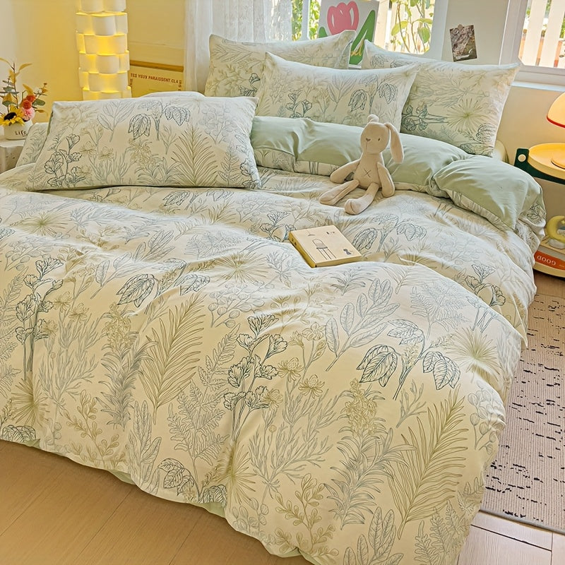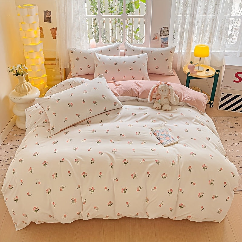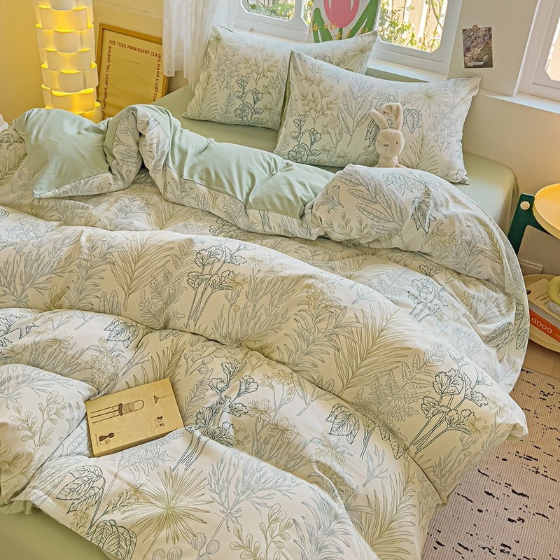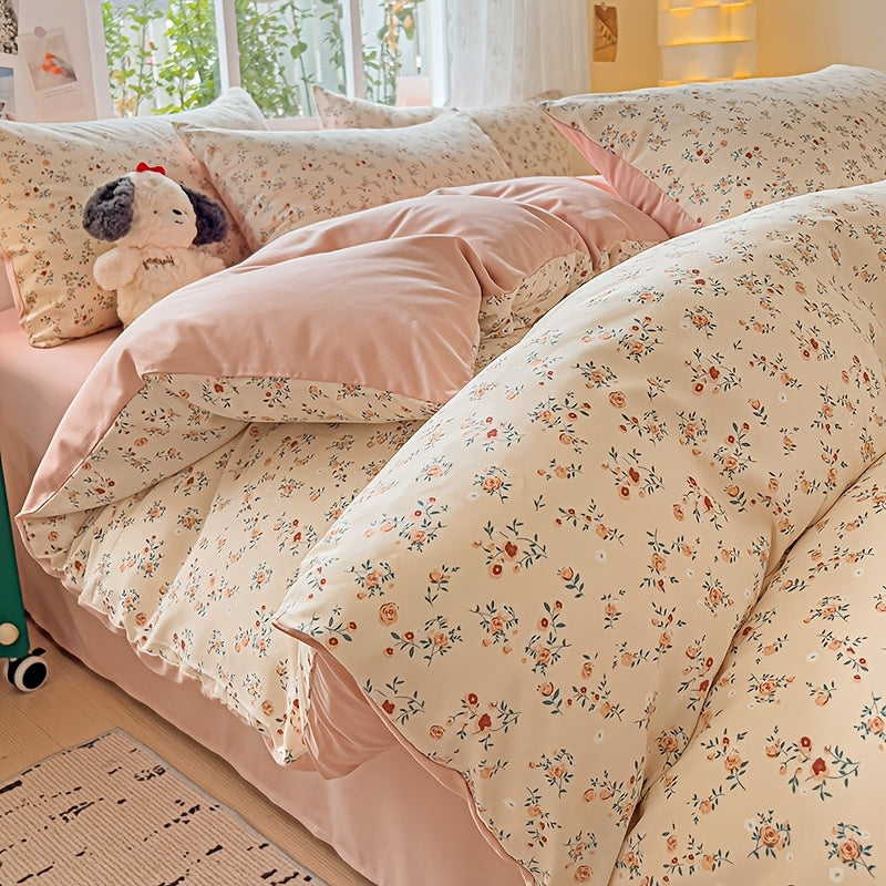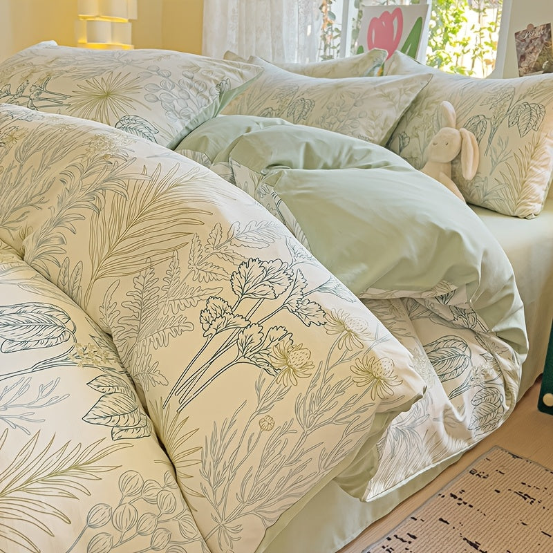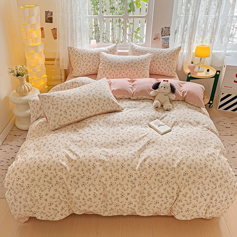Yumshoq gullar naqshidagi yotoq to'plami, yostiq qoplari bilan birga, nafas oladigan polyesterdan tayyorlangan va zip yopilishi mavjud. Har mavsum uchun mos, yotoqxona va mehmonxonalar uchun mukammal.