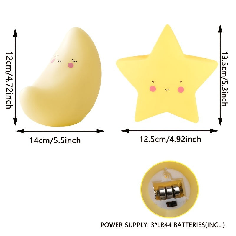 Yotoqxona yoki yashash xonasi dekoratsiyasi uchun yulduz va oy dizayni bilan yumshoq nurli tun chirog'i, ko'zga g'amxo'rlik qiluvchi muhitni ta'minlaydi. Bayramlar va Ramazon uchun ideal sovg'a.
