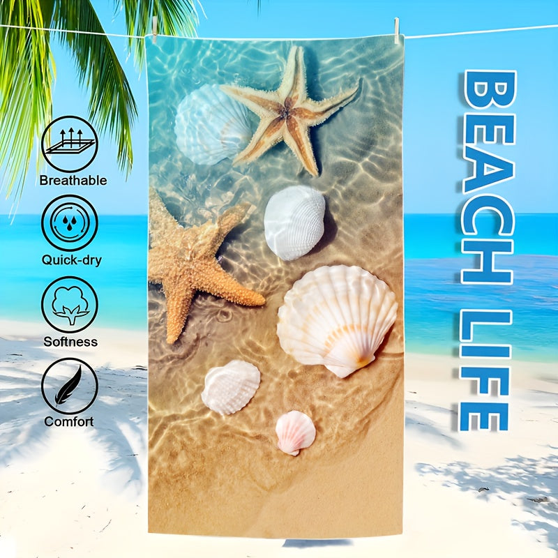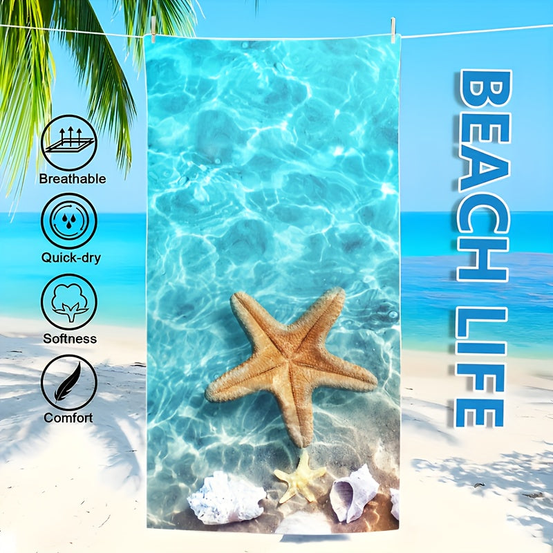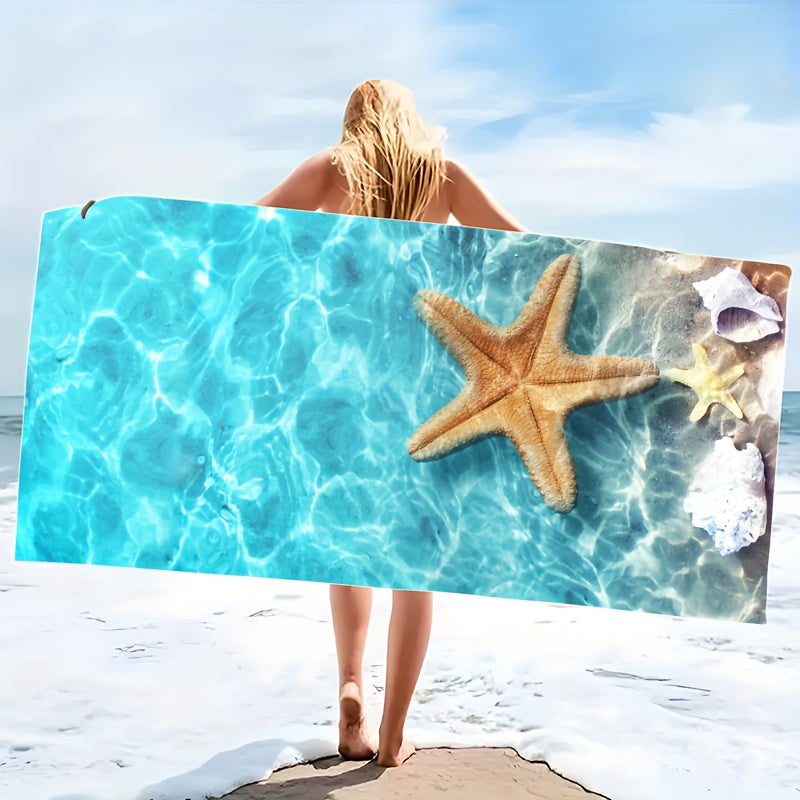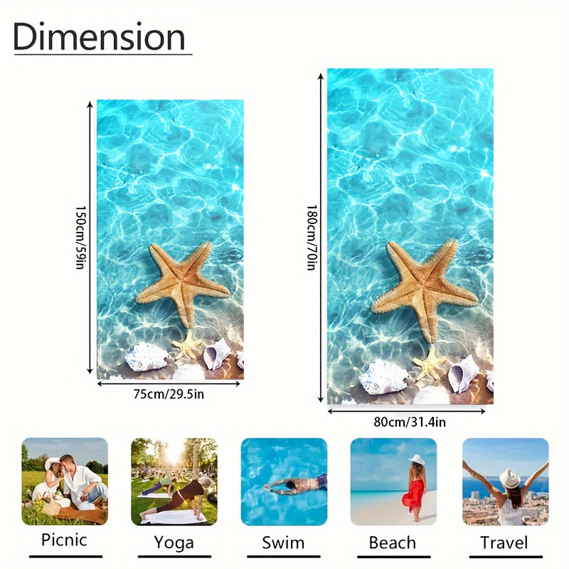 Yulduz baliqlari va dengiz otlari dizayni bilan yumshoq, tez quriydigan plyaj sochiq. Qumga chidamli, juda singdiruvchi mikroto'qima. Havuz, lager, yoga, sho'ng'in uchun ideal. Ikki o'lchamda tropik uslub. Sayohat va yoga uchun mukammal.