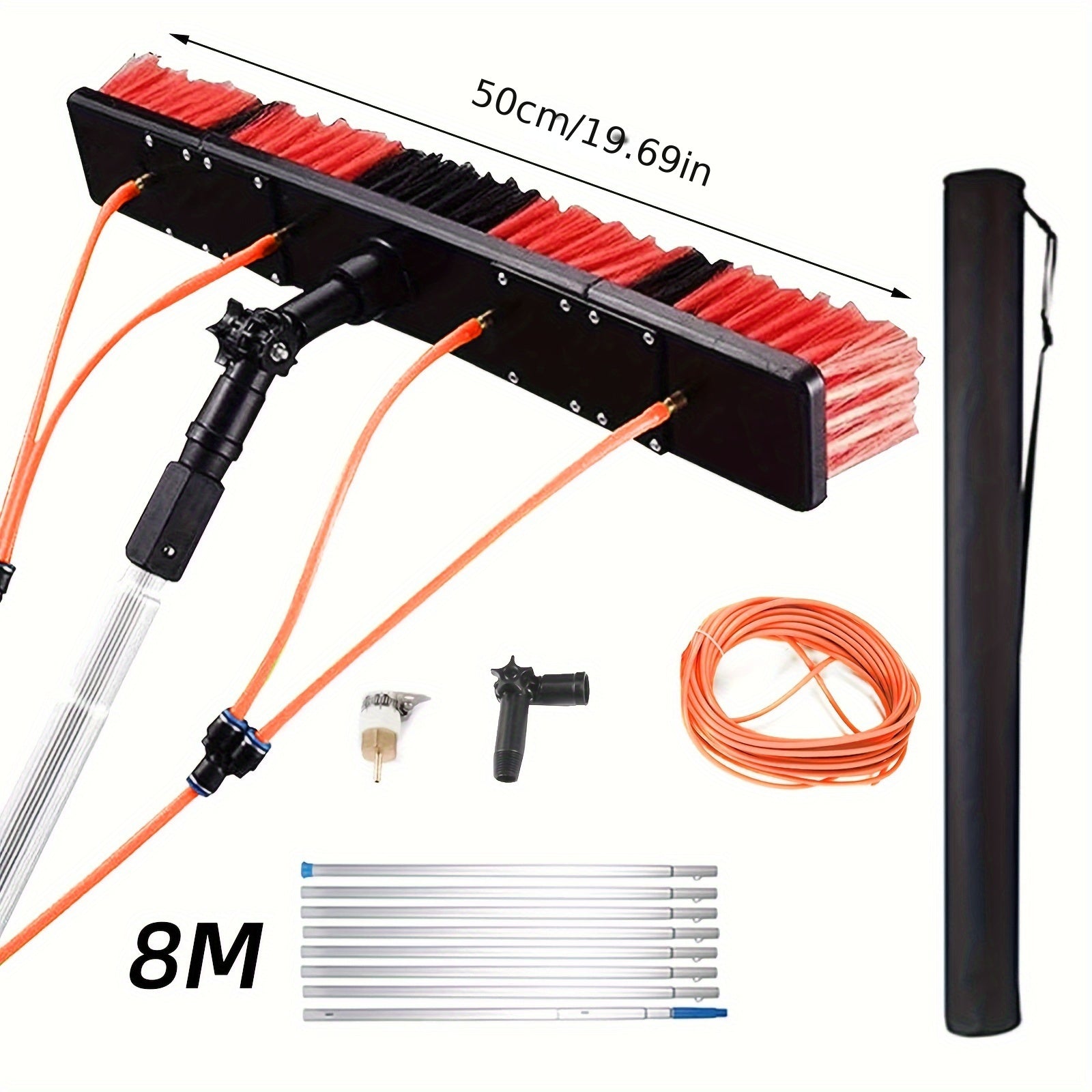 Quyosh panellari uchun tozalash cho'tkasi to'plami, suv oqimi bilan, zaryadsiz quvvat rejimi, plastik material, portativ teleskopik uzatma tayoqchasi, ko'p funksiyali suv purkagich, oson yig'ilish va ajratish. Quyosh
