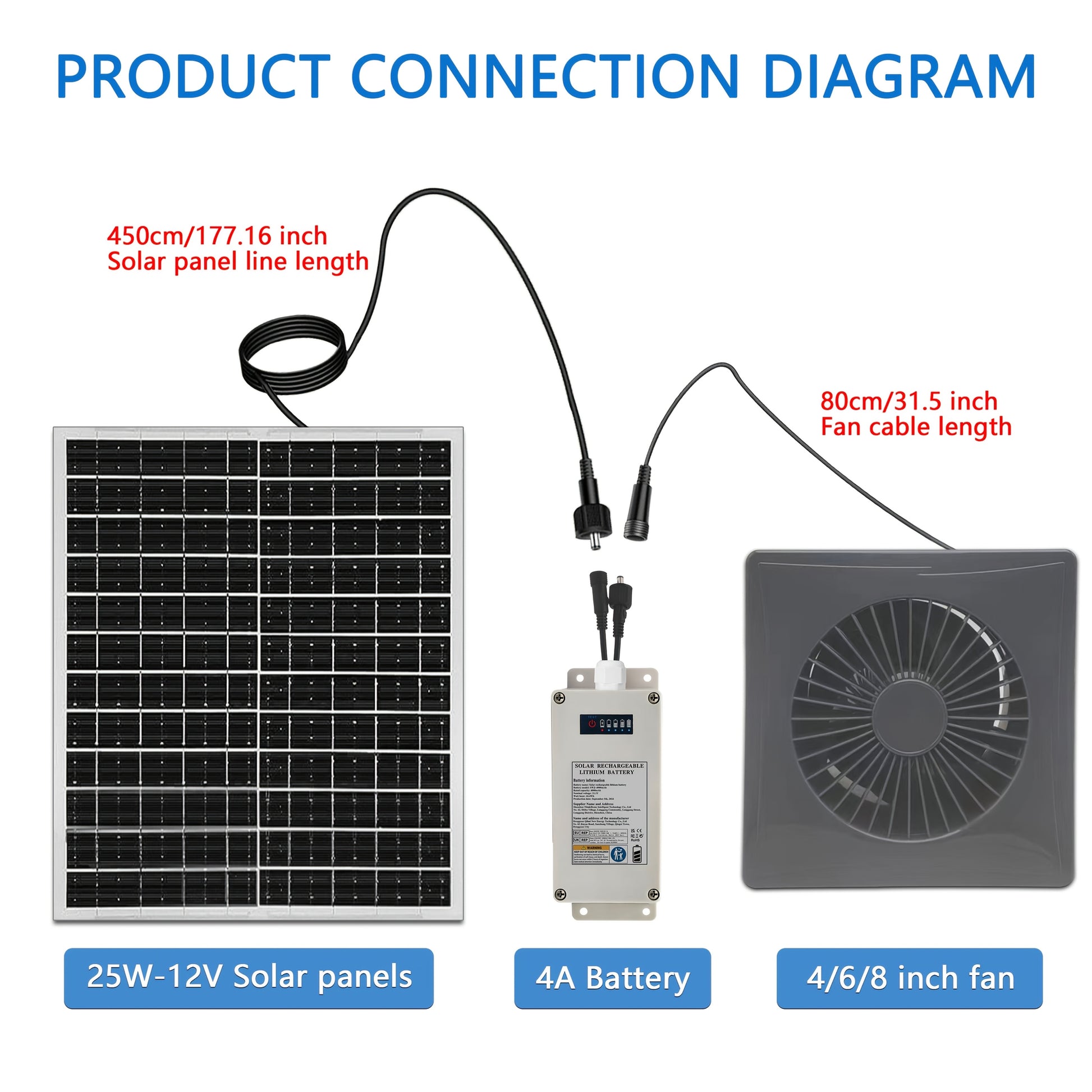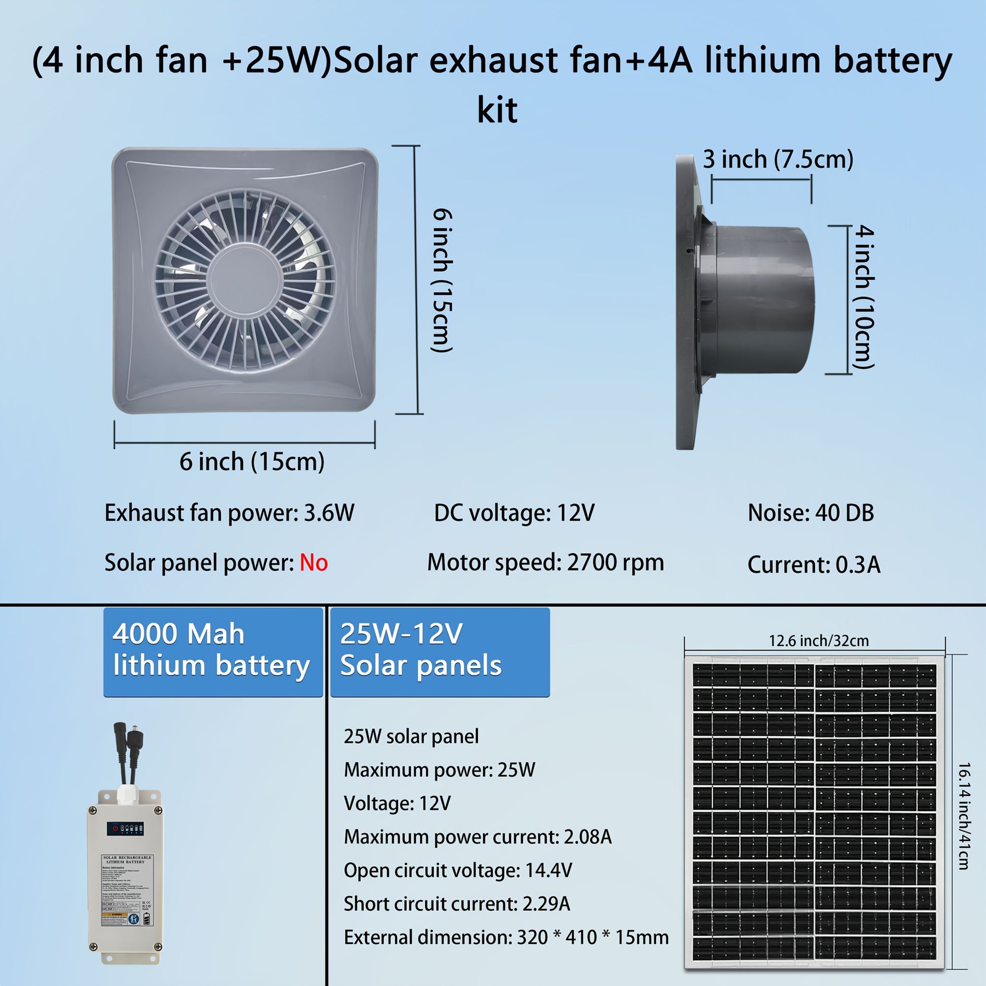 Quyosh energiyali shamollatgich kulrang 10-20cm Batareya to'plami issiqxona ventilyatsiyasi uchun