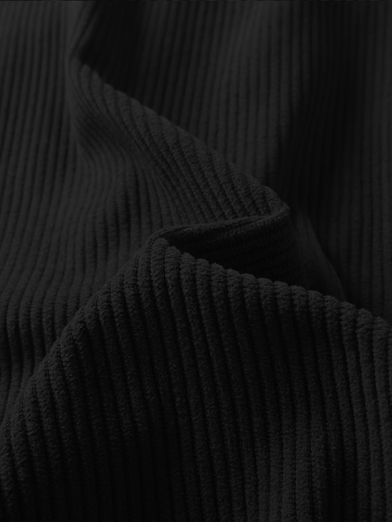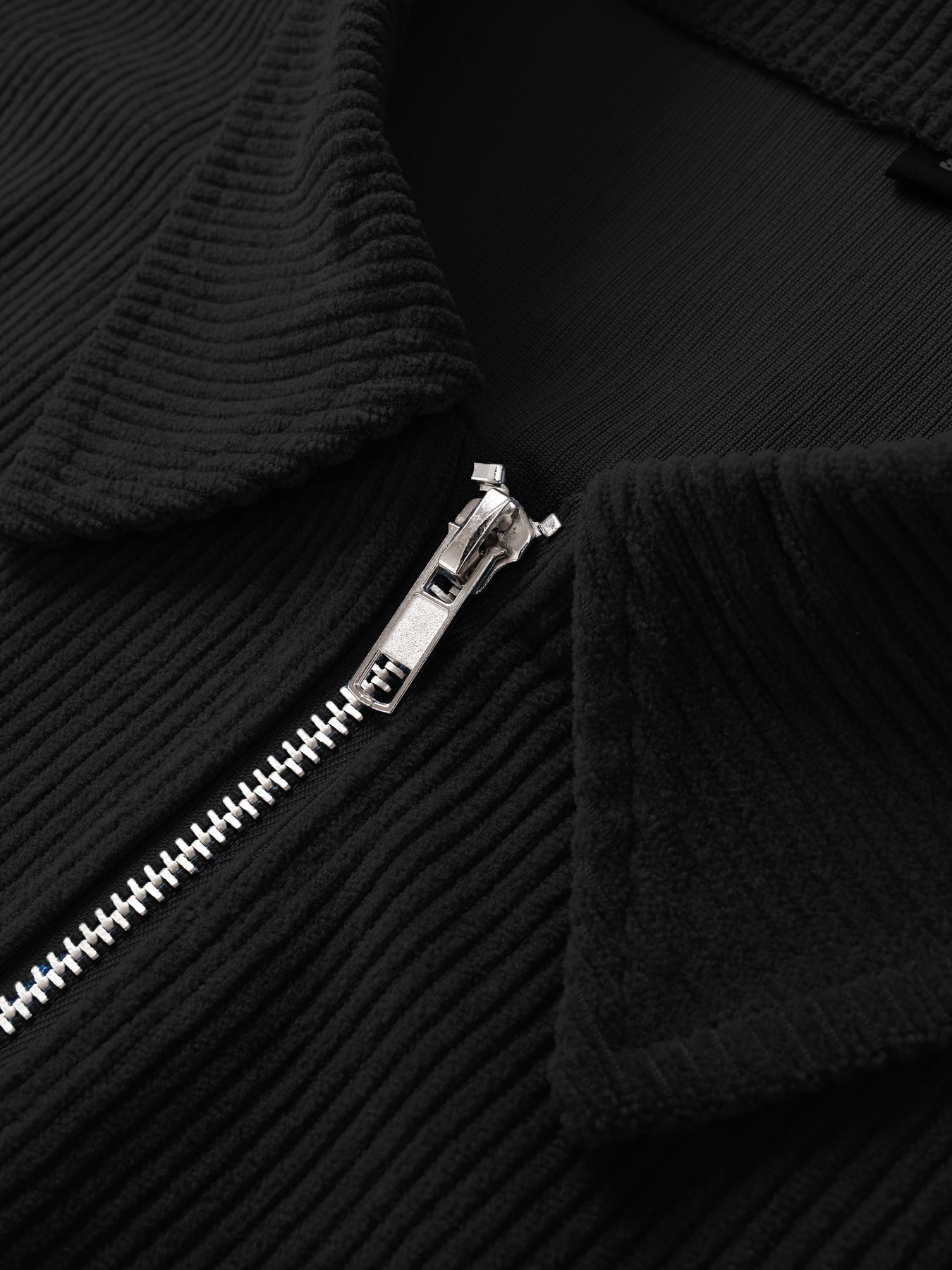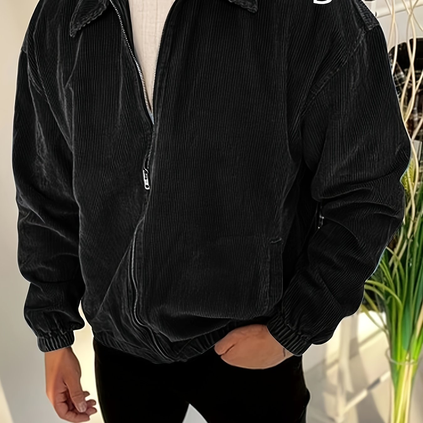 Katta va baland erkaklar uchun qora korduroy kurtka, zipli old qopqog'li cho'ntaklar bilan, kuz va qish uchun kundalik kiyim