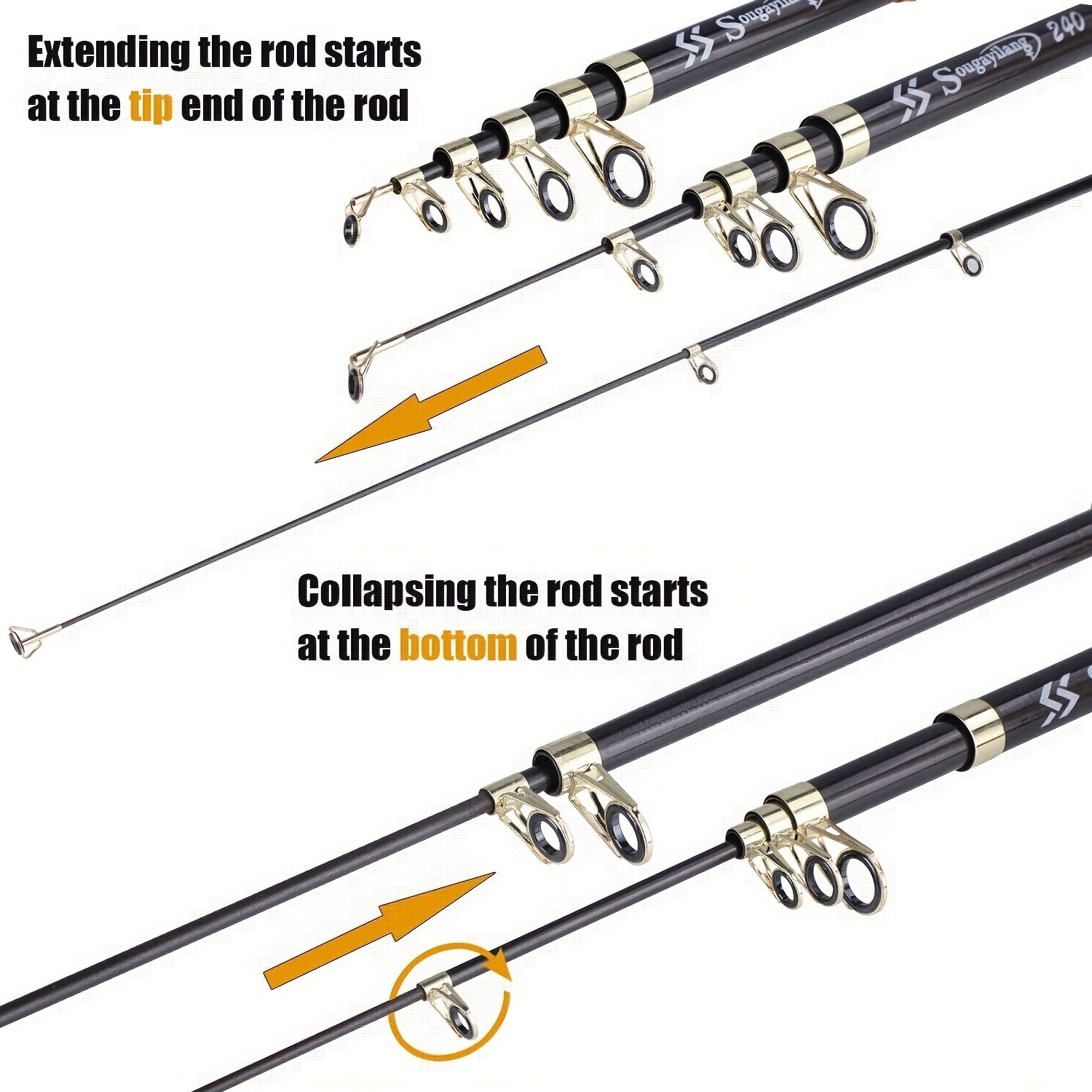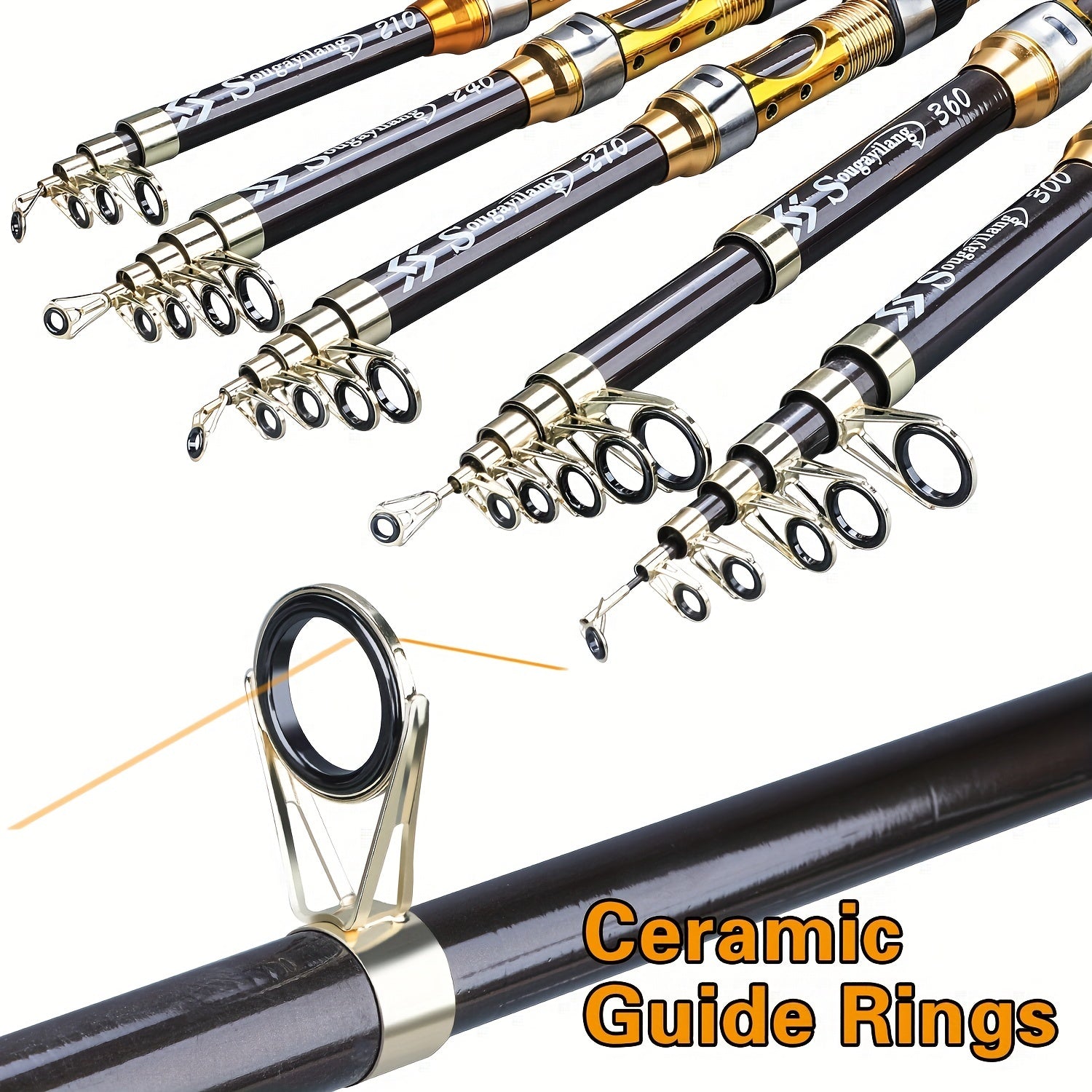 Sougayilang Telescopic Spinning Baliq Ovi Tizgichi, 207.87 sm dan 294.74 sm gacha, Oltin Uglerod Tolasi, O'rtacha Harakat, Shirin va Tuzli Suvlar uchun.