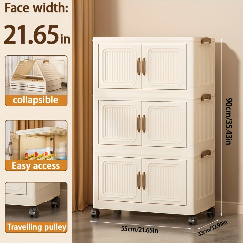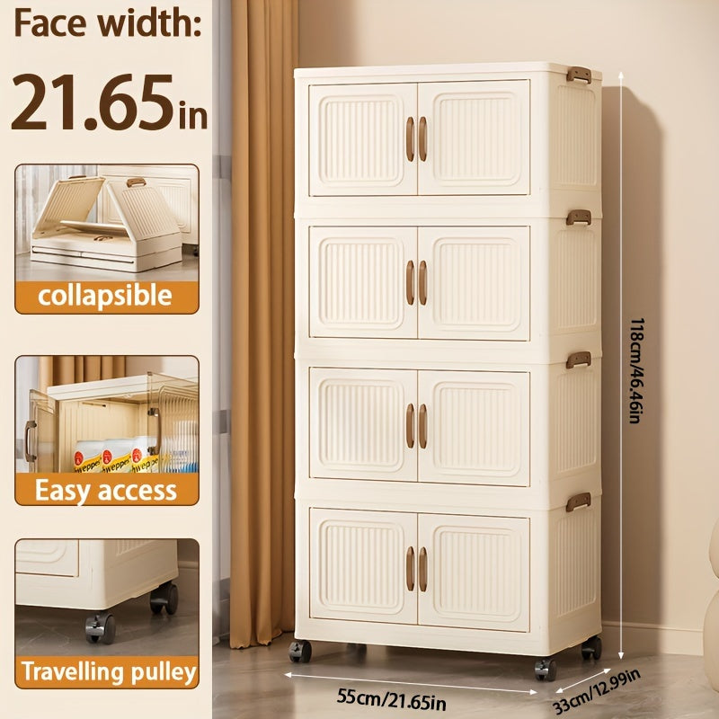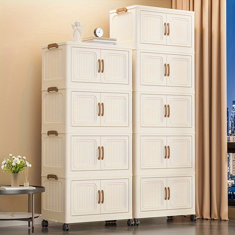 Keng, egiluvchan saqlash shkafi eshiklar va g'ildiraklar bilan - 3, 4 yoki 5 qatlamda mavjud, yotoqxona, yashash xonasi, oshxona uchun suv o'tkazmaydigan plastik tashkilotchisi - foydali tutqichlar bilan moslashuvchan uy saqlash yechimi