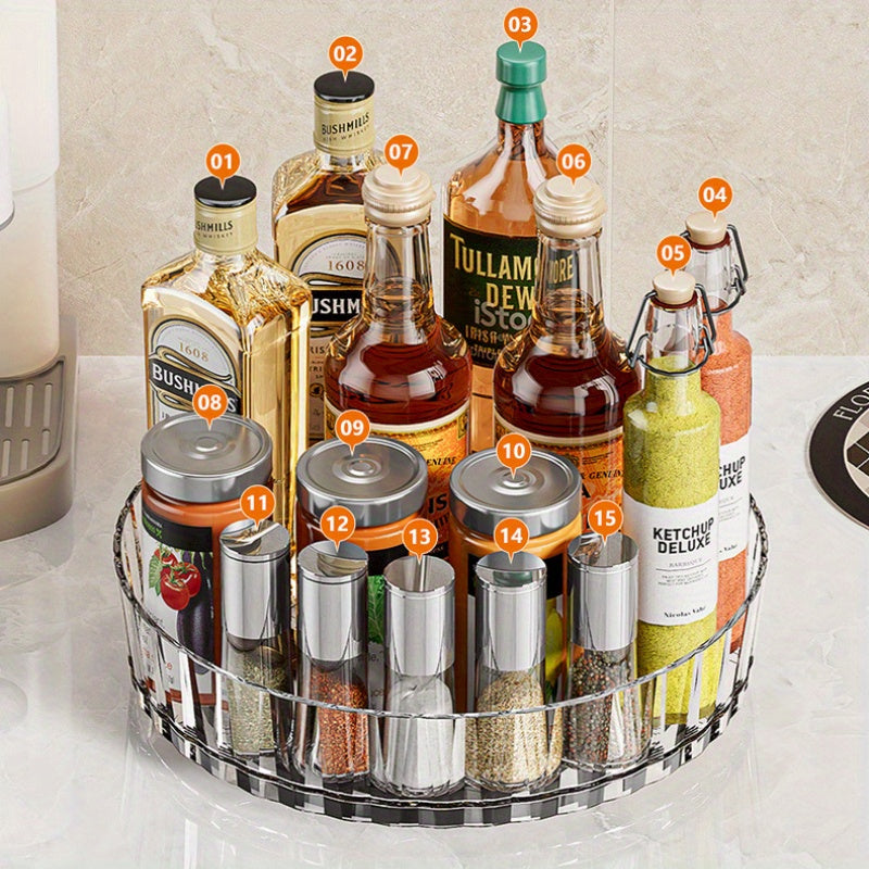 "360 Daraja Aylanuvchi Ziravorlar Tashkiliy, Mavsumiy va Qo'shimchalar uchun Stol Ustidagi Saqlash Tayoqchasi, Uy, Restoran yoki Kosmetika Tashkiliy uchun Suriladigan Plastik Polka - 1 Dona"