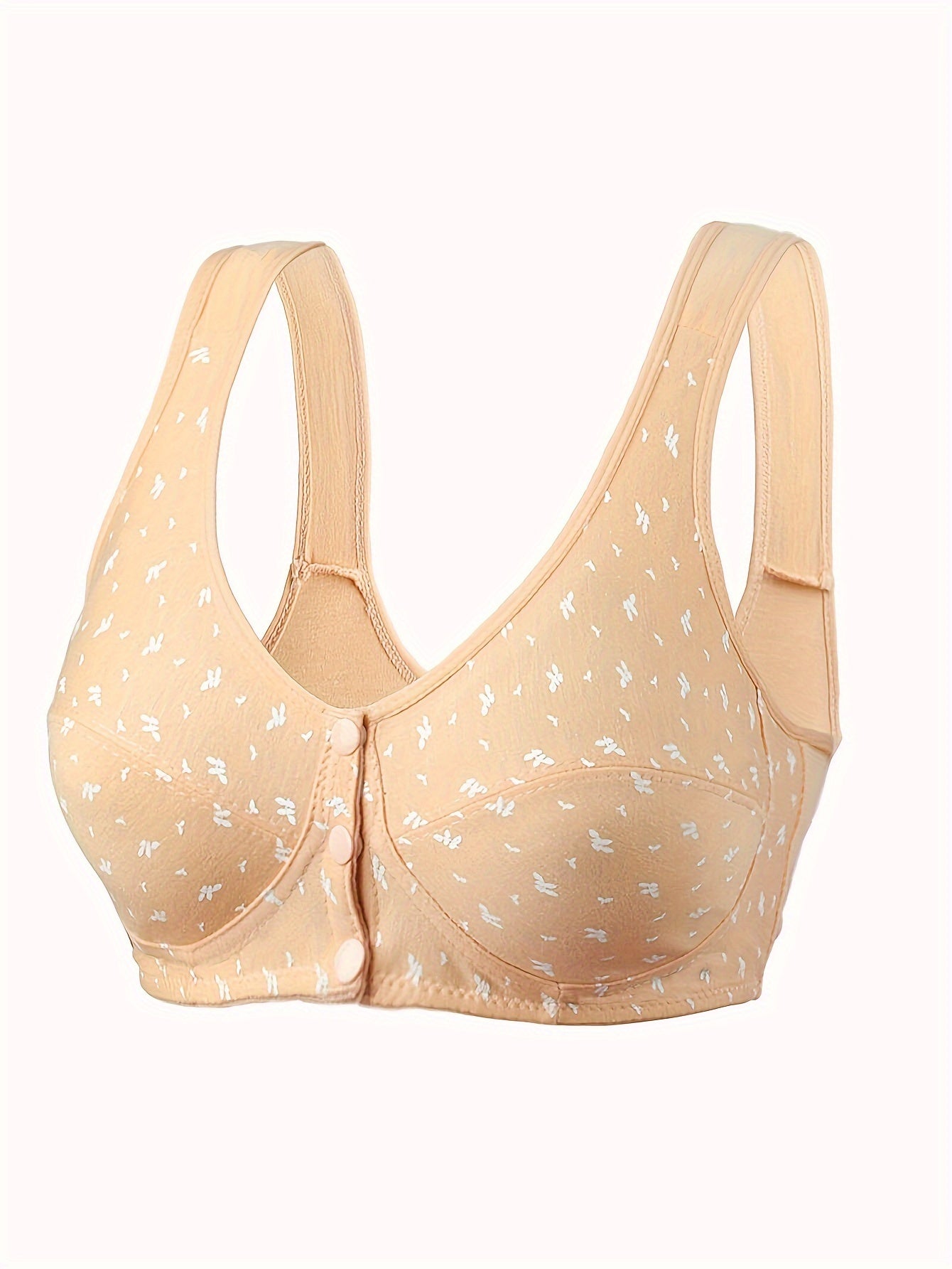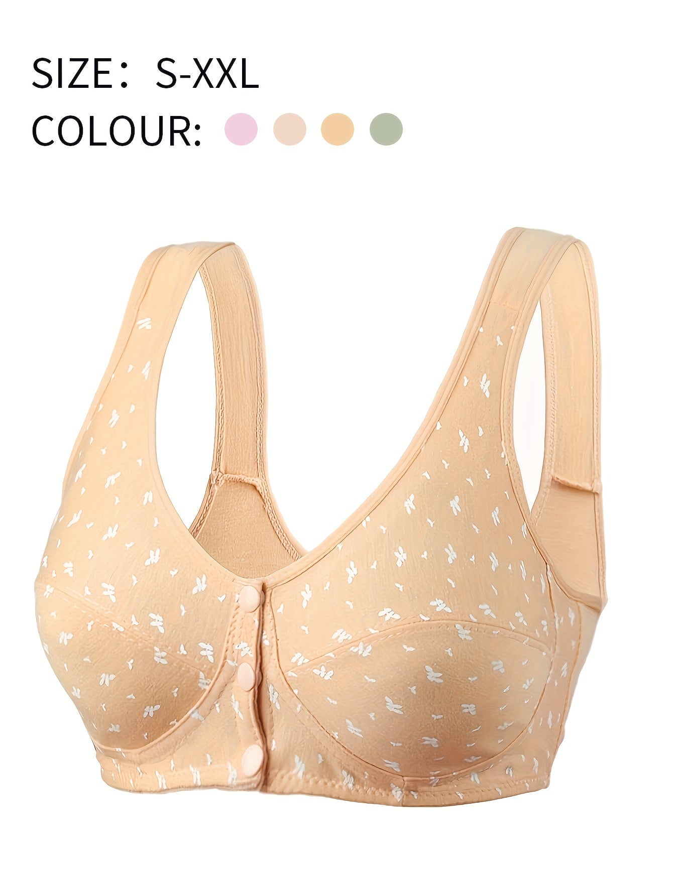 O'rta yoshli va qari ayollar uchun bahor va yoz ichki kiyimlari, tasodifiy printlarda. Old tomondan tugmachali ko'ylak uslubi, po'lat halqasiz katta o'lcham.