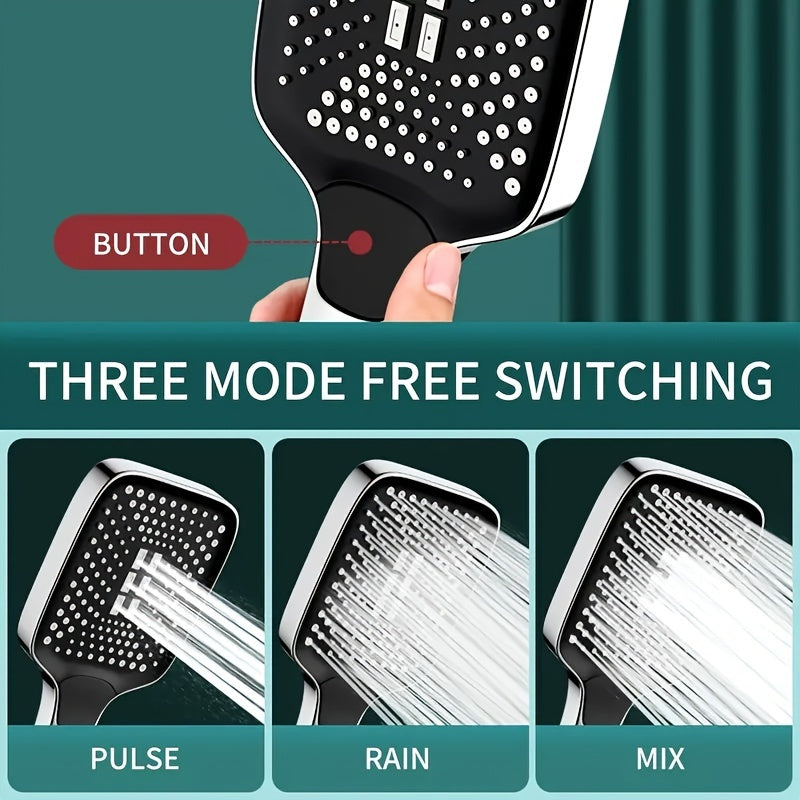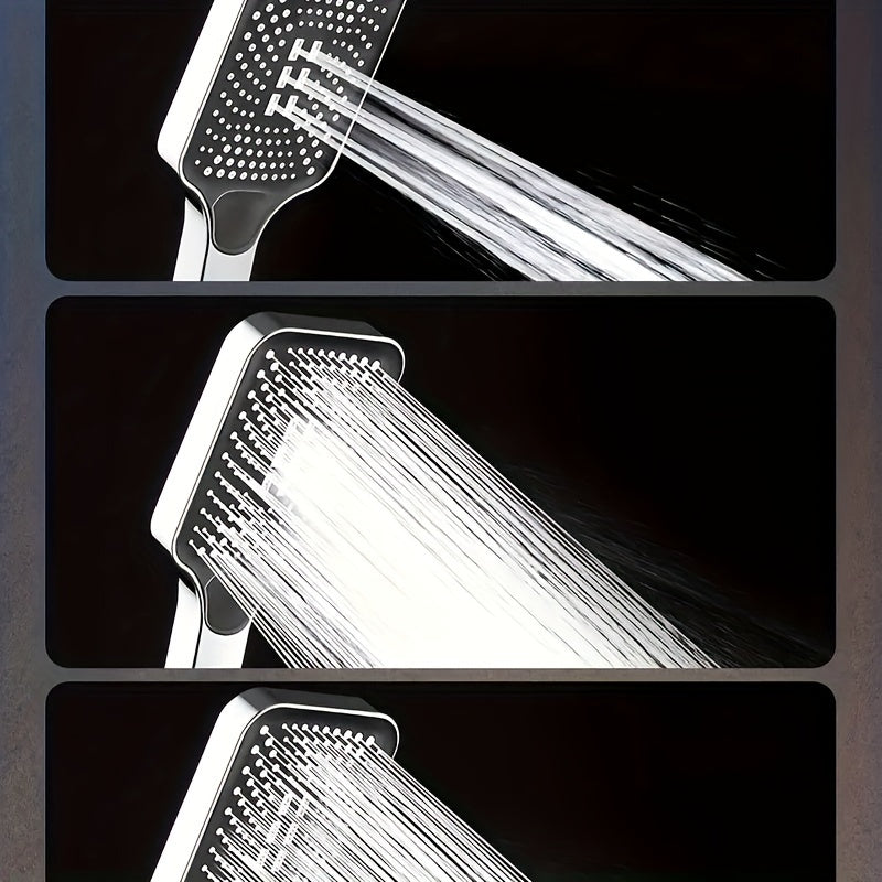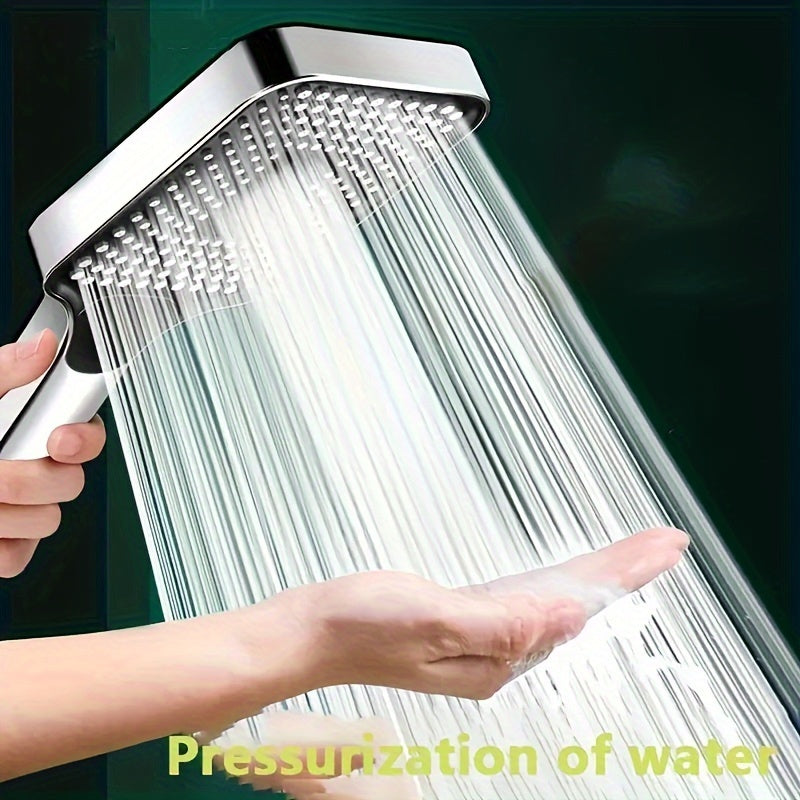 Kvadrat plastik qo‘l bilan ushlab turiladigan dush head, yuqori bosimdagi suv oqimi va universal G1/2 ulanishi bilan