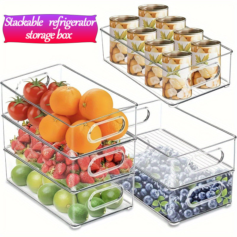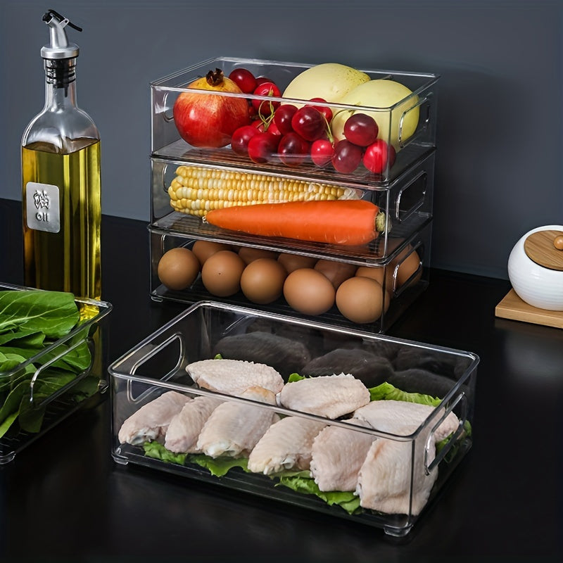 Stackable Shaffof Muzlatgichda Saqlash Qutisi - Ushbu oziq-ovqat xavfsiz plastik tashkilotchisi bilan mevalaringiz va sabzavotlaringizni yangi saqlang. Oshxonangizni, ofis stolingizni yoki uyingizni tartibga solish uchun ideal.