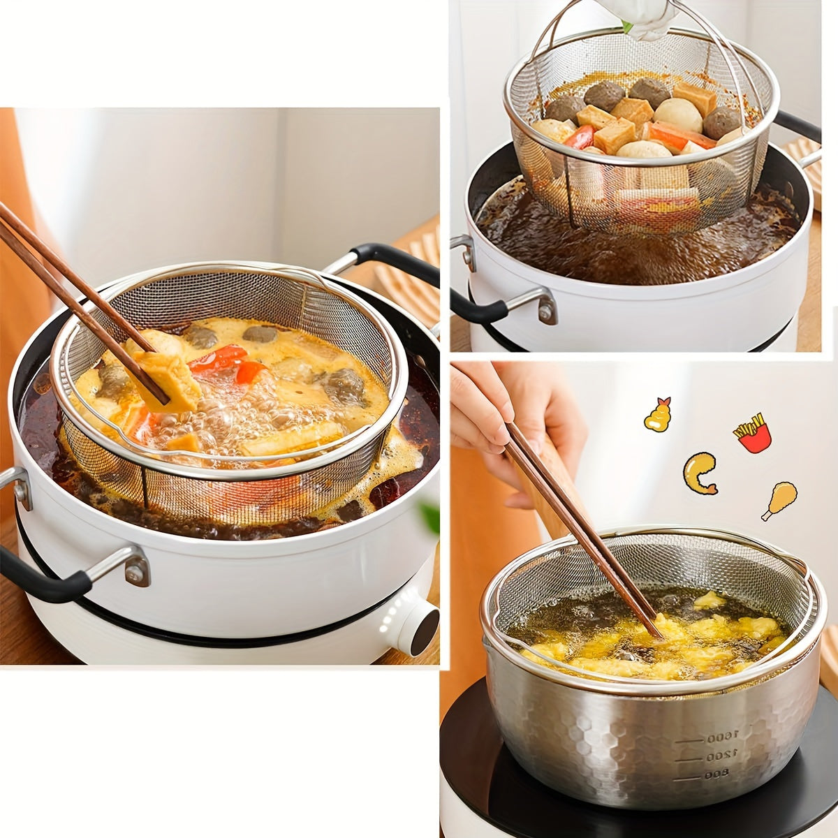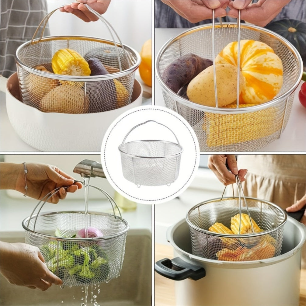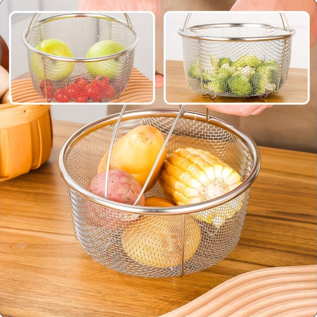 Qattiq po'latdan yasalgan tarmoq savat, tutash va dengiz mahsulotlarini bug'lash va suyuqlikdan chiqarish uchun tutqich bilan