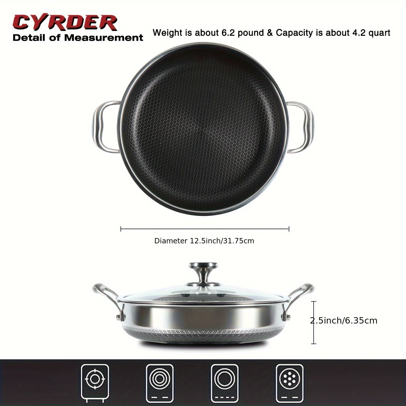Noxud qotishmasi, yopqichi bilan, 31.75 sm, ikki tutqichi, PFOA-siz, idish-tovoq yuvish mashinasida yuvish mumkin, pishirish, qovurish, pishirish va qaynatish uchun.