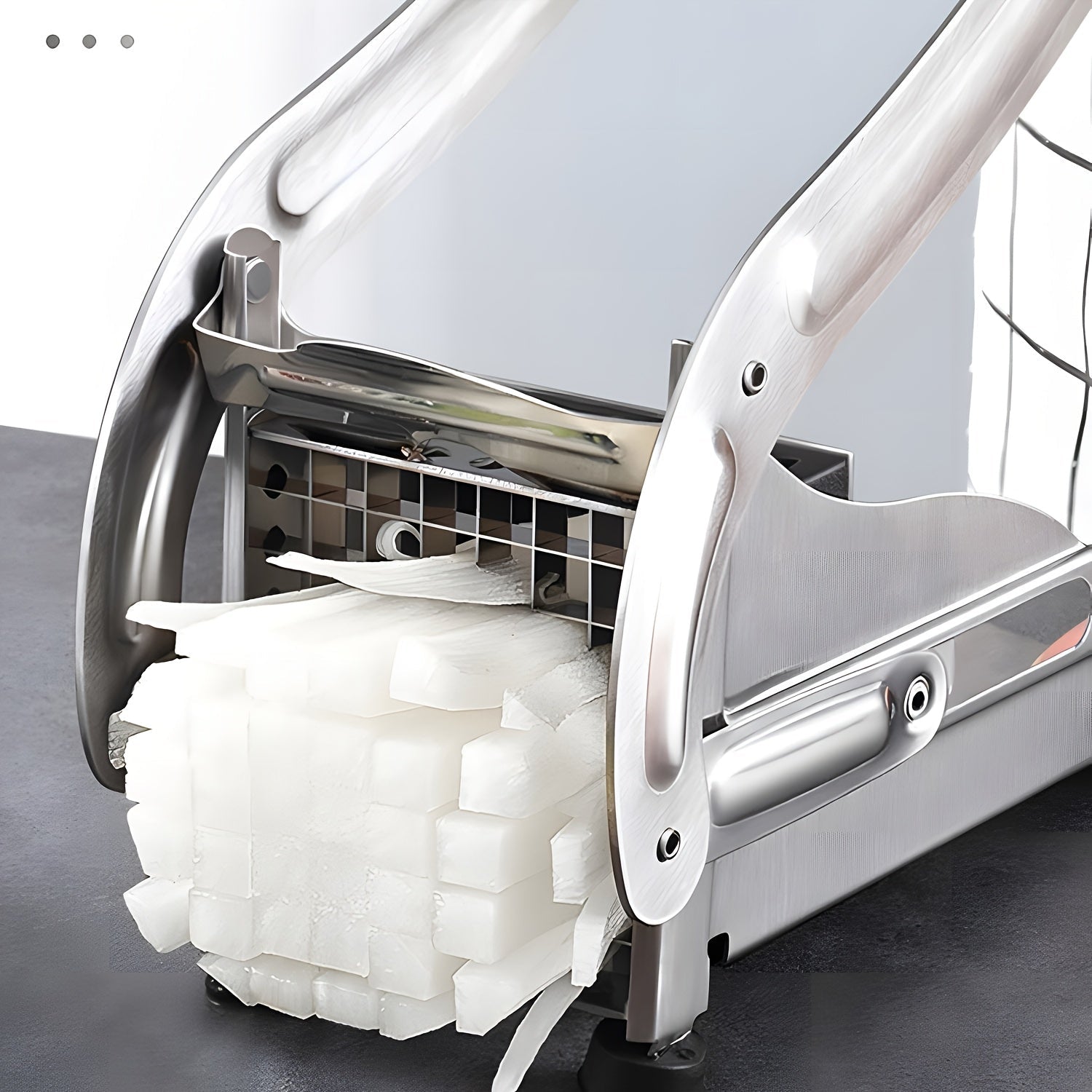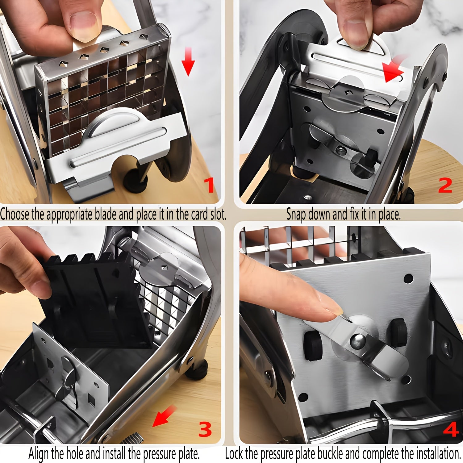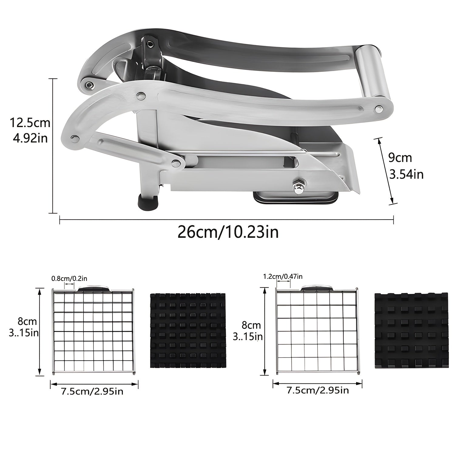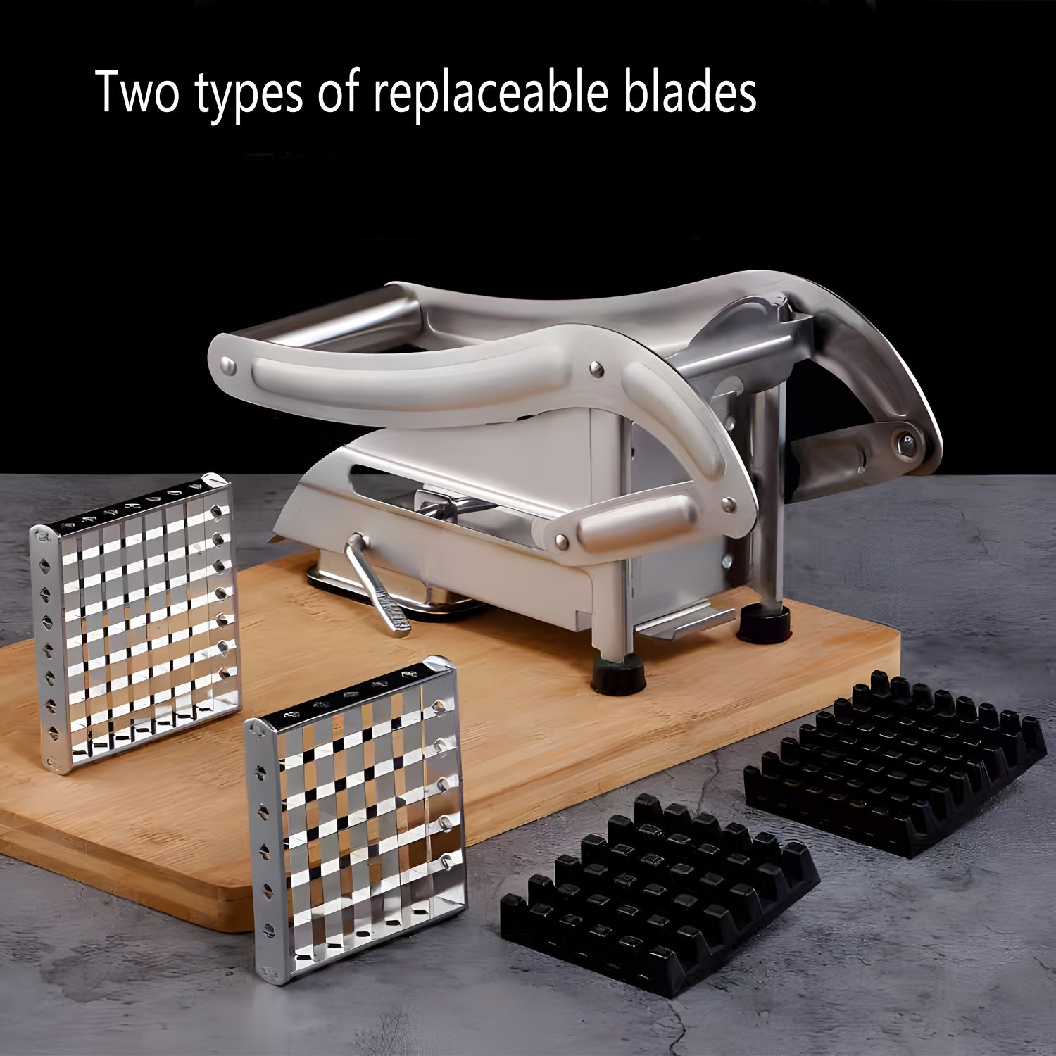 Yaxshilangan dizaynga ega zanglamas po'latdan yasalgan kartoshka kesgichi va oson foydalanish uchun vakuumli asos - uy va professional oshxonalar uchun ko'p maqsadli sabzavot va meva kesgichi