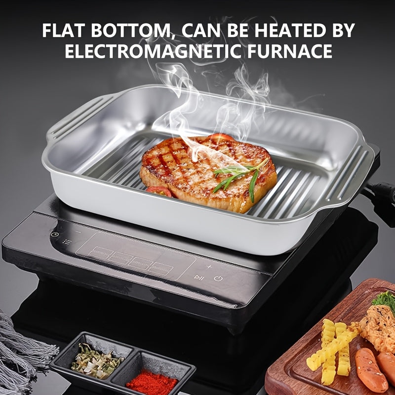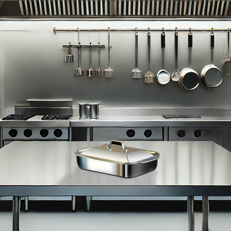 Qopqoq bilan zanglamas po'latdan yasalgan qovurish panasi to'plami, yopishmaydigan va mustahkam. Gril qilish, pishirish va BBQlar uchun ajoyib.
