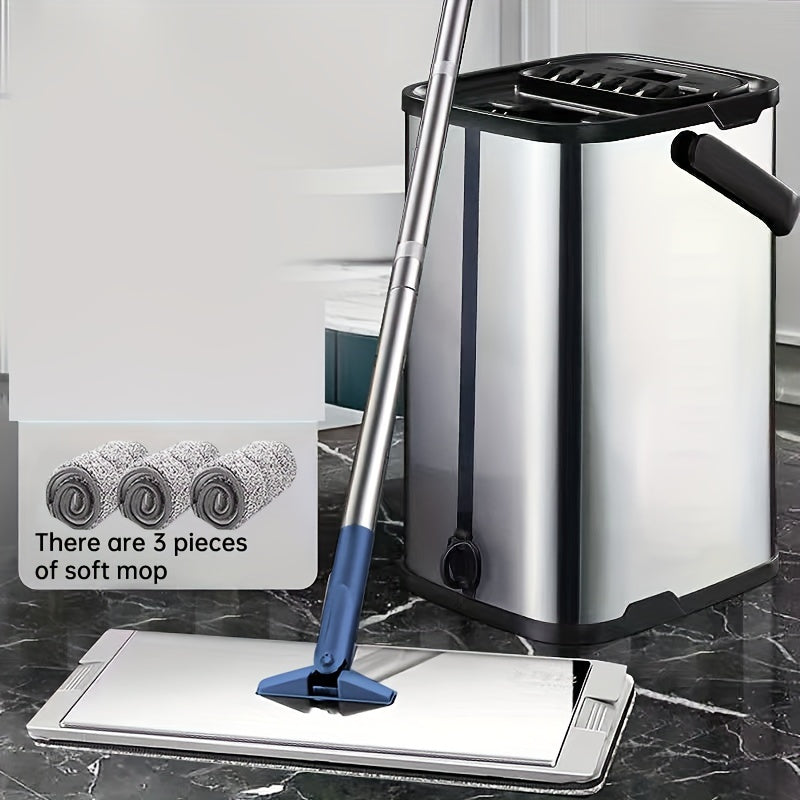 Nayzali po'latdan yasalgan qopqoq va chelak to'plami, 3 ta mop pad bilan, qo'l bilan ishlatilmaydigan plita mop, chelak bilan chang olish mop, ho'l va quruq tozalash, plitka, marmar, yog'och pol tozalash mop, to'liq tozalash materiallari va asboblari