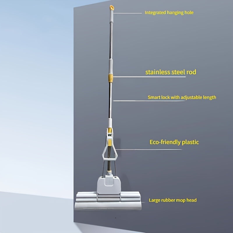 Naychali uzaytiriladigan tutqichi va samarali tozalash uchun oson siqish valfi bilan zanglamaydigan po'latdan yasalgan gubka mop. Yashash xonasi, yotoqxona, hammom, hojatxona, oshxona va devorlarni tozalash uchun mukammal, dangasa yuvish xususiyati bilan.