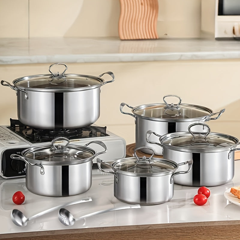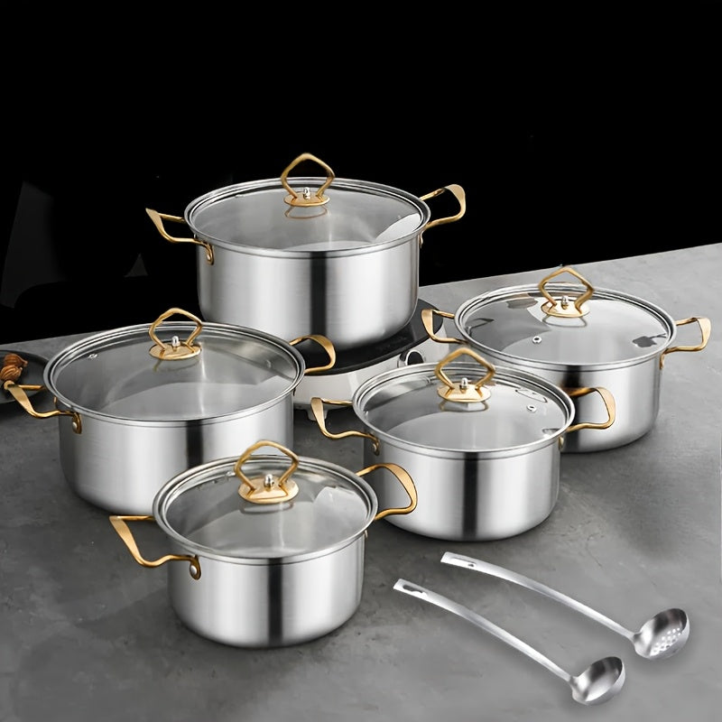 Noxud qozon to'plami - 12 dona - Qalin dizayn - Ikkita tutqich - Yorqin qoplama - Uy va tijorat foydalanishi uchun ideal